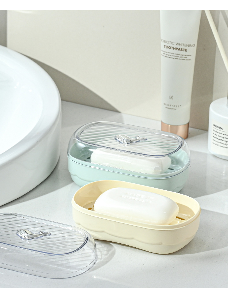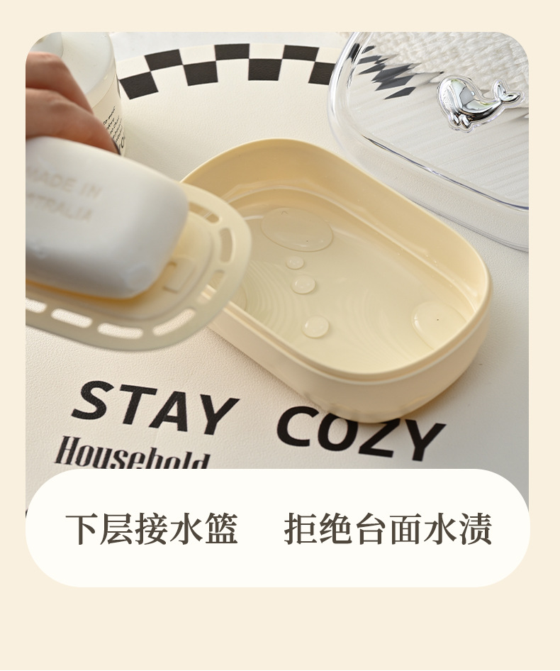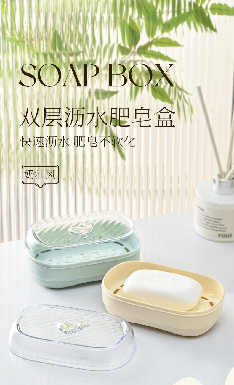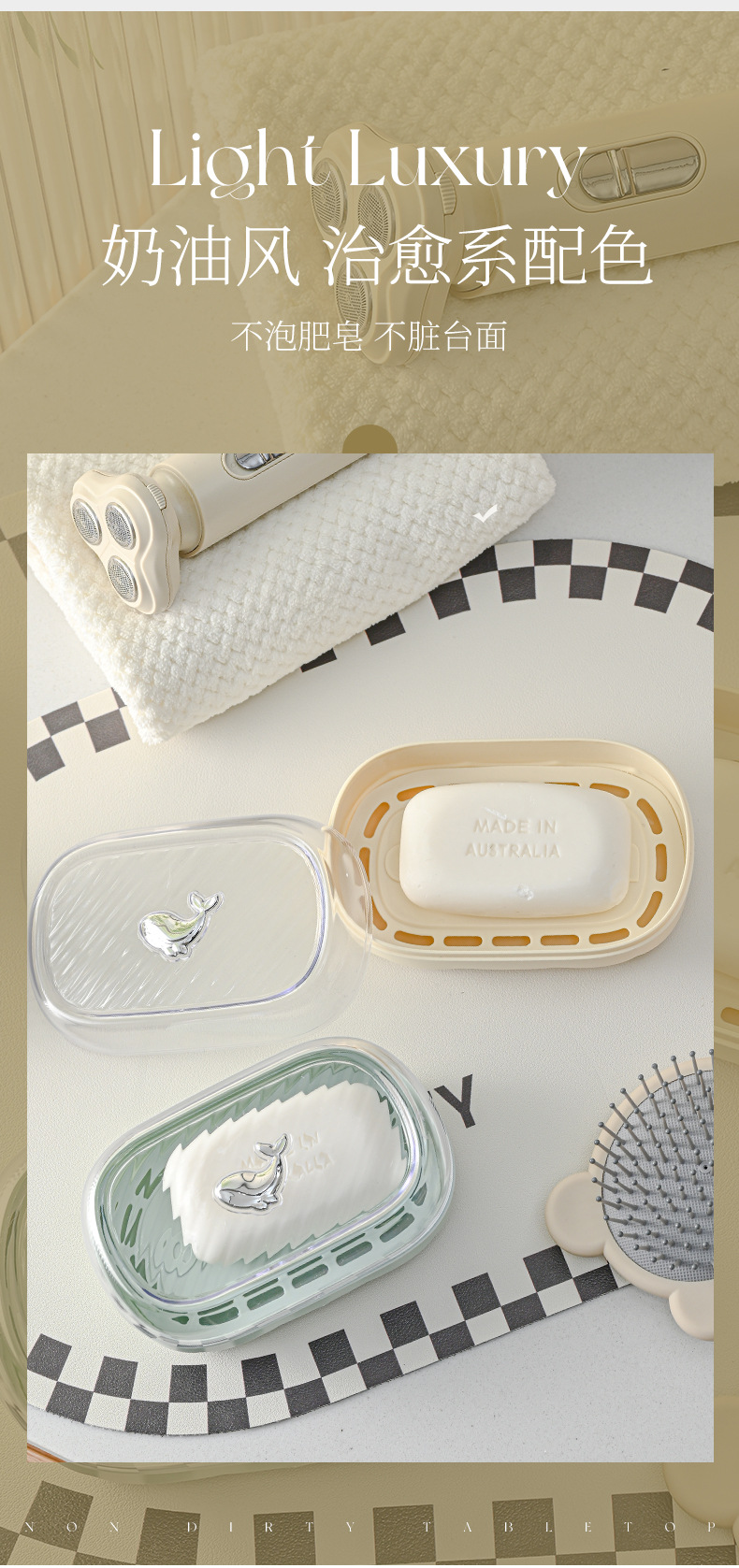 免打孔沥水香皂盒带盖防尘肥皂盒架轻奢双层肥皂盒家用卫生间