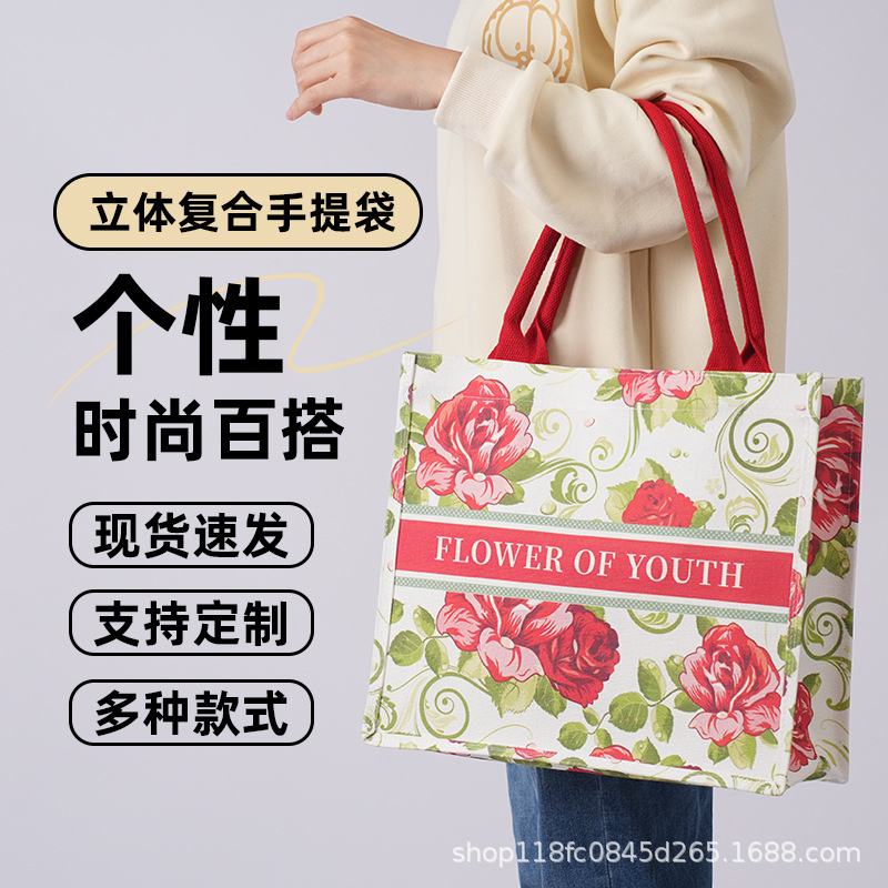 手提帆布包定制印logo托特包定做斜挎文艺现货立体覆膜帆布袋加厚