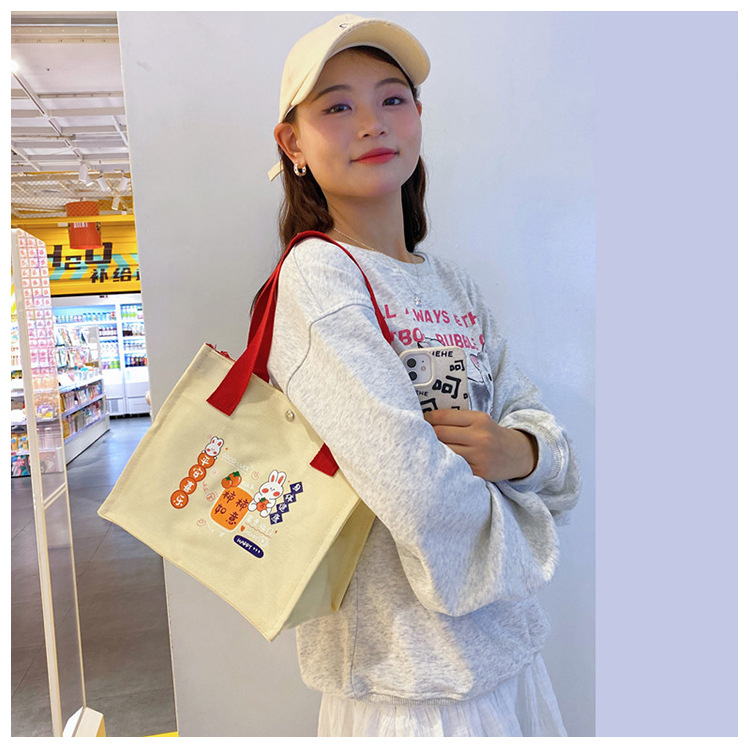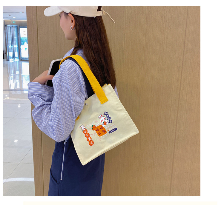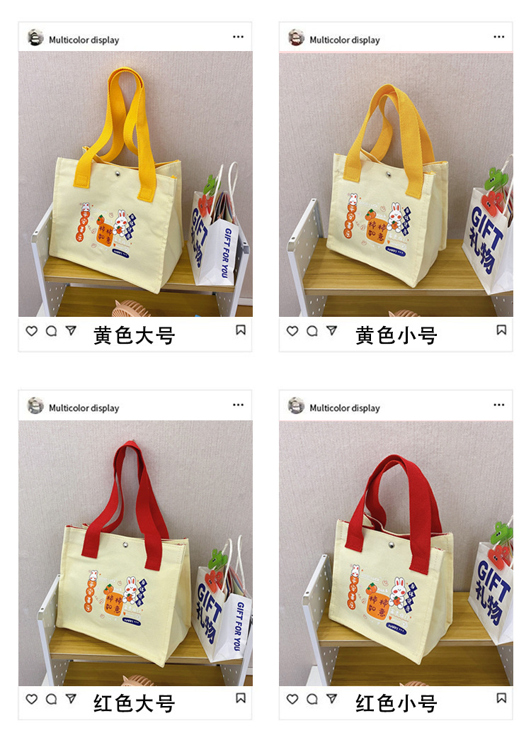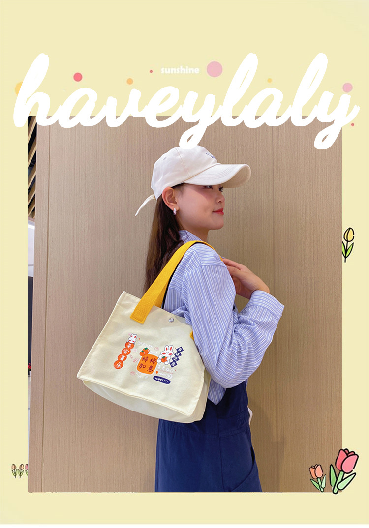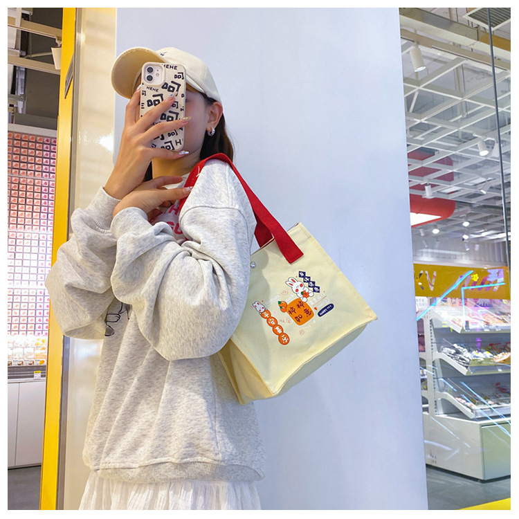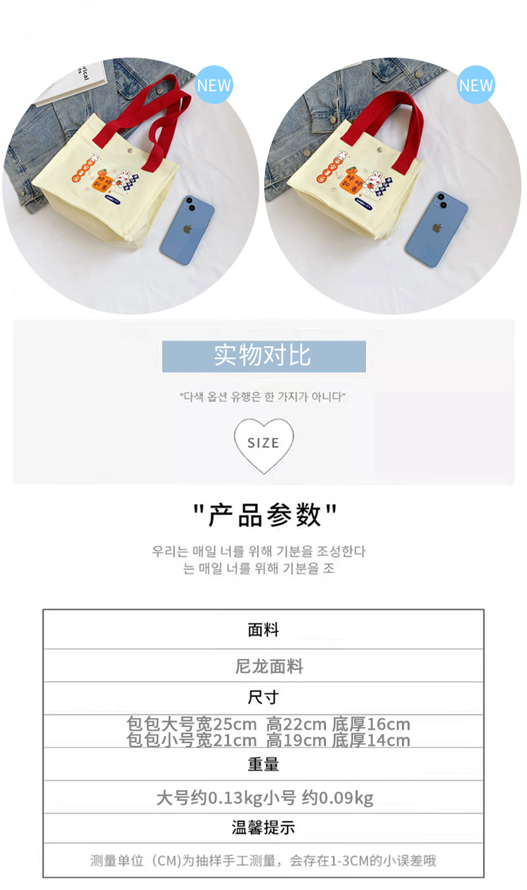 新款帆布包柿柿如意手提包小方包时尚休闲可爱便当包手提袋手拎包