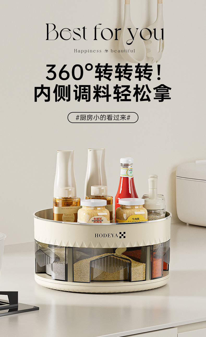 多功能置物架双层调味料调料瓶收纳盒 新款旋转调料盒家用厨房台