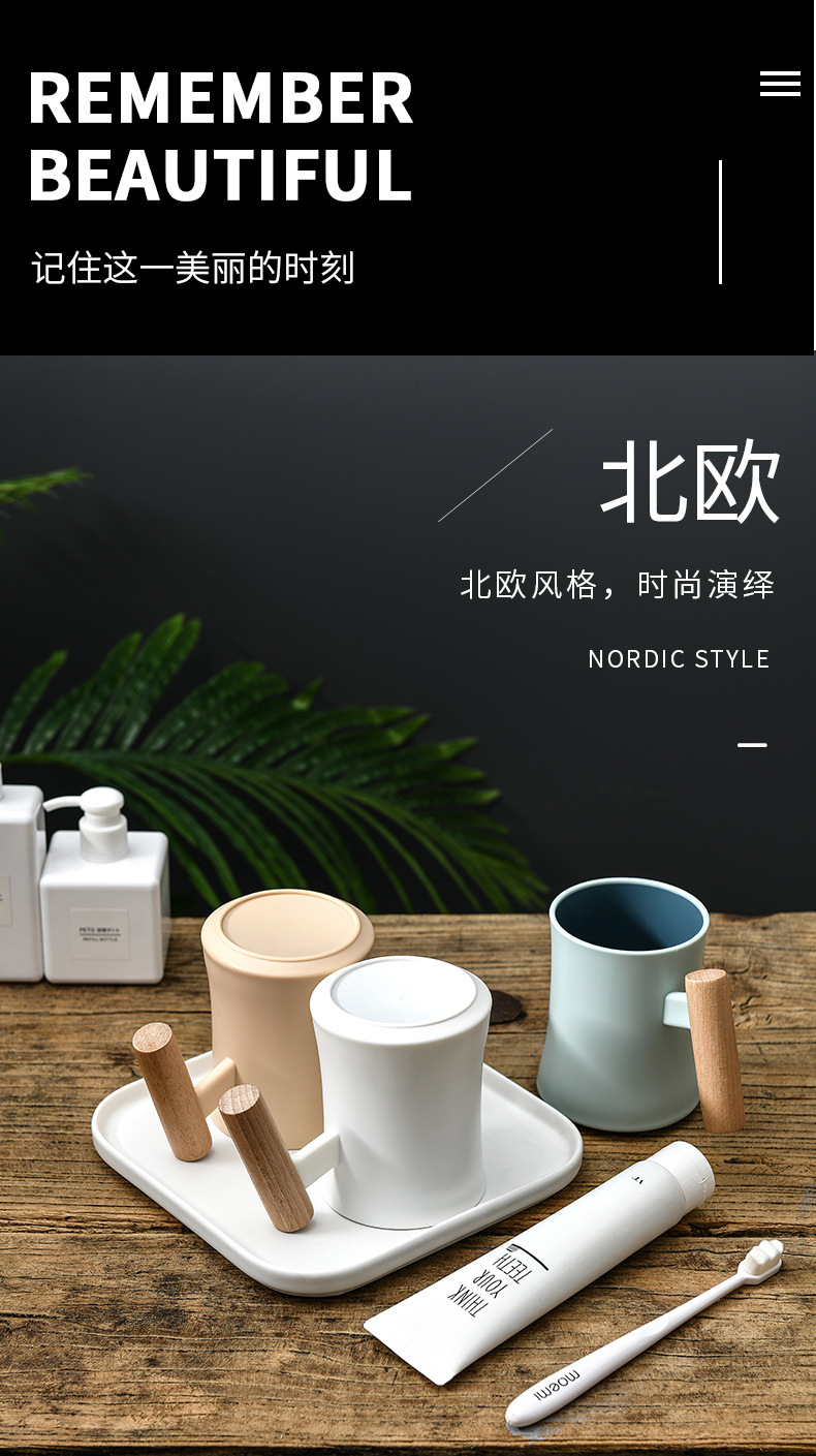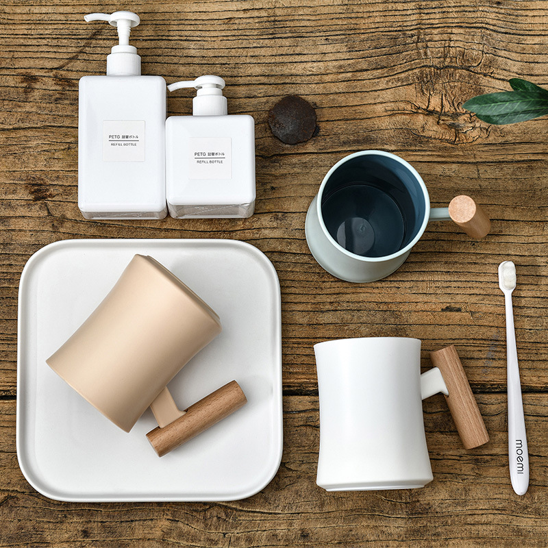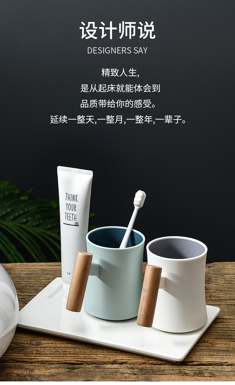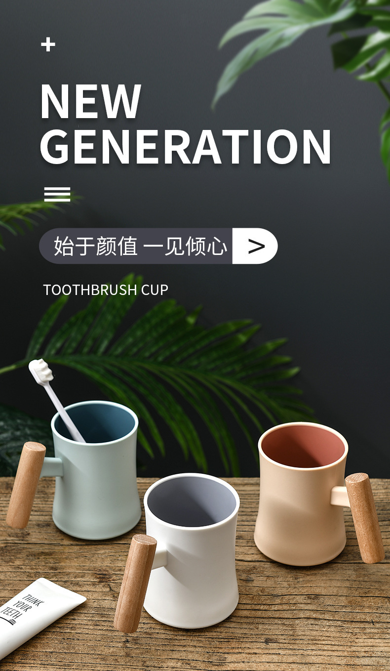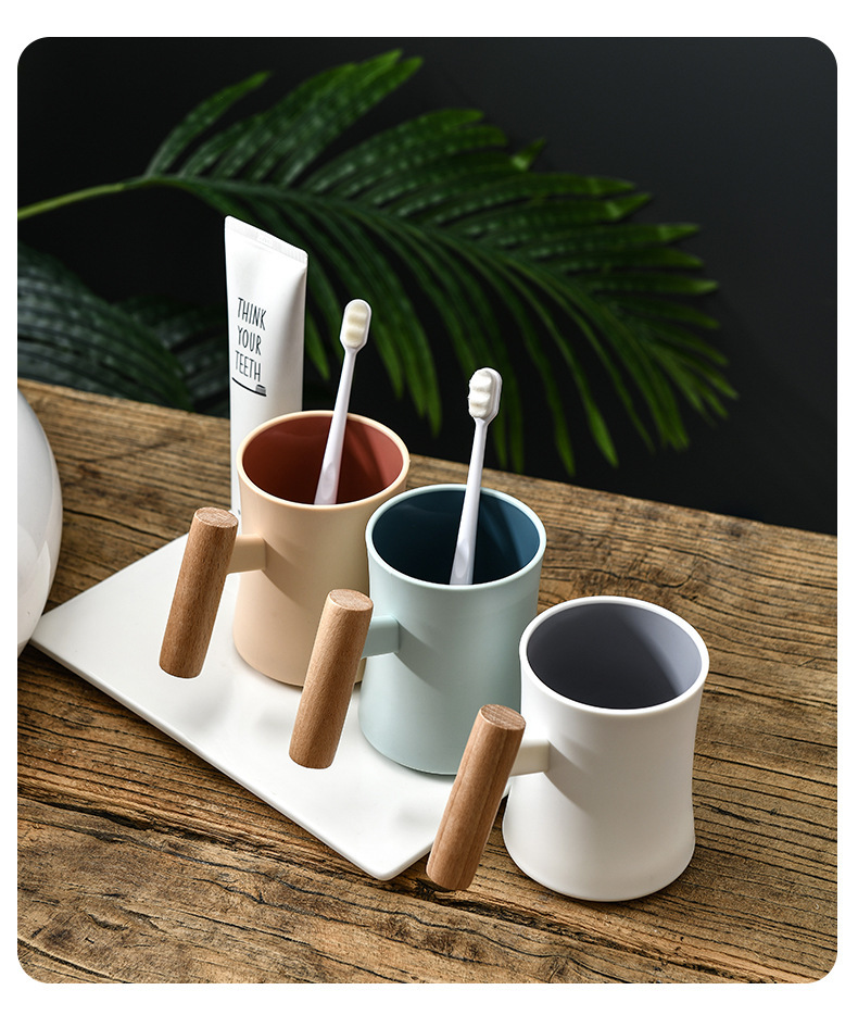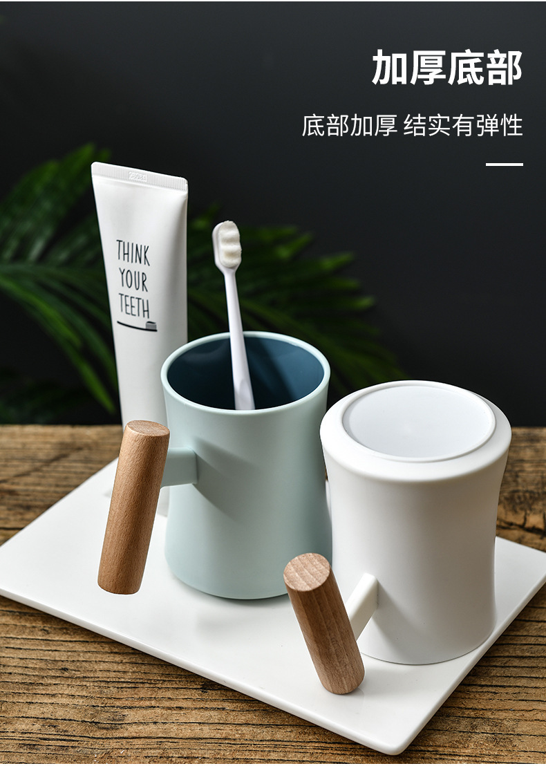 腰形木柄漱口杯高级创意简约家用新款双层塑料水杯情侣学生杯子
