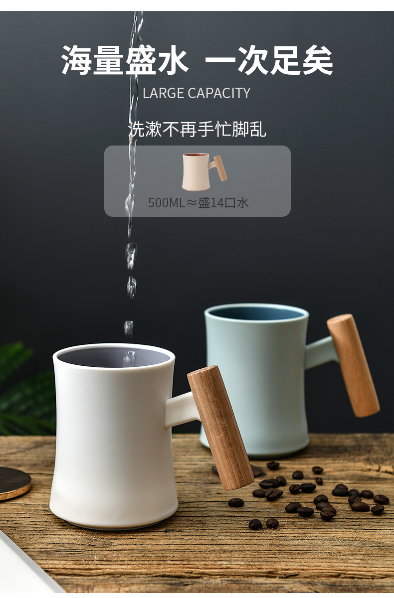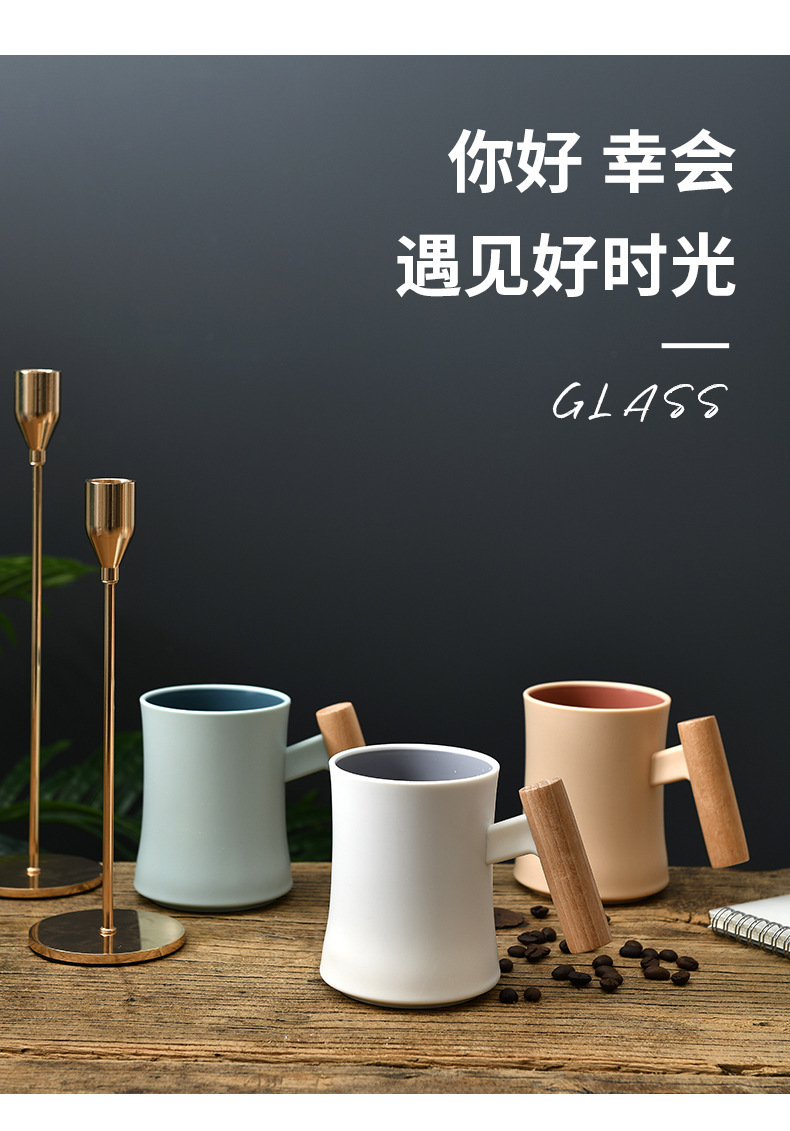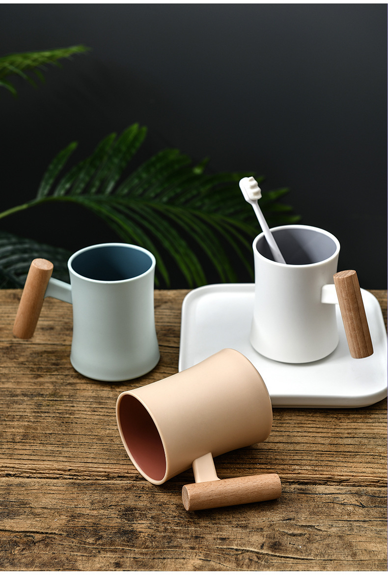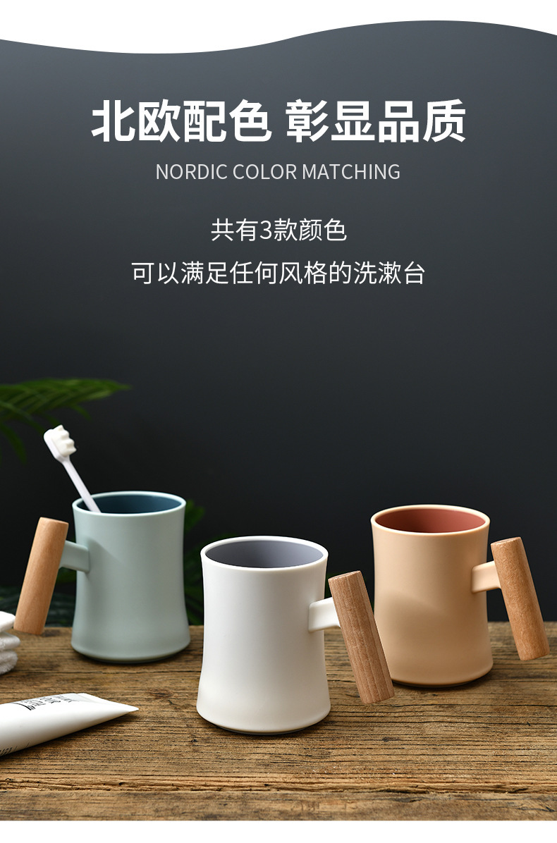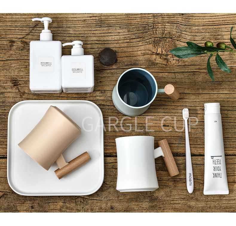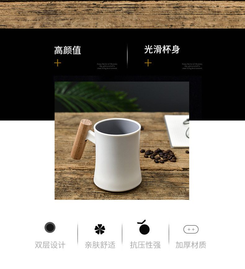 腰形木柄漱口杯高级创意简约家用新款双层塑料水杯情侣学生杯子