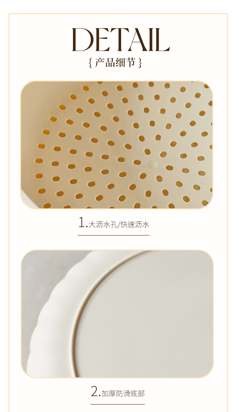 新款圆形双层果蔬篮家用沥水篮厨房加厚水果收纳蓝洗菜篮子