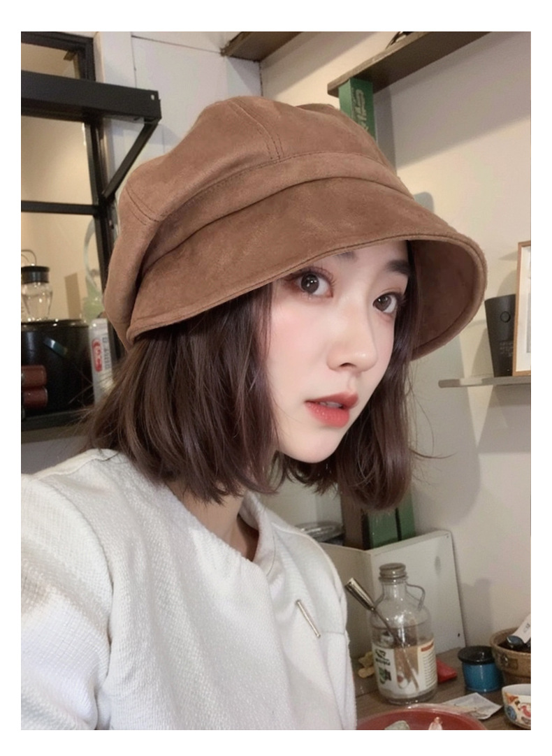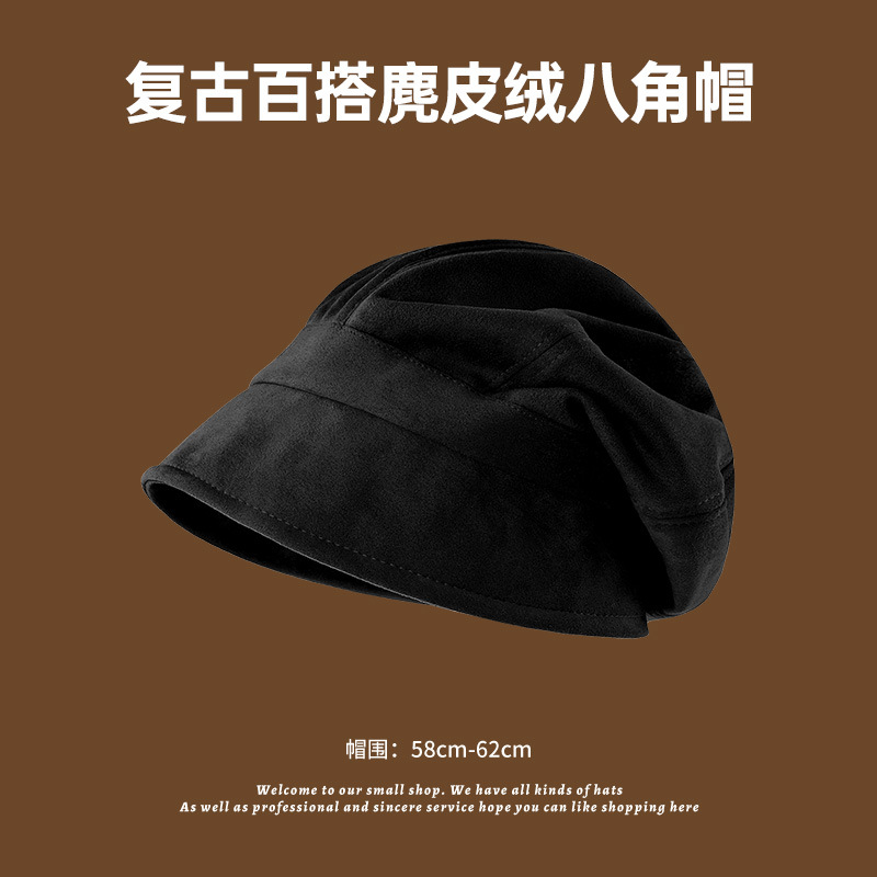帽子女秋冬文艺复古百搭麂皮绒网红冷帽显脸小八角帽日系渔夫帽子