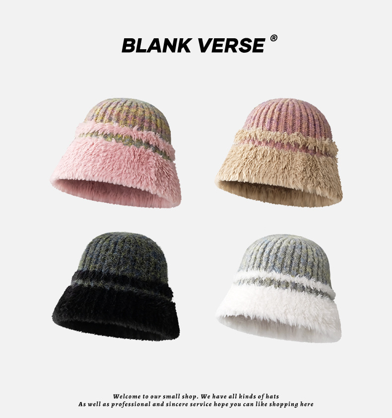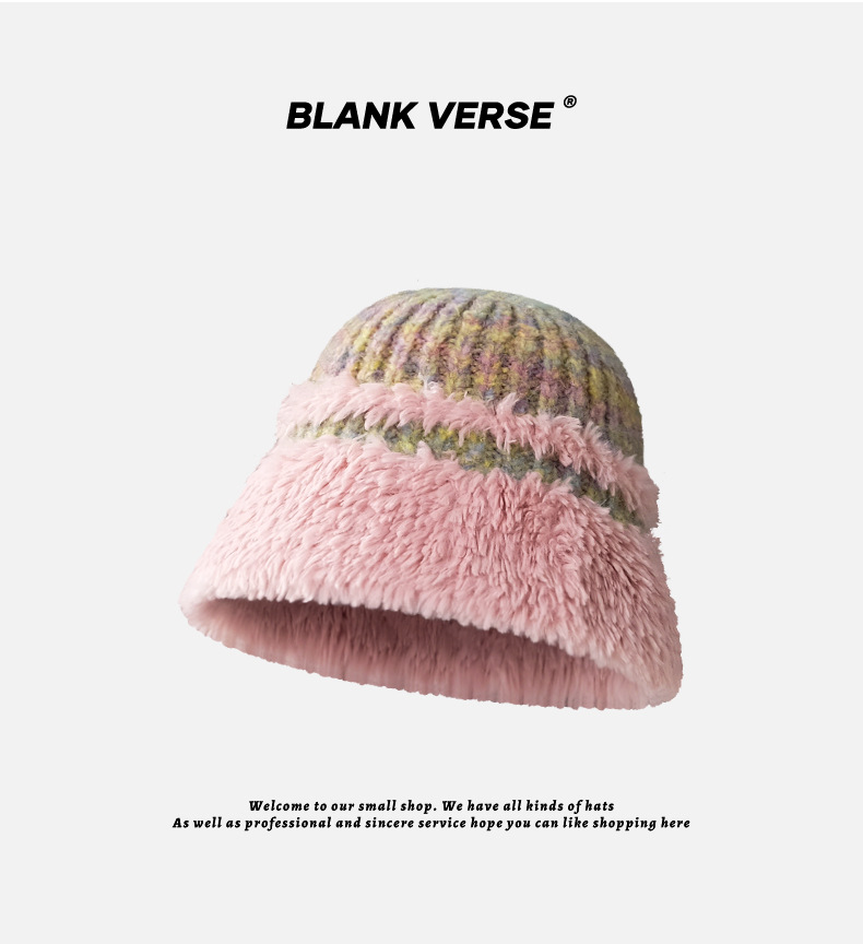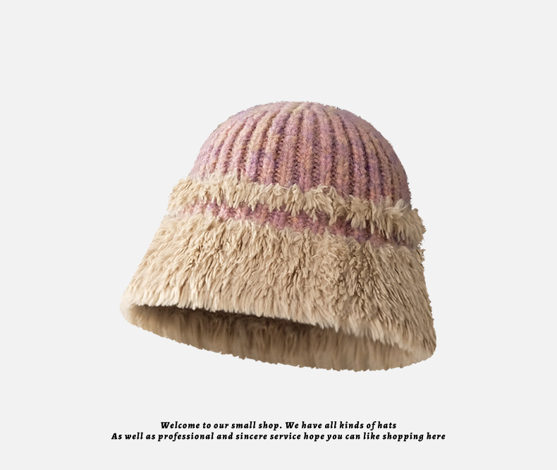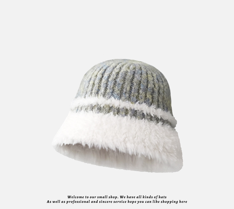 韩系秋冬厚款保暖水桶帽复古百搭显脸小渔夫帽大帽檐毛绒绕盆帽