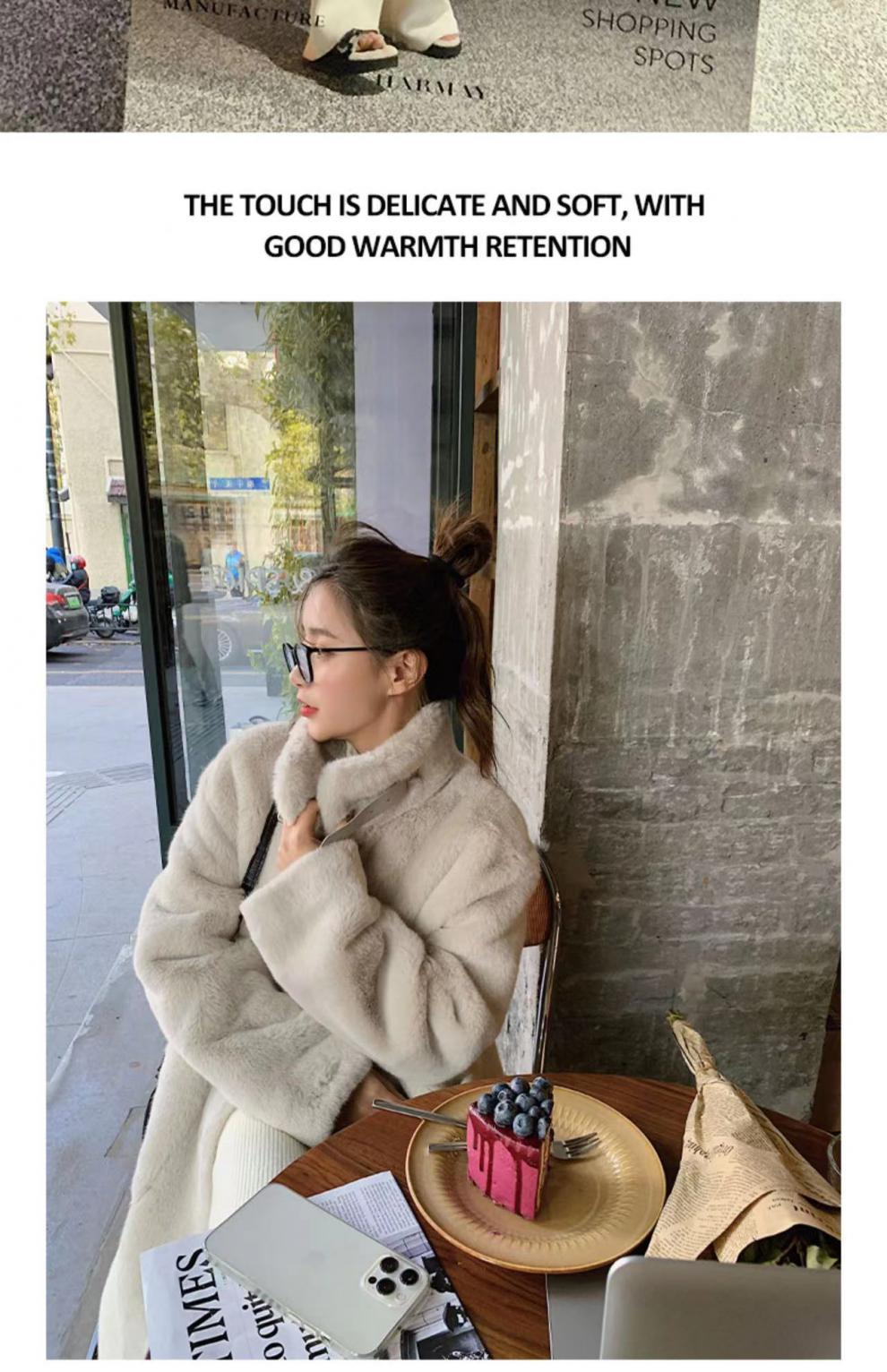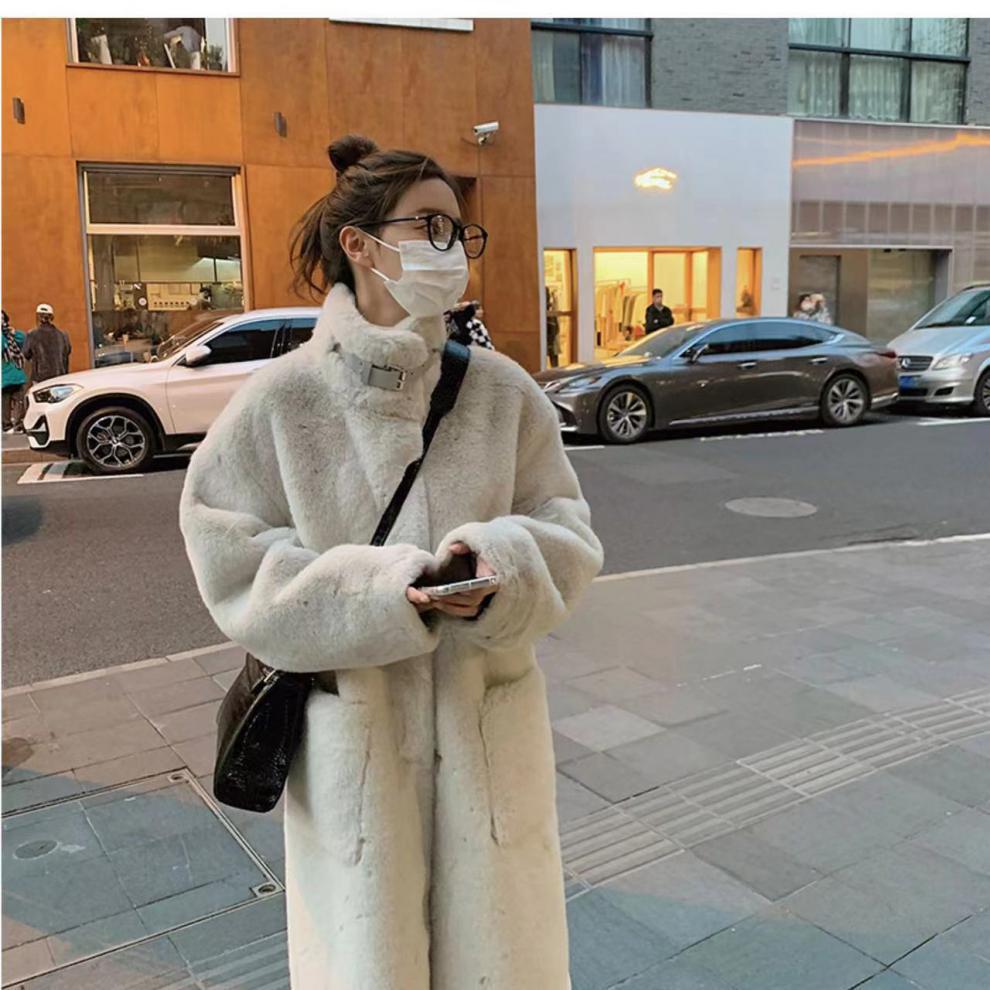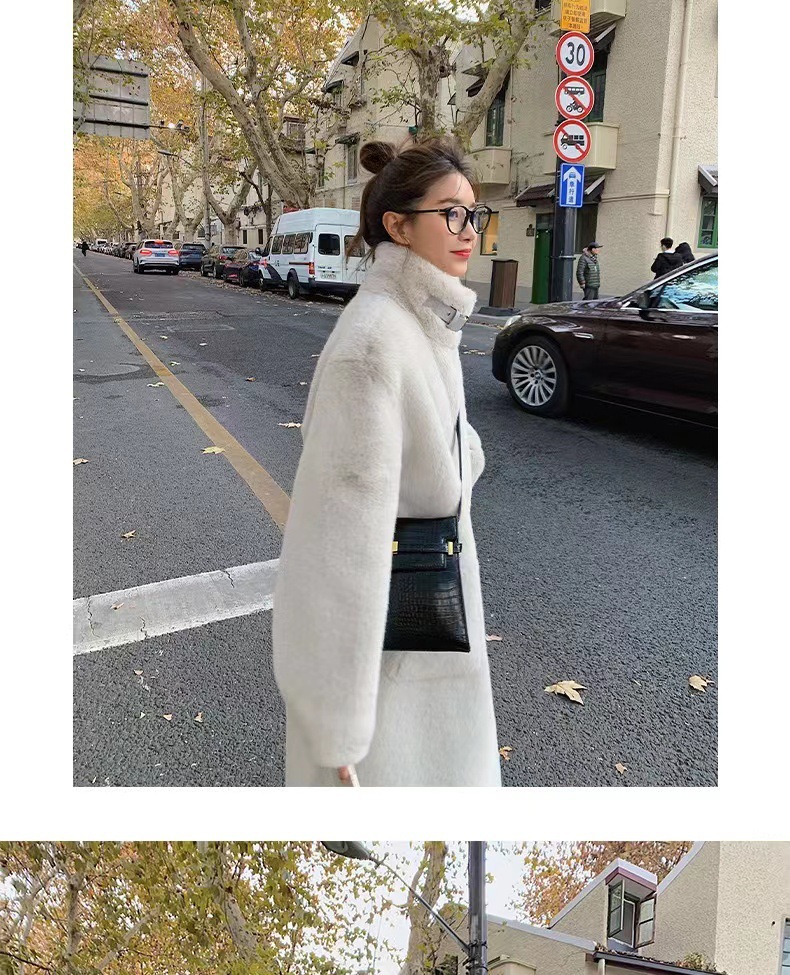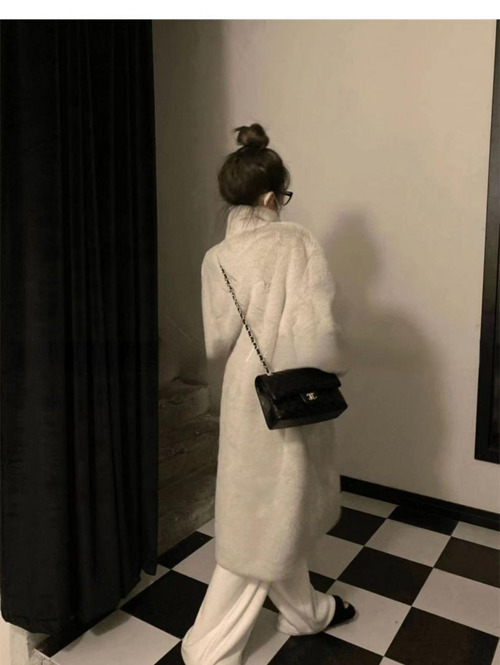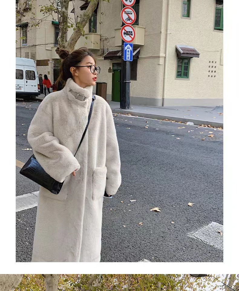 环保皮毛一体大衣女冬季韩版水貂绒中长款过膝立领毛毛绒皮草外套