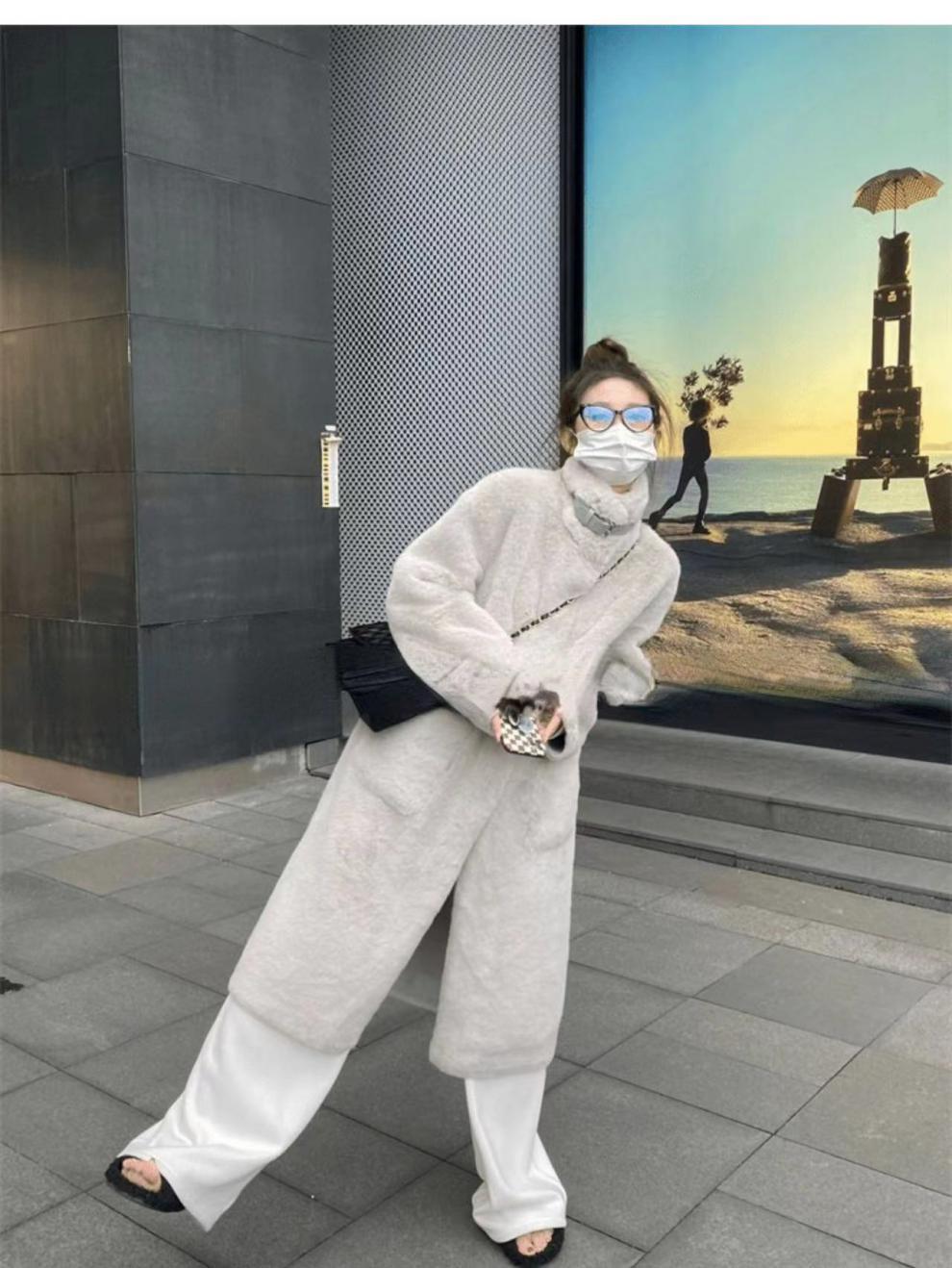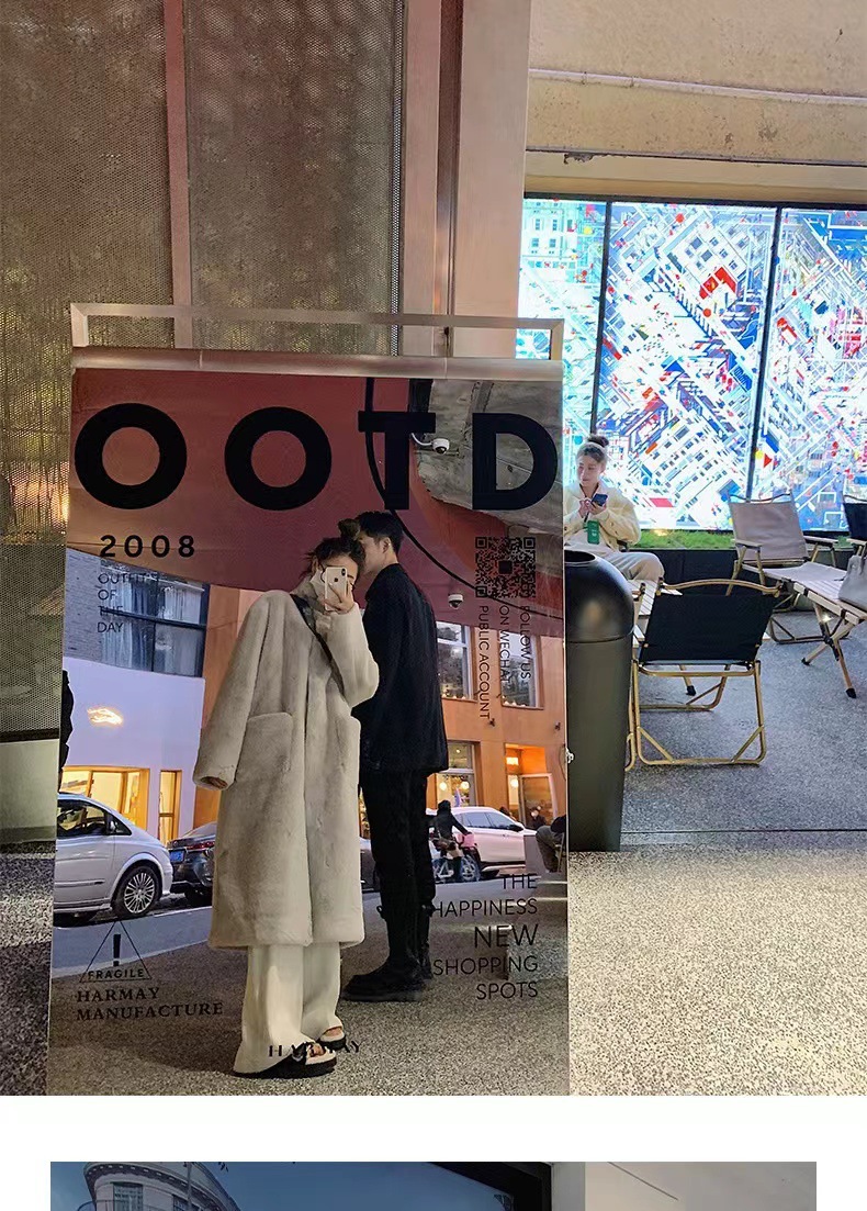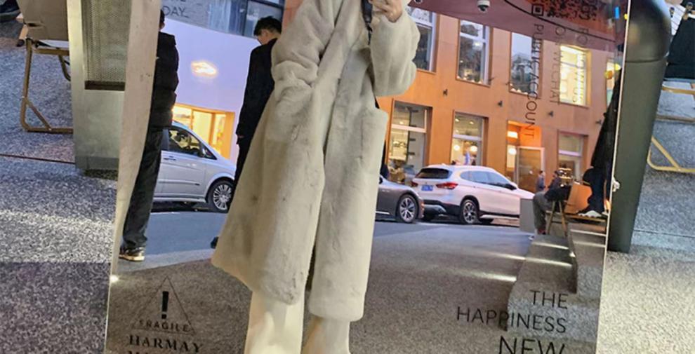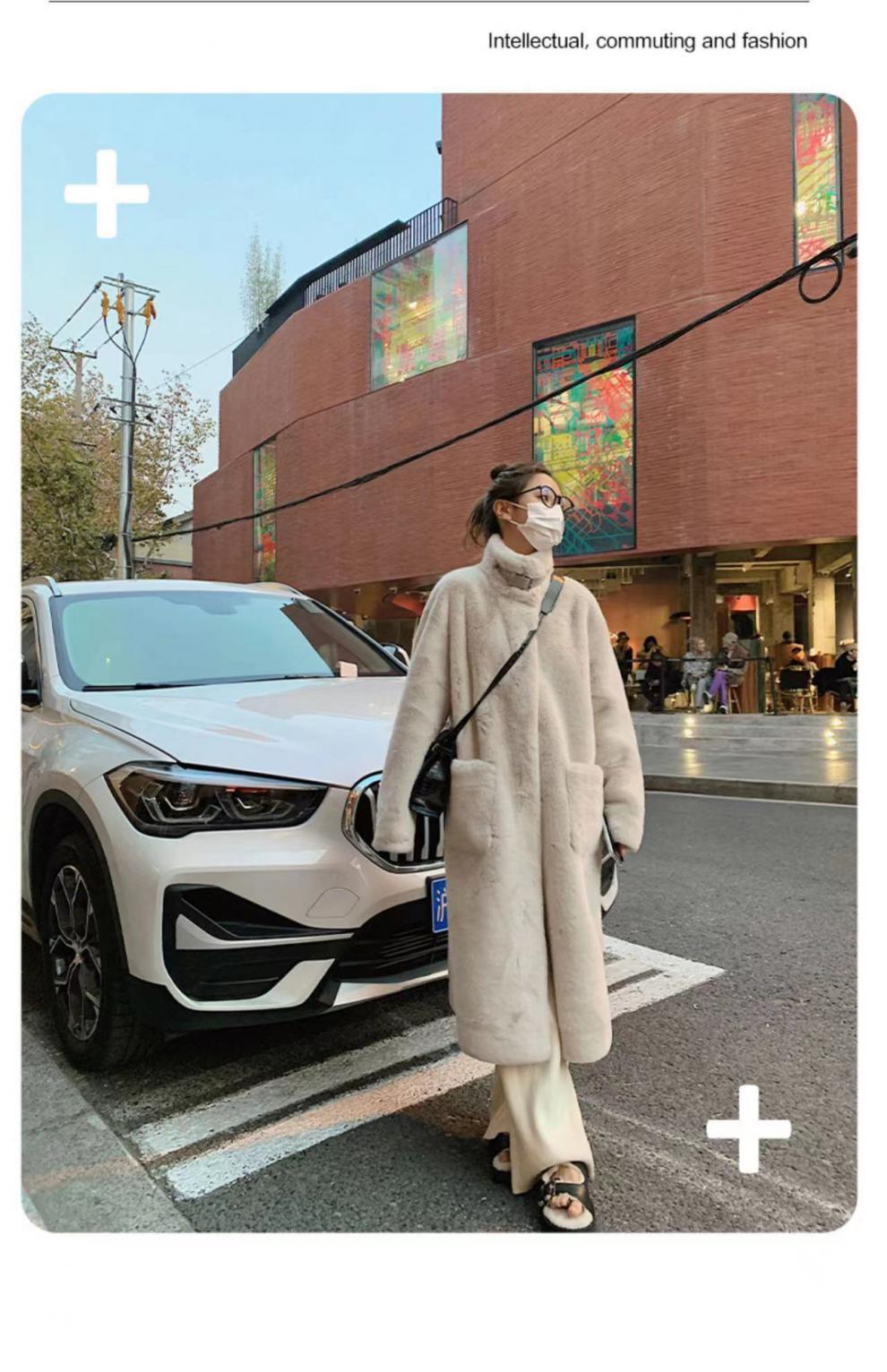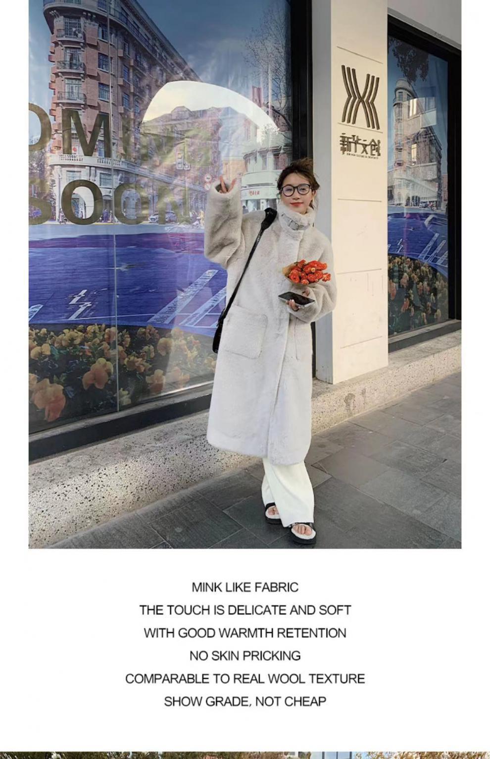 环保皮毛一体大衣女冬季韩版水貂绒中长款过膝立领毛毛绒皮草外套