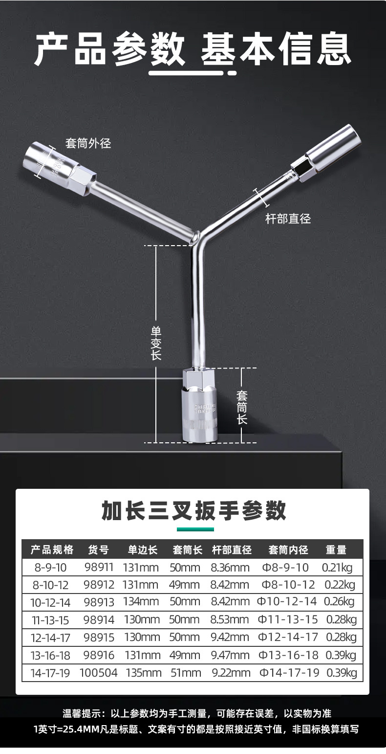拓森五金工具汽车轮胎板子Y型套筒扳手多功能六角三叉套筒扳手