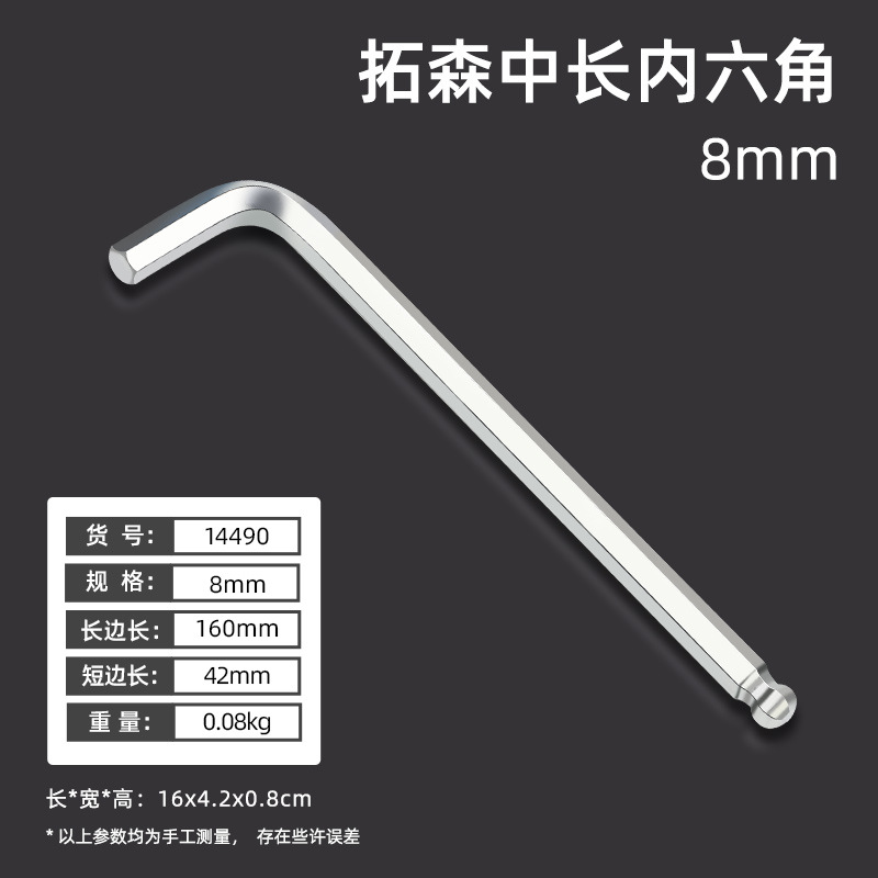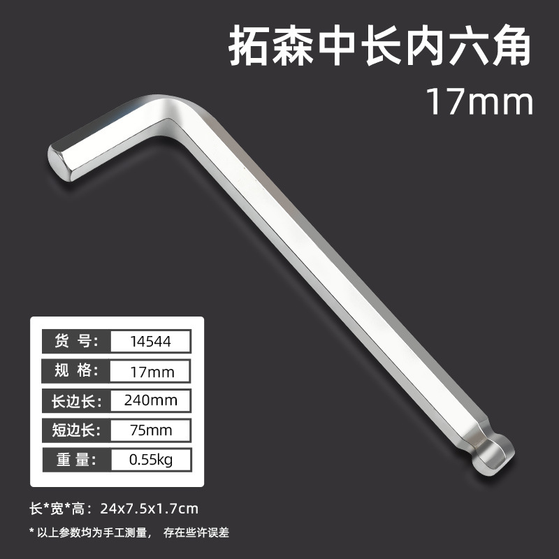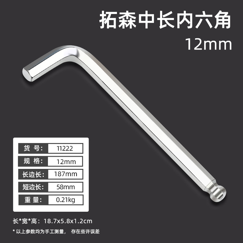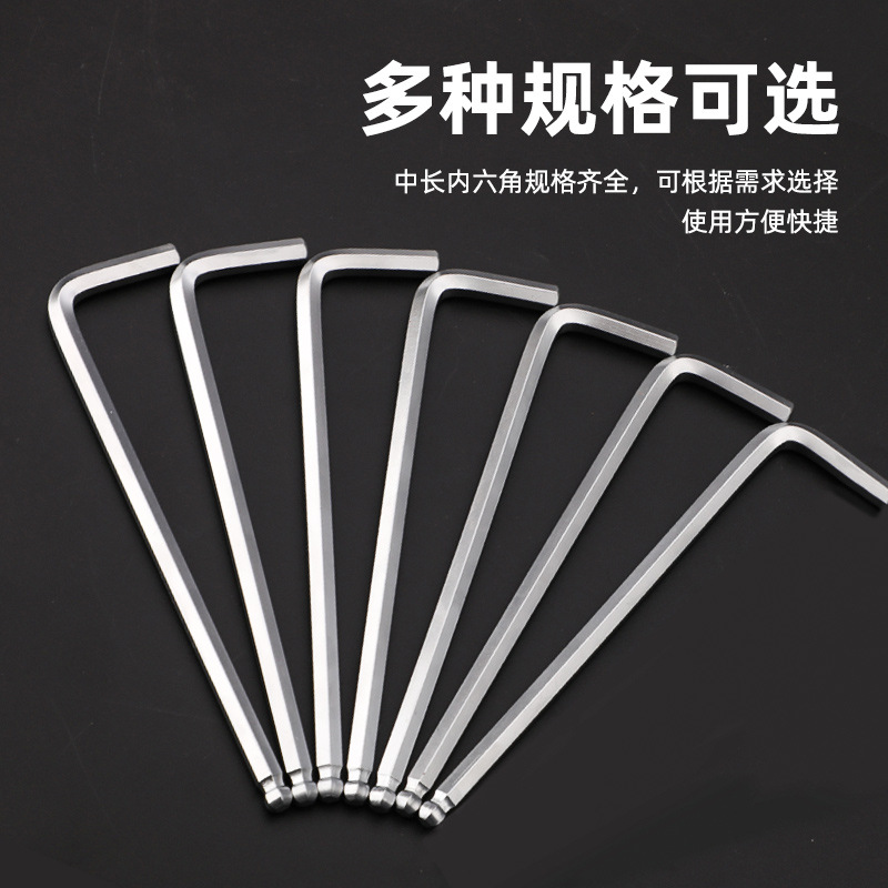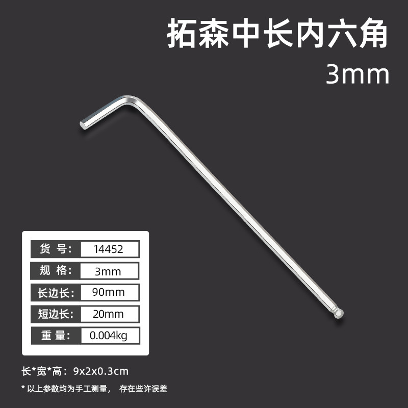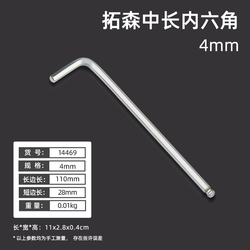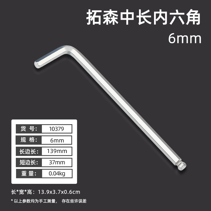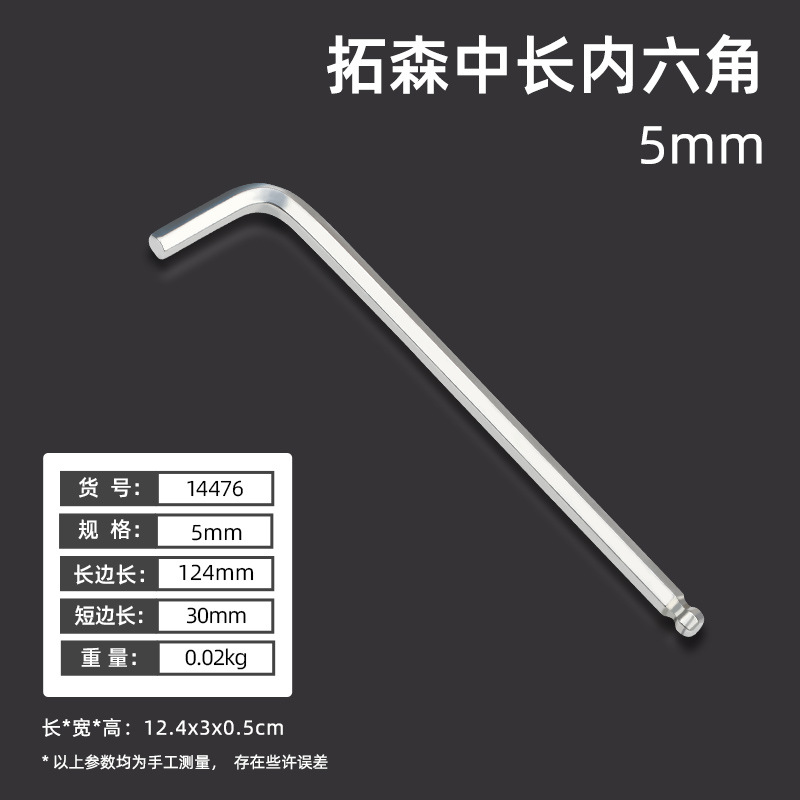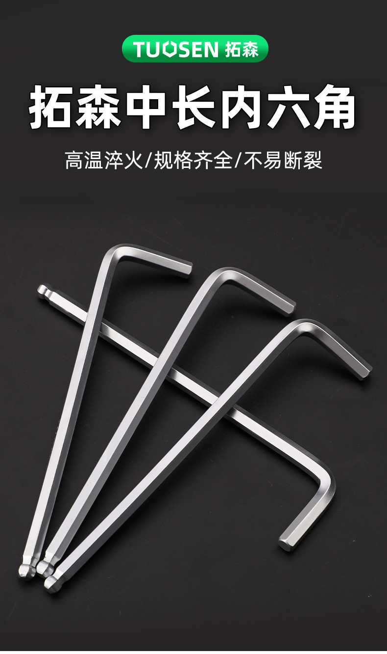 拓森五金工具多功能公制中长L型扳手45#平头球头板子内六角扳手