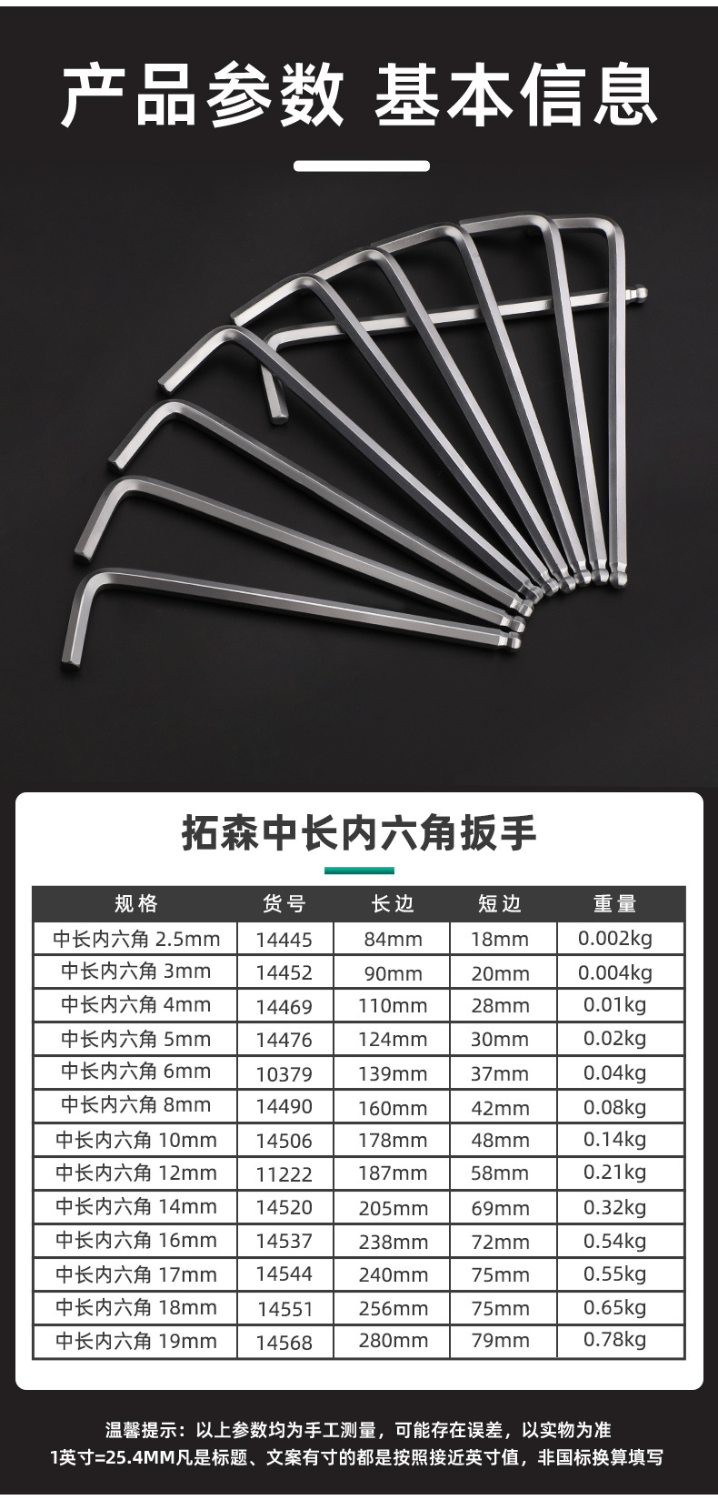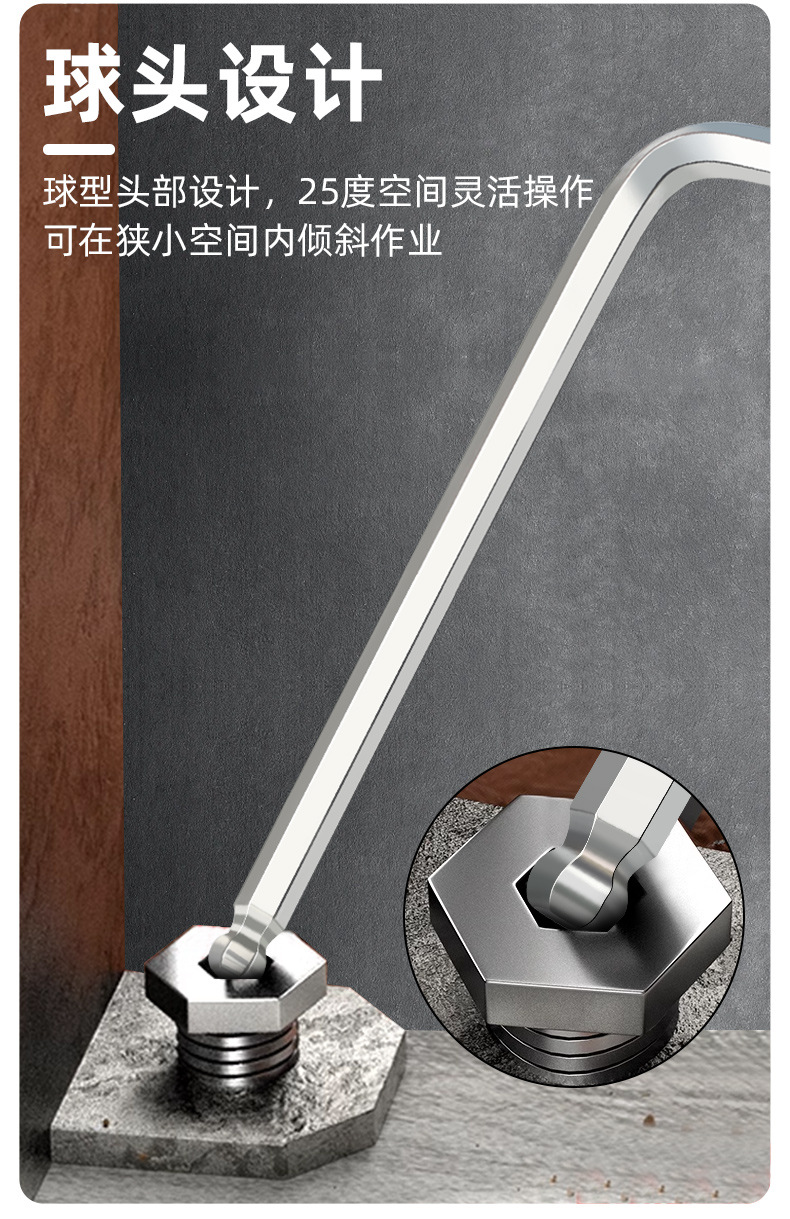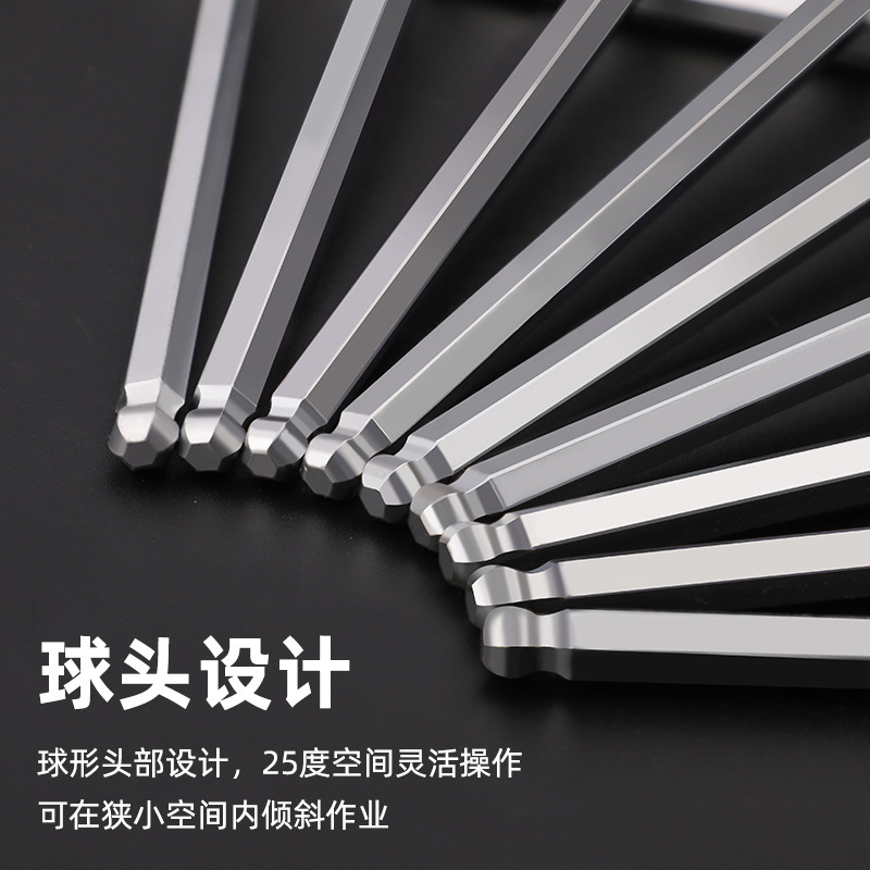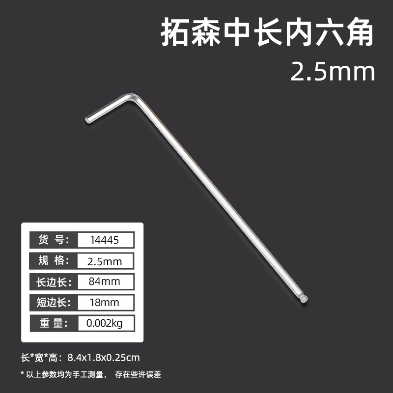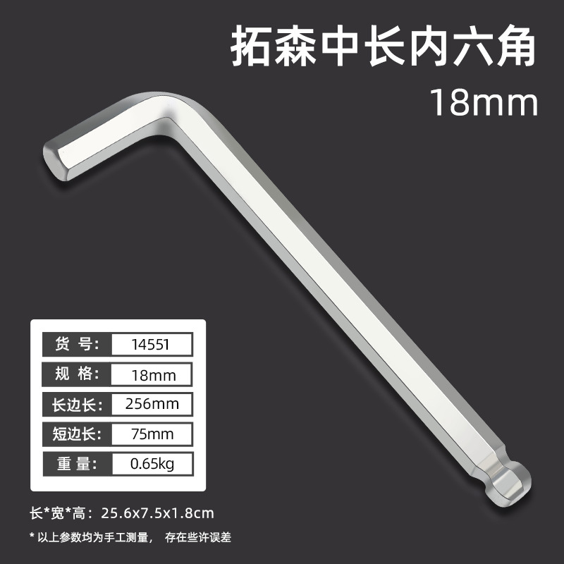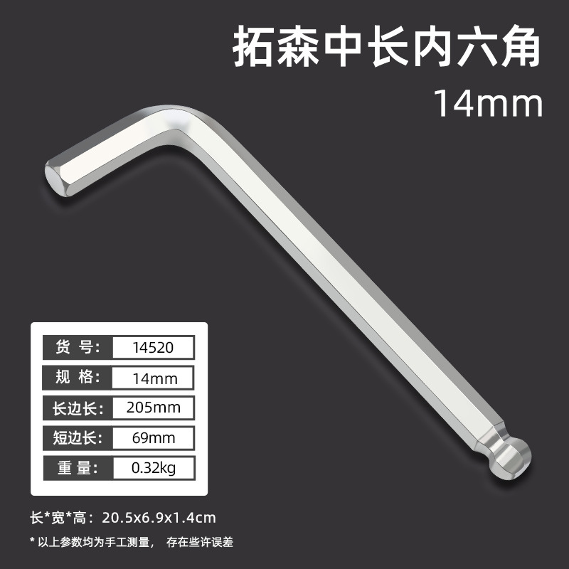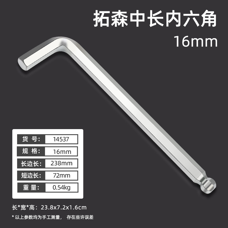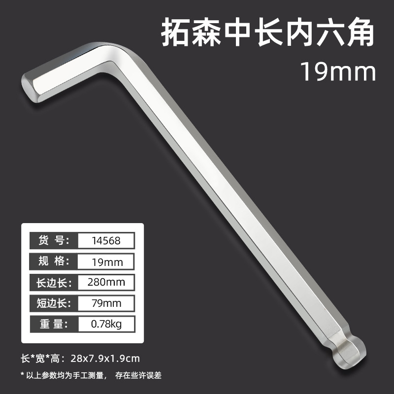 拓森五金工具多功能公制中长L型扳手45#平头球头板子内六角扳手