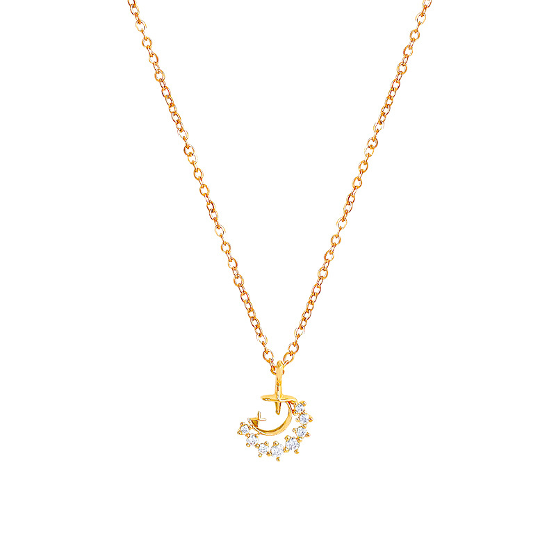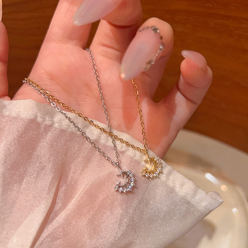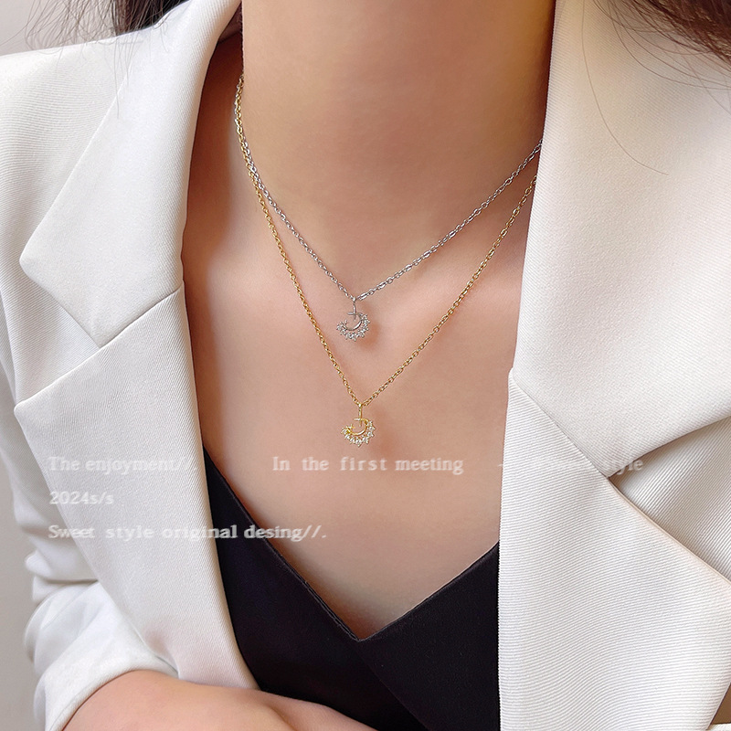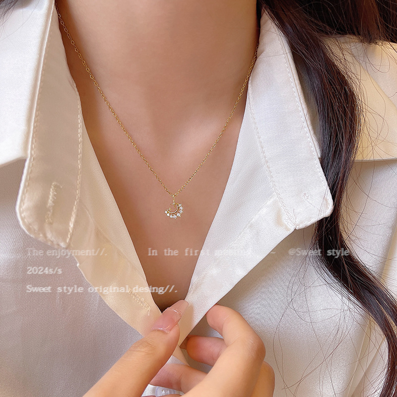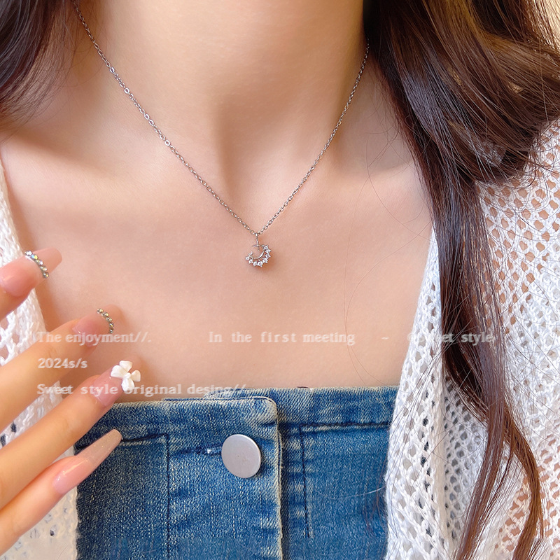轻奢小众简约钛钢锁骨链时尚气质颈链韩系精致锆石月亮项链女