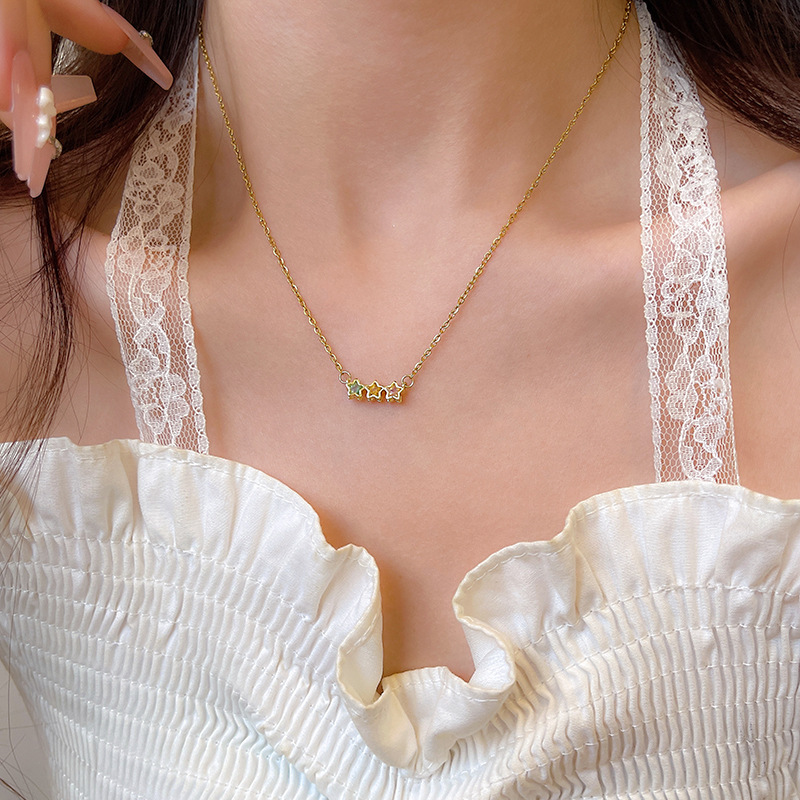 饰品轻奢小众彩色锆石星星项链女韩系爆款高级感钛钢锁骨链颈链