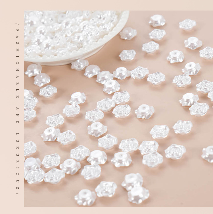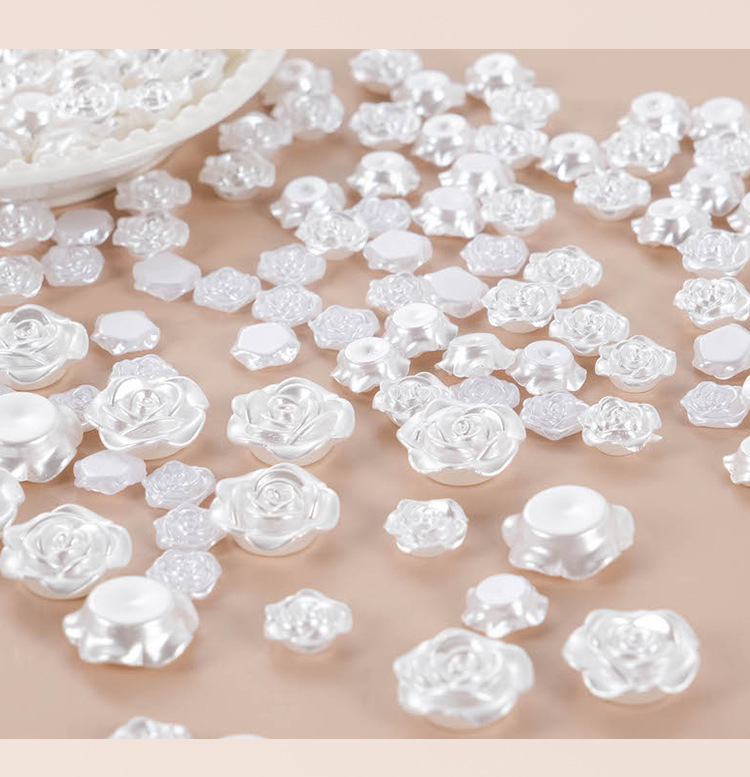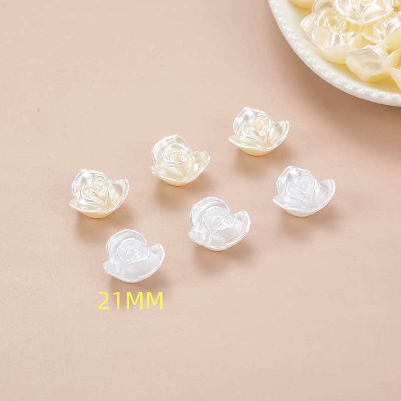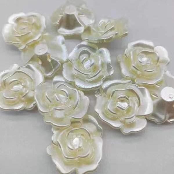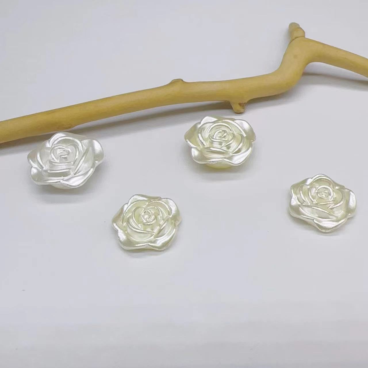 ABS仿珍珠白玫瑰花山茶花 手工diy奶油胶巴洛克配饰 带孔树脂配件