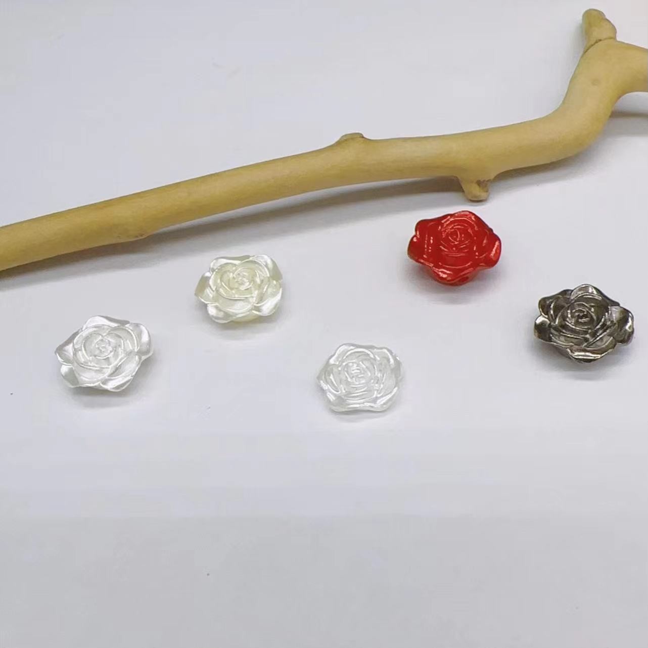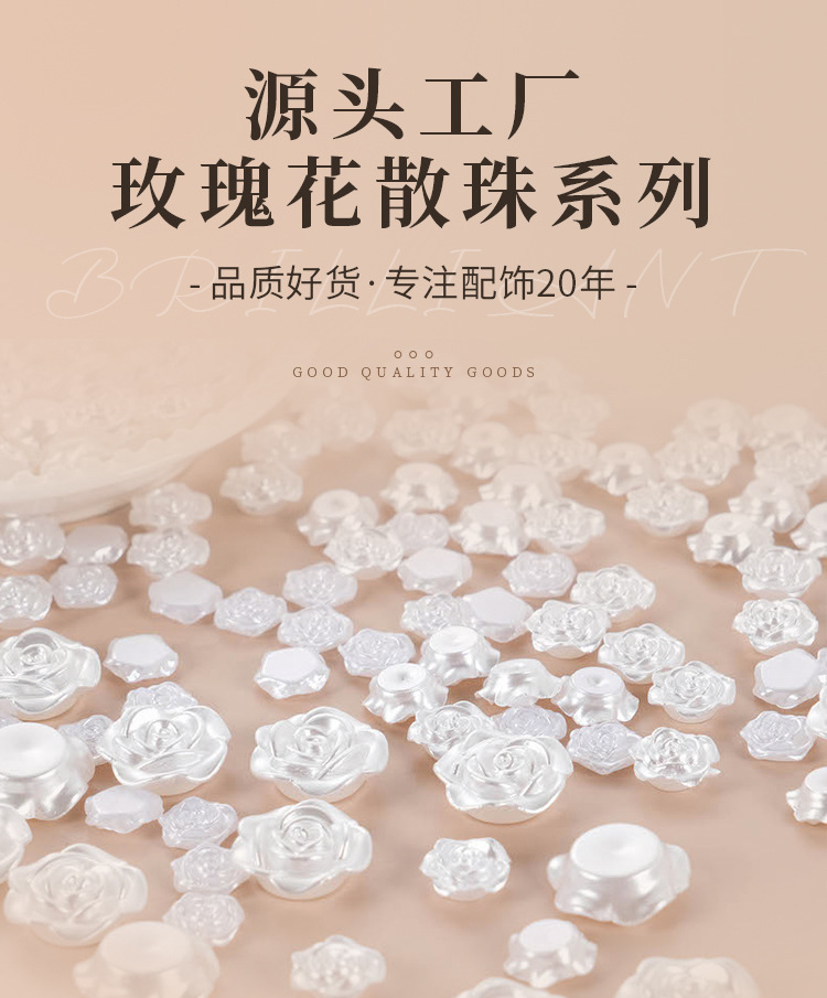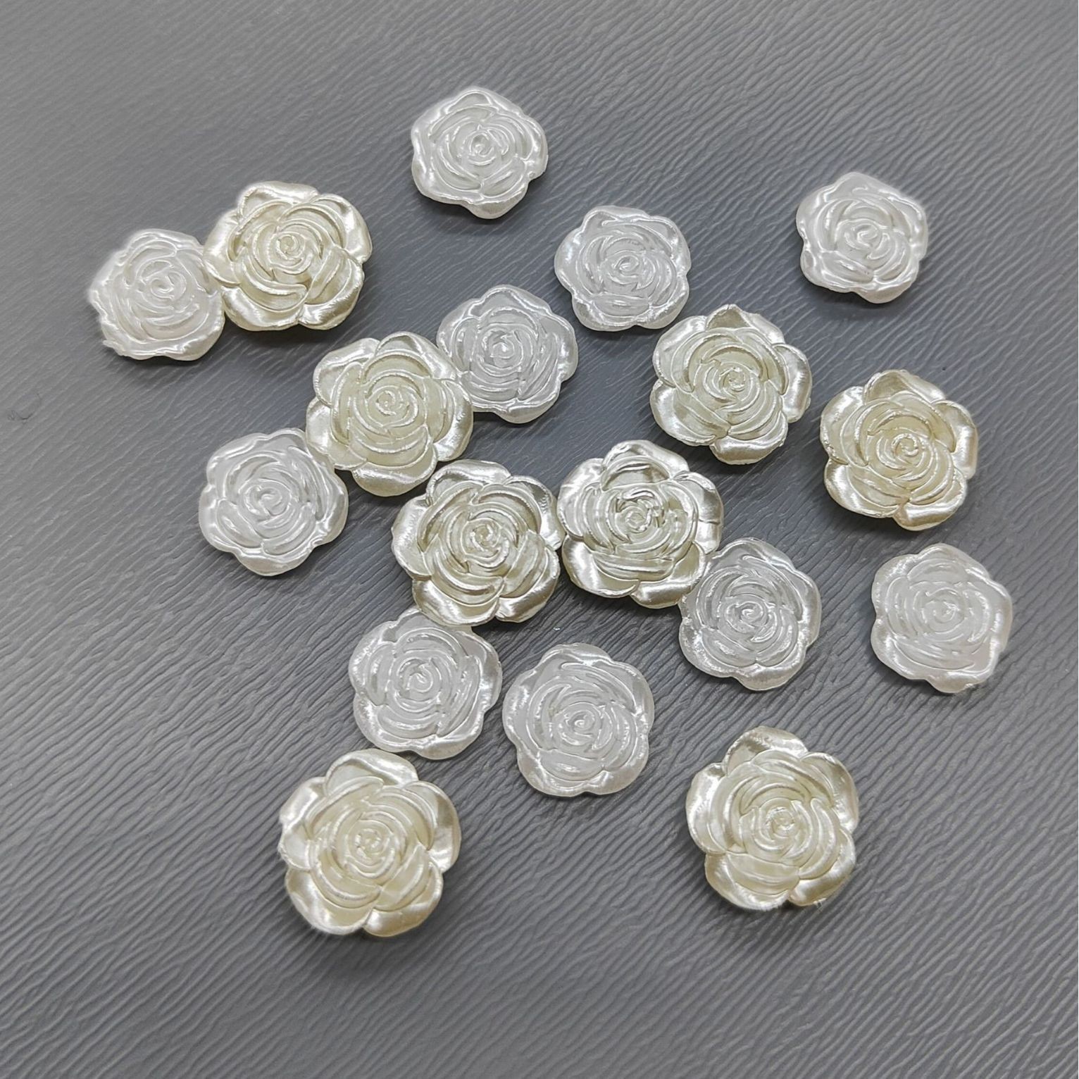 ABS仿珍珠白玫瑰花山茶花 手工diy奶油胶巴洛克配饰 带孔树脂配件