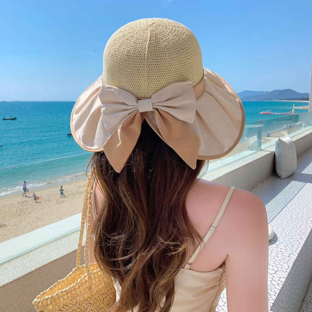 洋气百搭夏季新款蝴蝶结大檐草帽女防晒遮阳时尚海边沙滩帽子批发