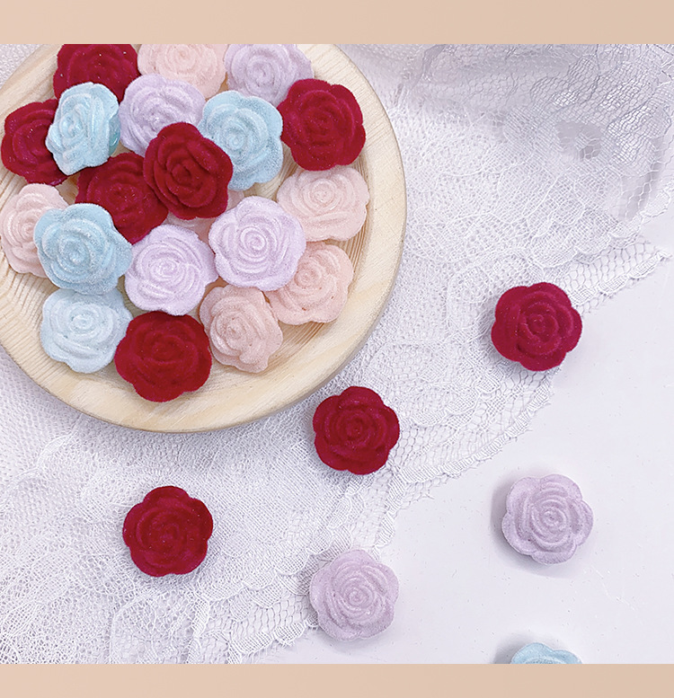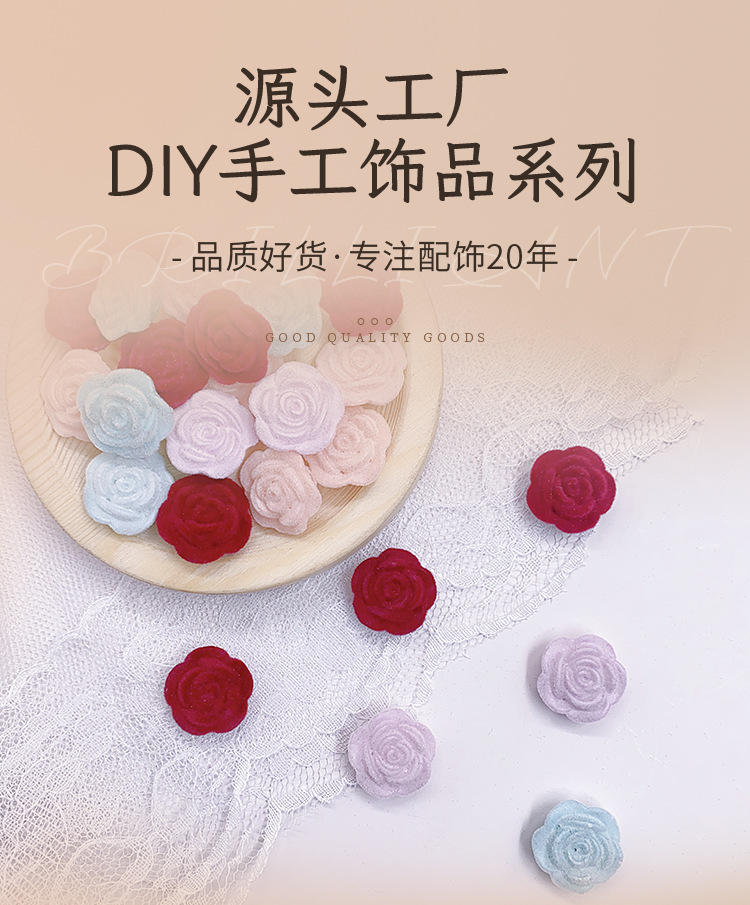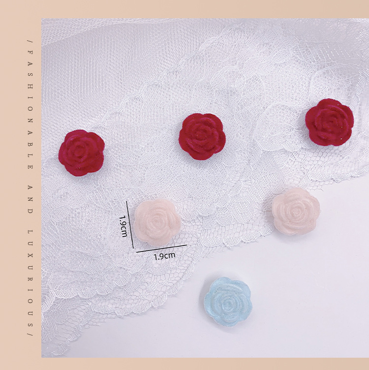 手工植绒玫瑰花diy配饰19mm丝绒玫瑰花束耳环头饰材料仿真花配件