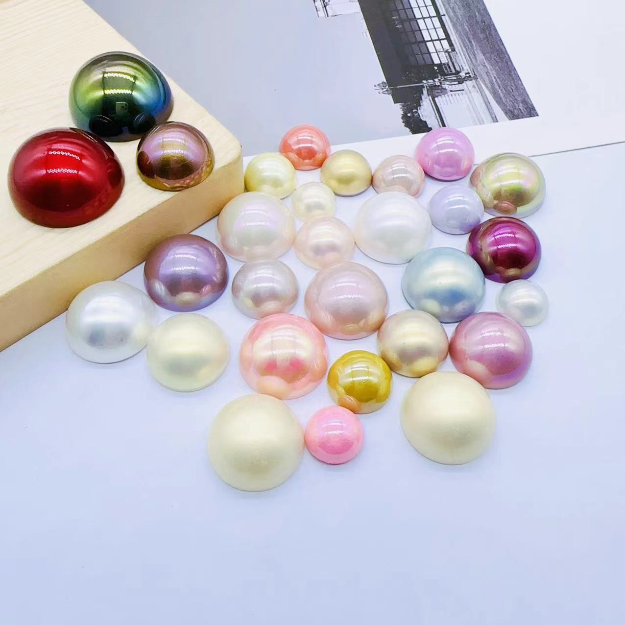 仿贝奶油半圆珍珠贴片ABS仿珍珠散珠圆珠DIY饰品服装纽扣配件批发