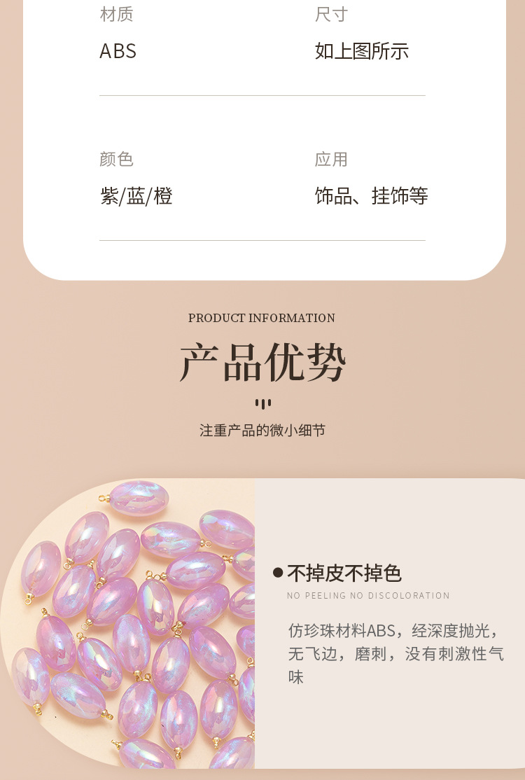 人鱼椭圆吊坠ABS散珠仿珍珠ABS圆珠仿琉璃珠饰品配件串珠手链手串