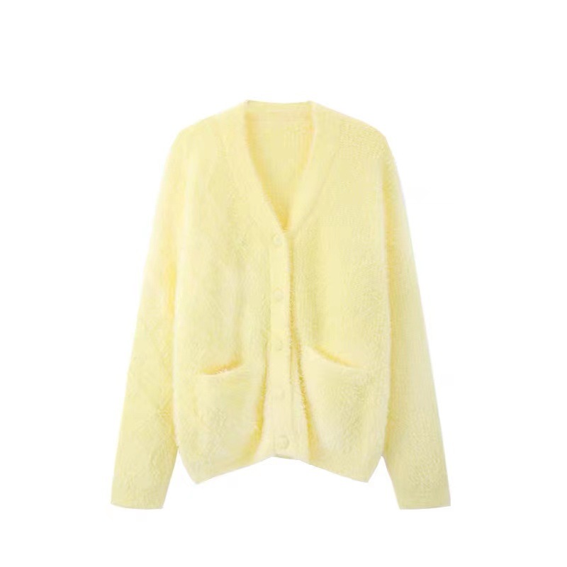 鹅黄色软糯设计感毛衣外套女春秋季温柔慵懒风韩系仿水貂针织开衫