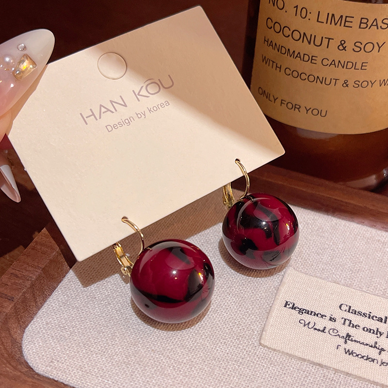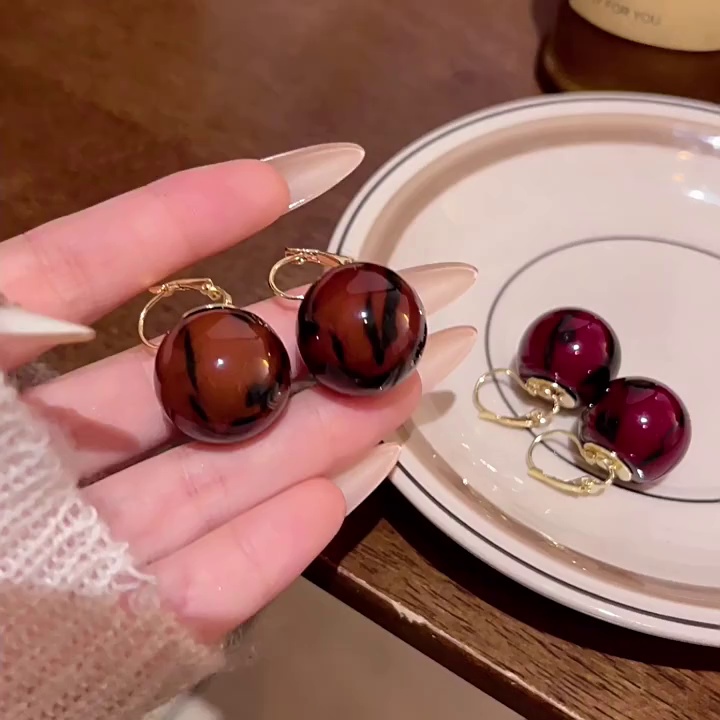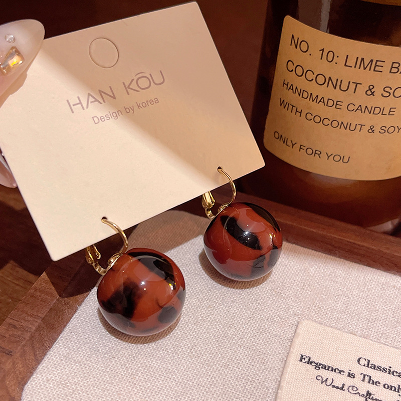 饰品轻奢小众高级感晕染树脂圆球耳钉网红耳饰秋冬款豹纹耳环女