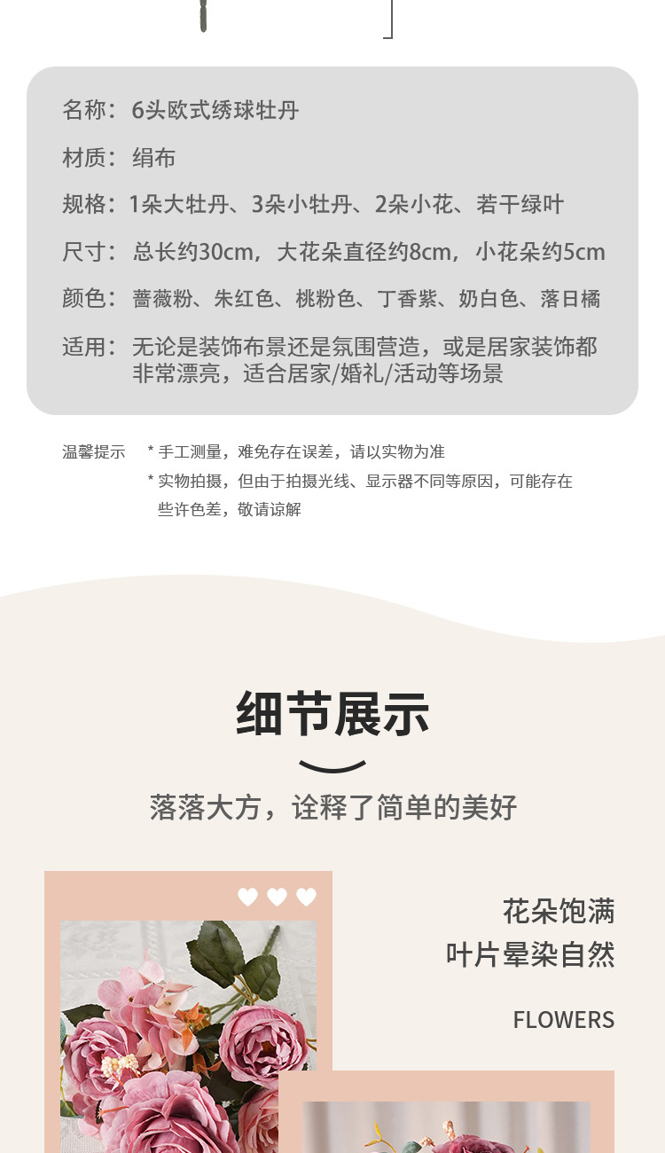 工厂直销仿真花欧式绣球牡丹婚庆家居装饰假花批发拍摄道具