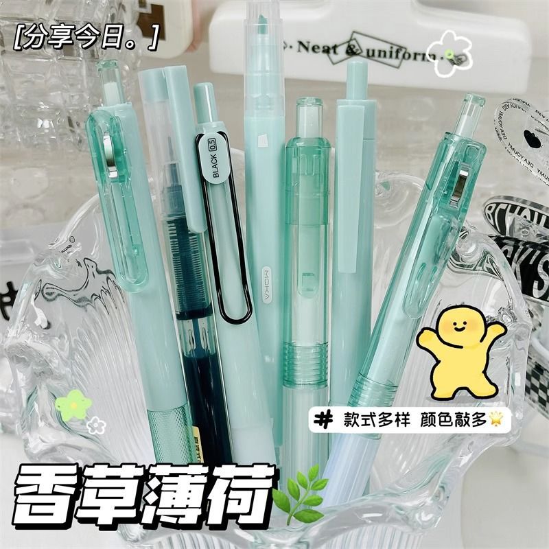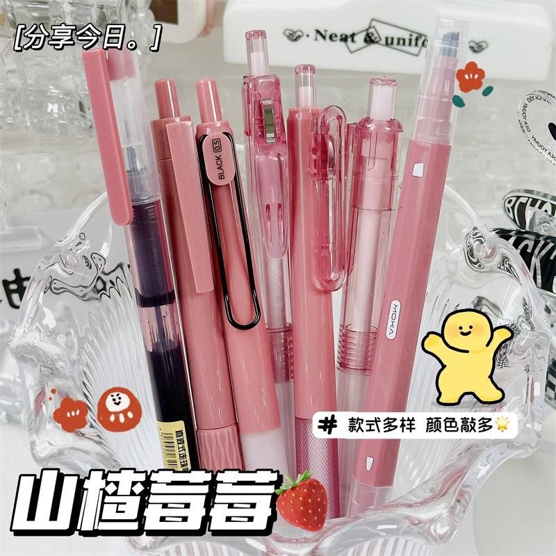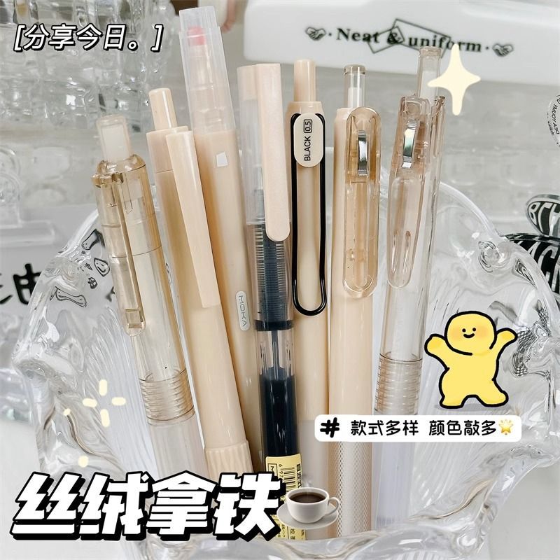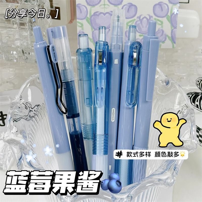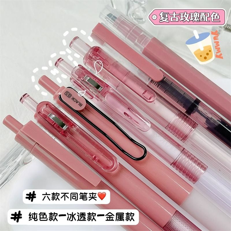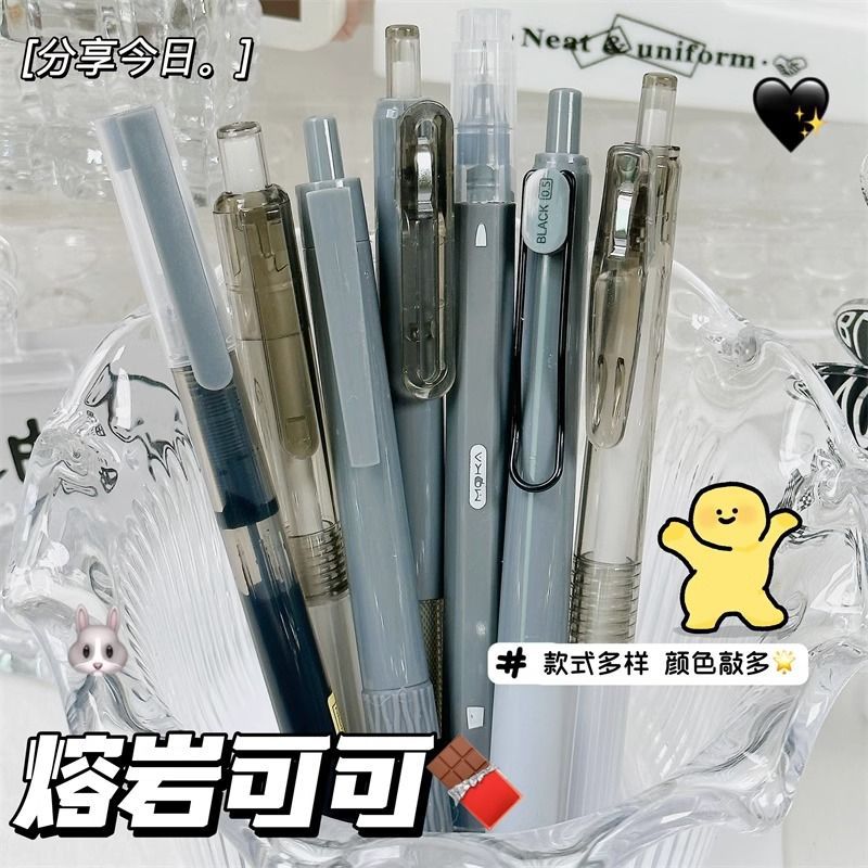 全套按动中性笔ins日系高颜值顺滑速干学生考试专用黑色水笔套装