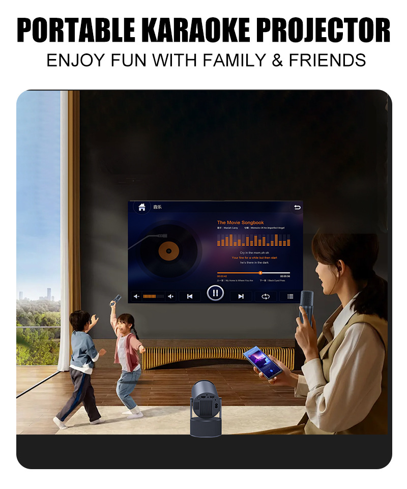 HY300 Pro KTV 蓝牙音响投影仪跨境电商便携安卓系统家庭影院黑色