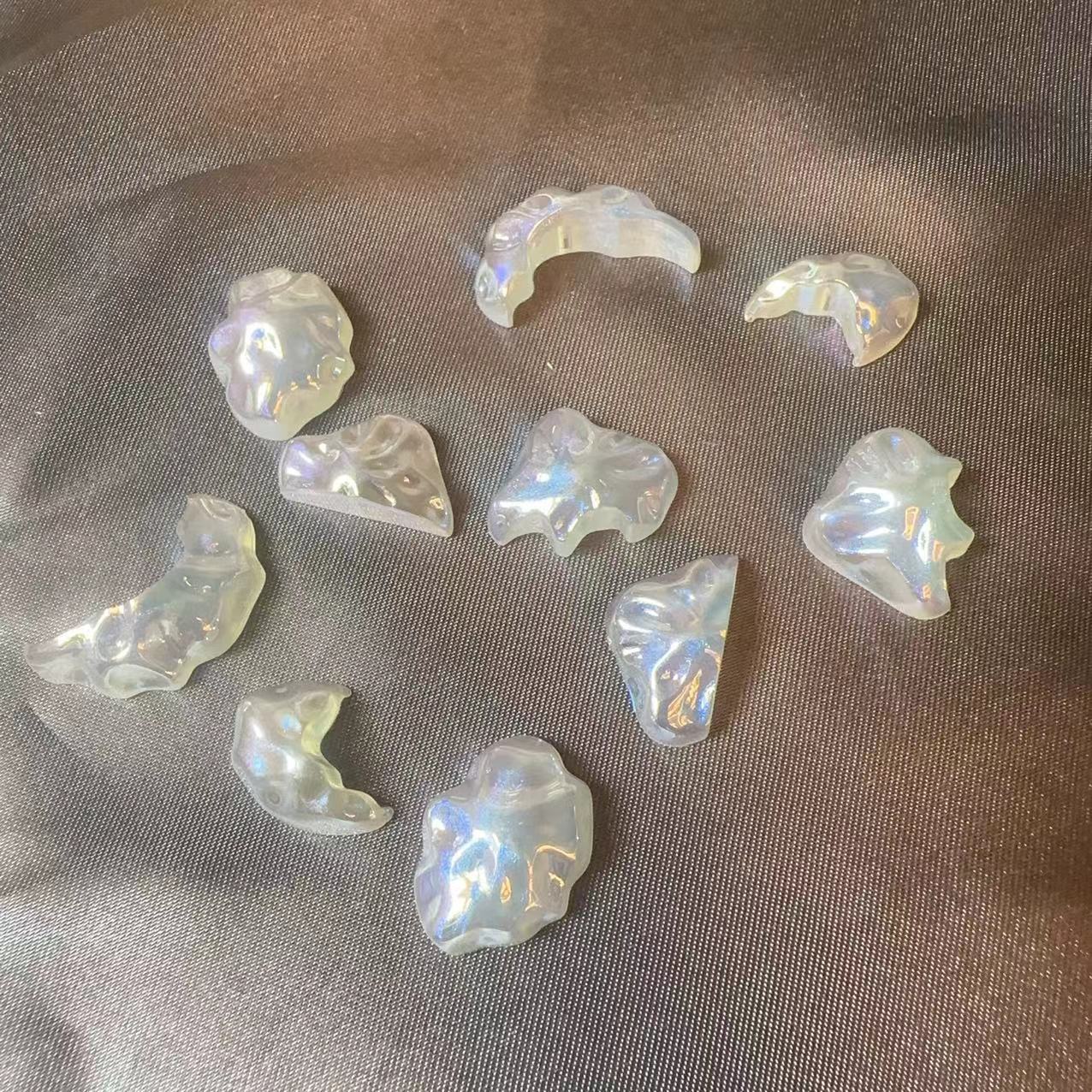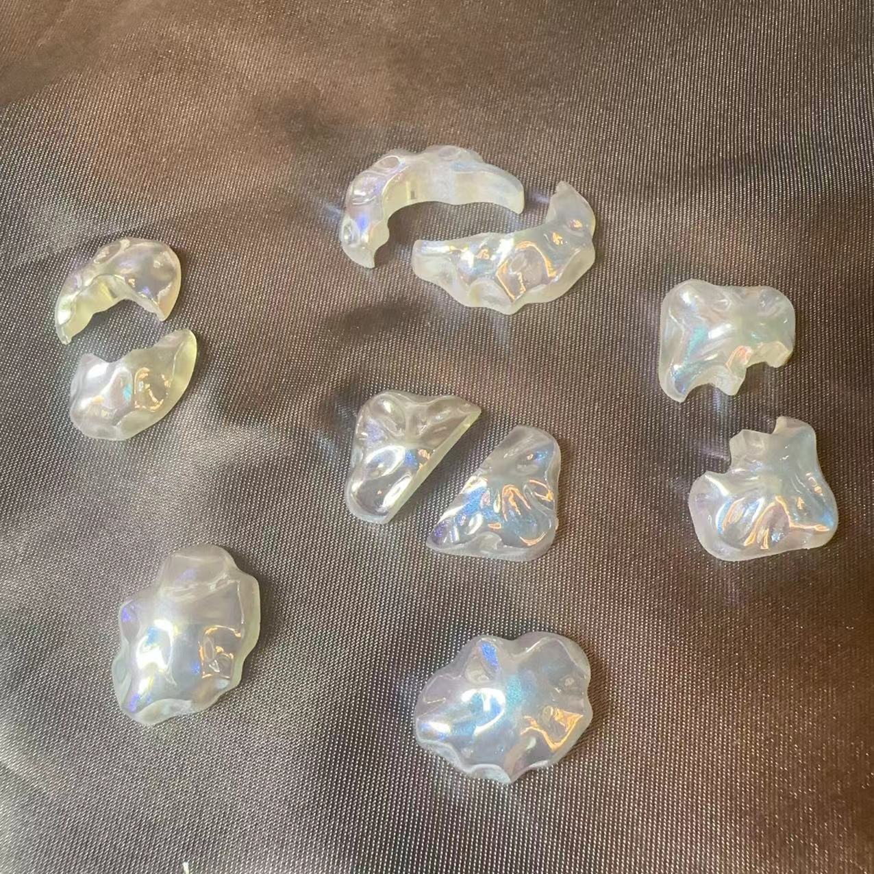 新款平底月牙水晶巴洛克摩卡钻美甲饰品 diy幻彩色可穿戴甲装饰品