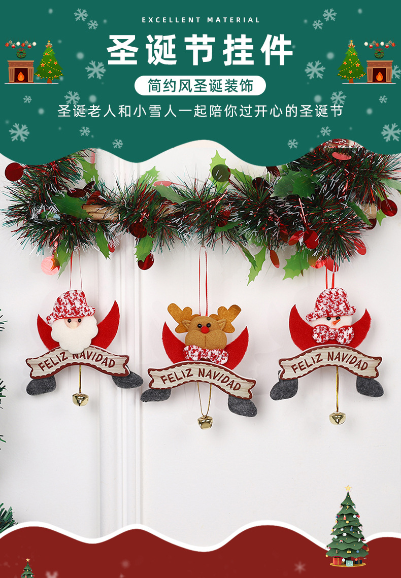 新款圣诞挂件 可爱卡通圣诞老人麋鹿装饰品 圣诞树铃铛挂件现货
