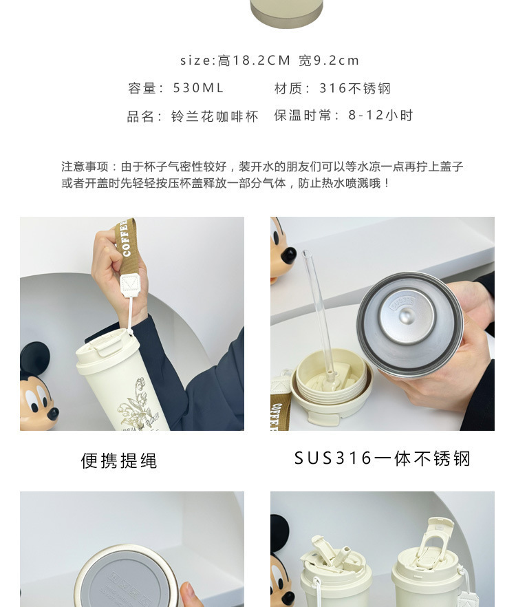 新款铃兰花咖啡杯商务礼品logo厂家直销批发保温杯316不锈钢