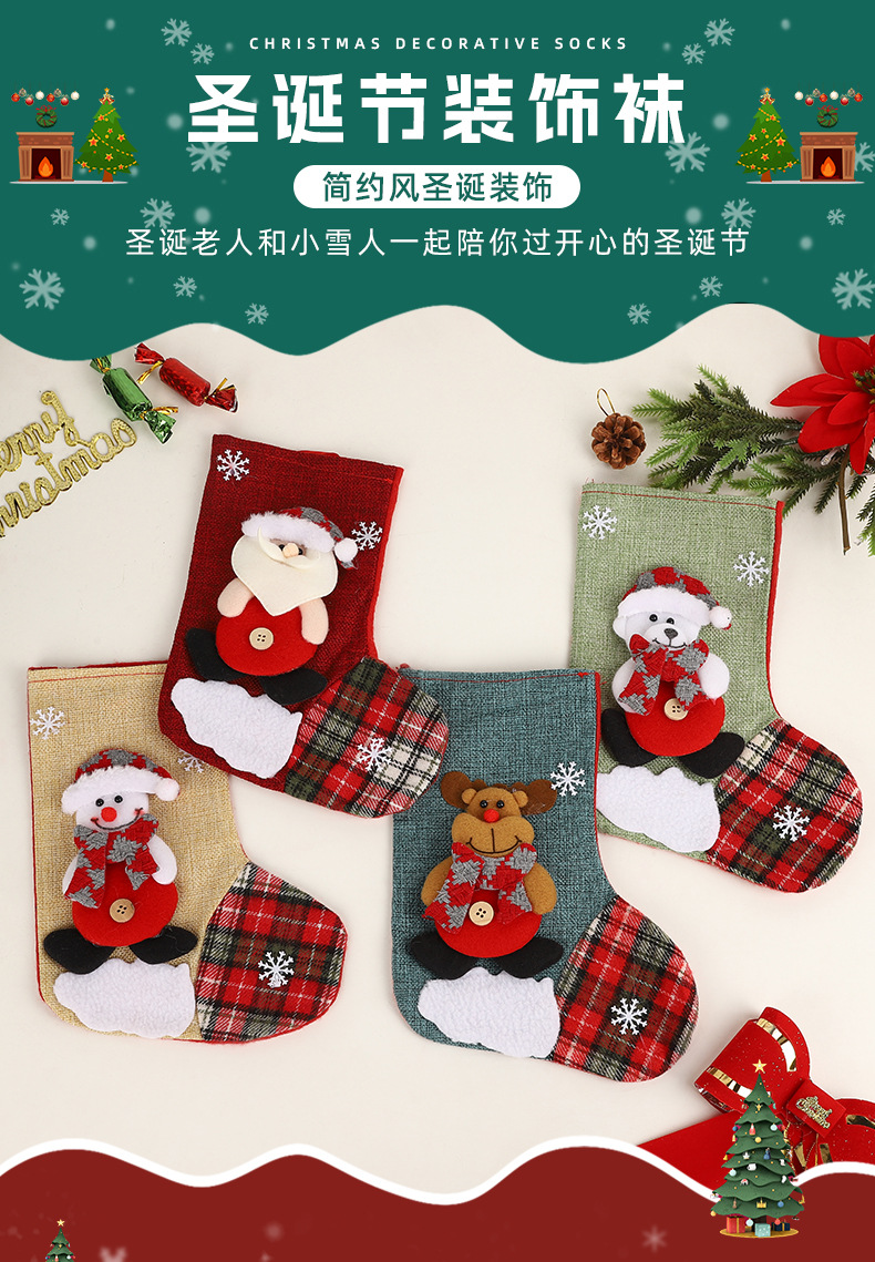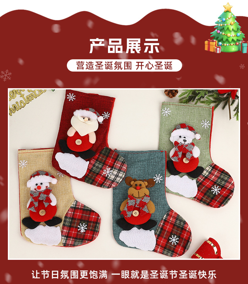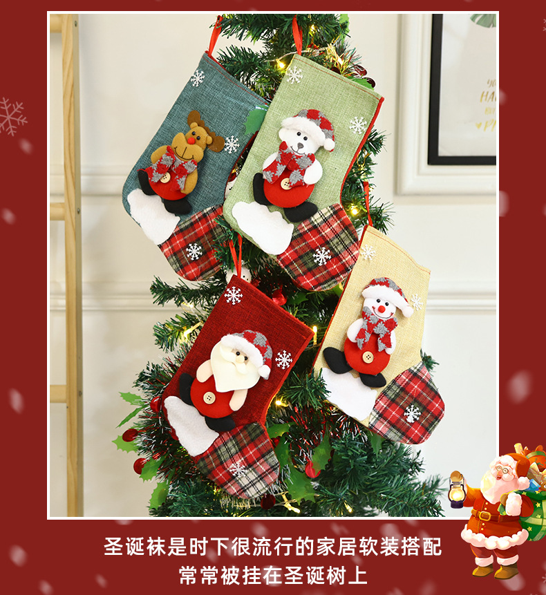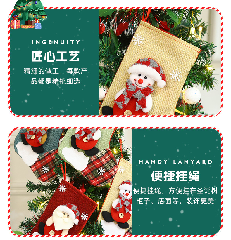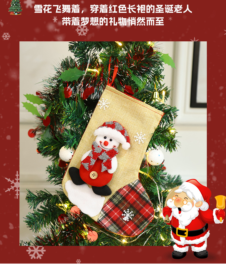 卡通圣诞袜 圣诞雪人装饰礼物袋挂件 圣诞老人许愿糖果袋饰品现货