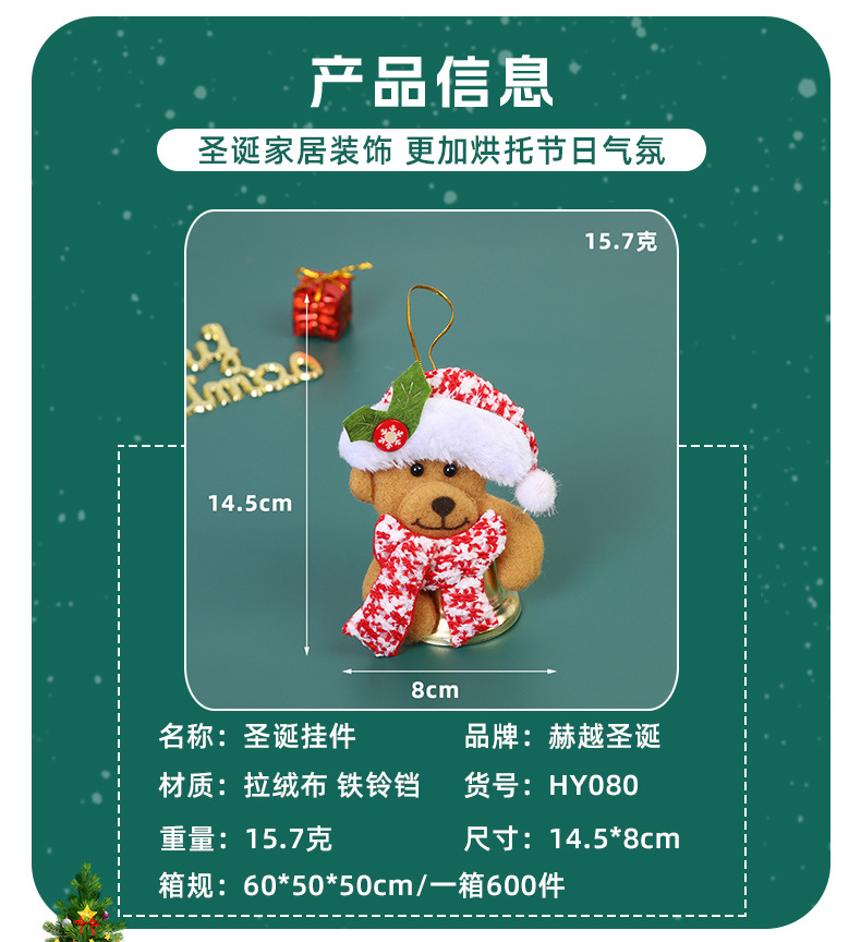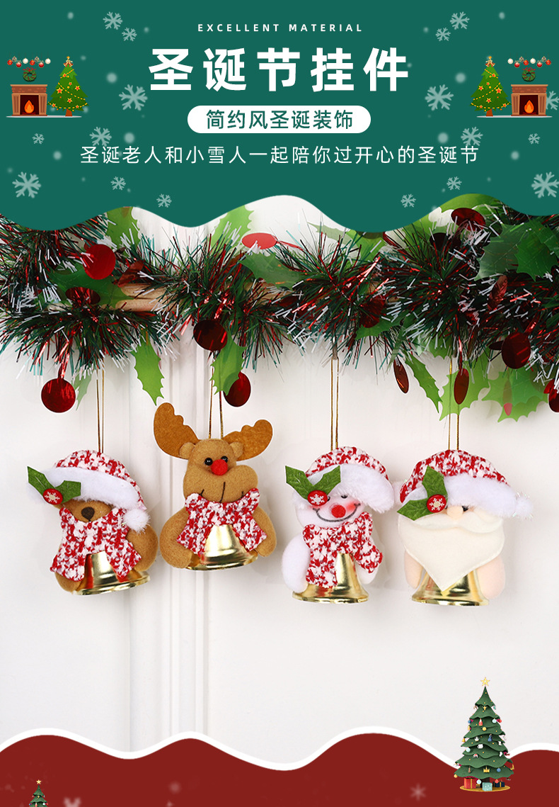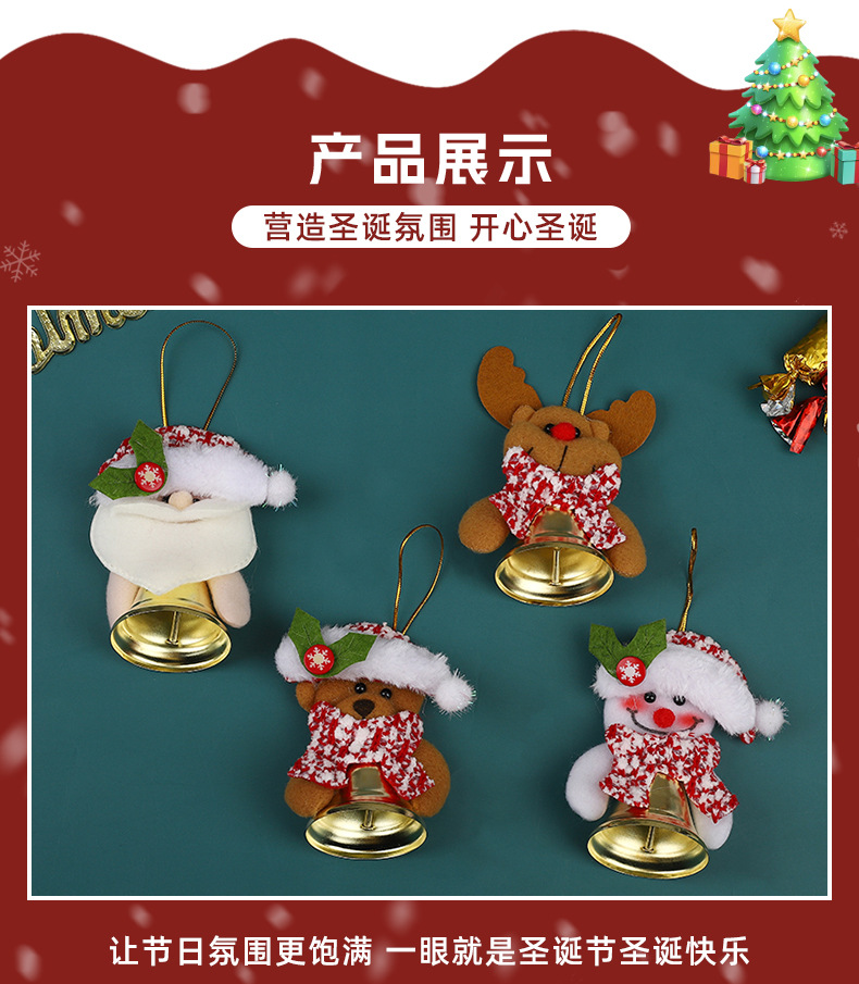 圣诞卡通挂件 圣诞老人麋鹿装饰挂件 圣诞树铃铛挂饰品