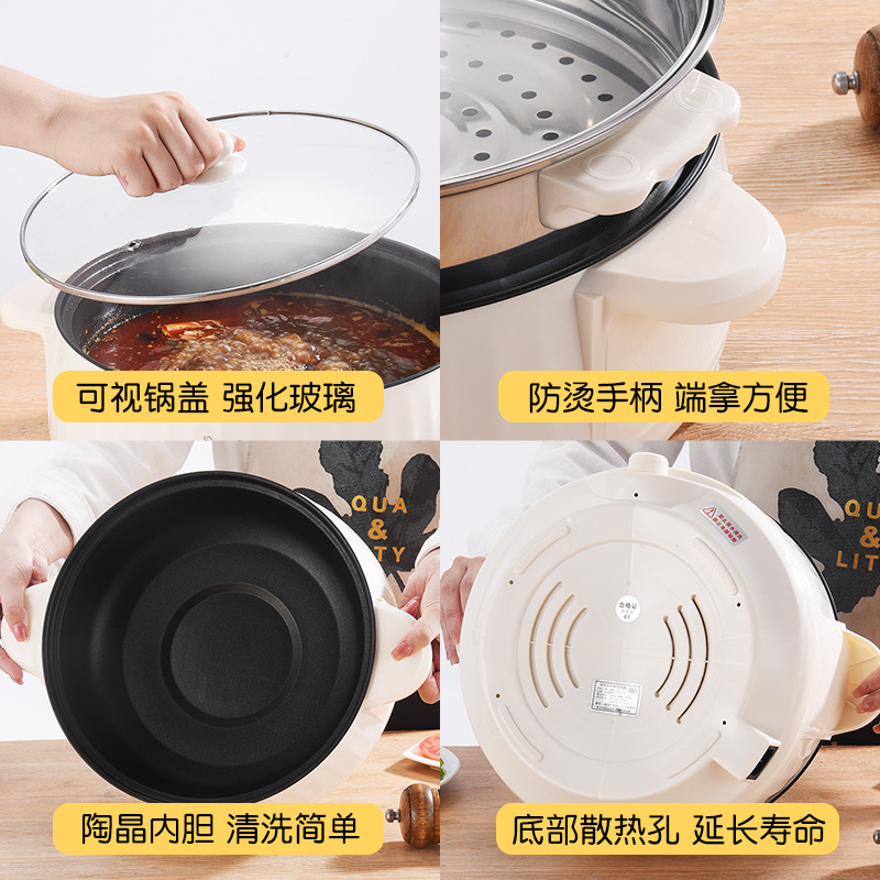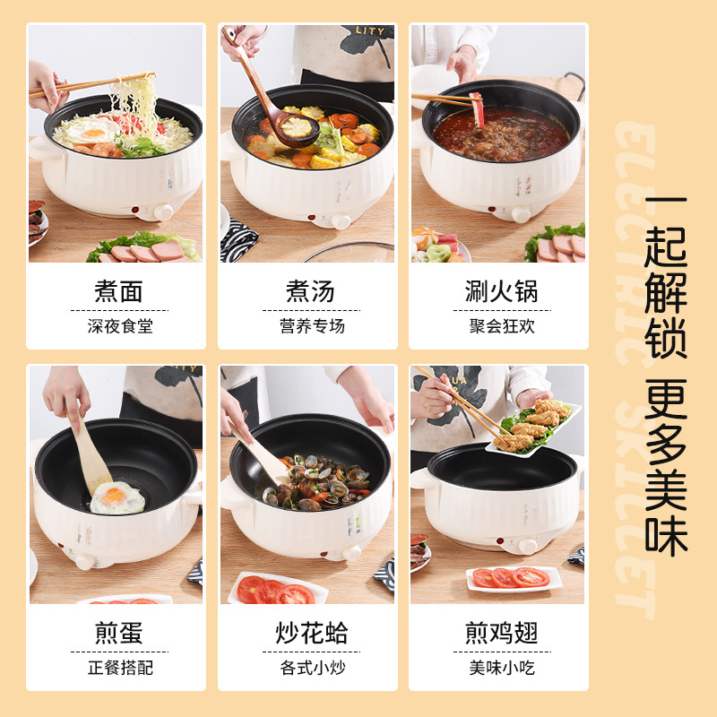 厂家直供多功能电煮锅家用大容量电热火锅蒸煮炒菜不粘一体电炒锅