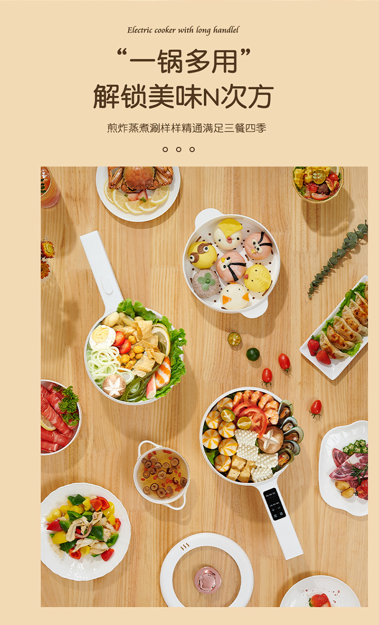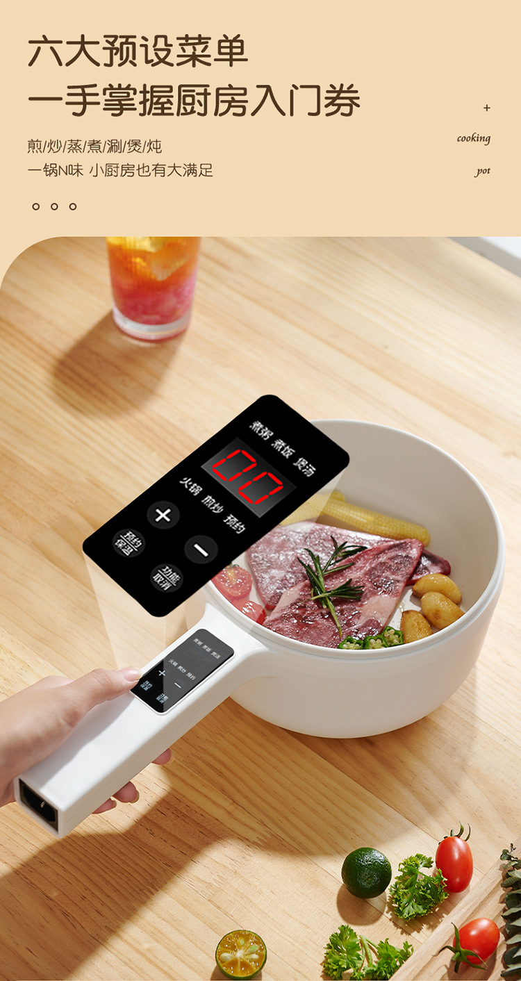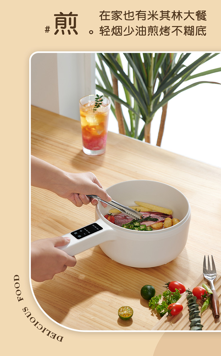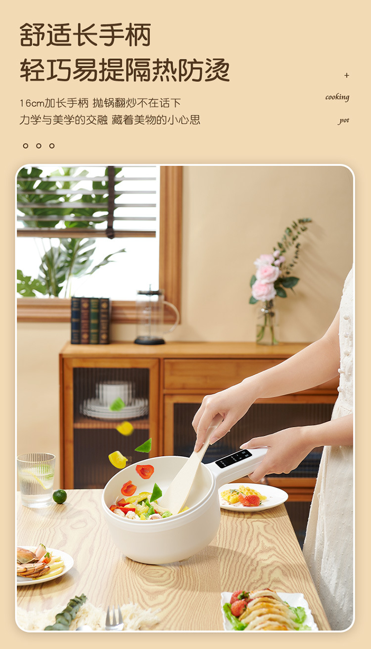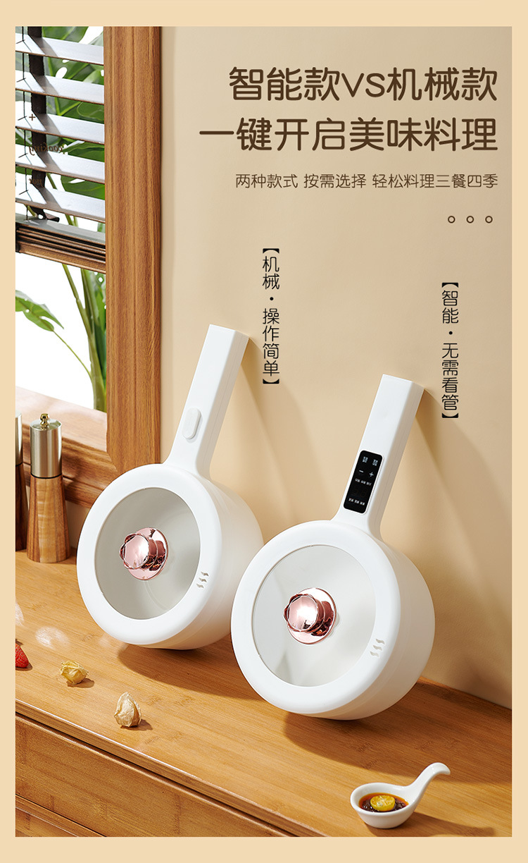 工厂直销白色长柄陶瓷釉电煮锅宿舍小电锅家用一体式煎炒不粘电锅