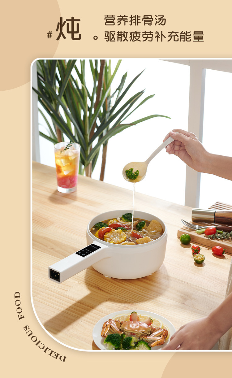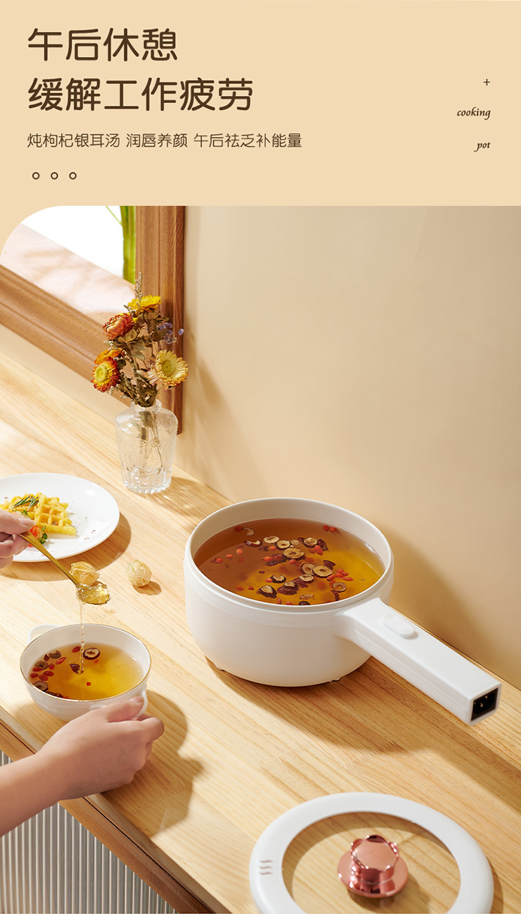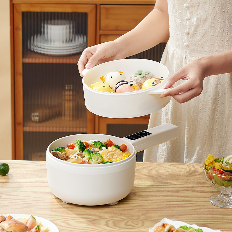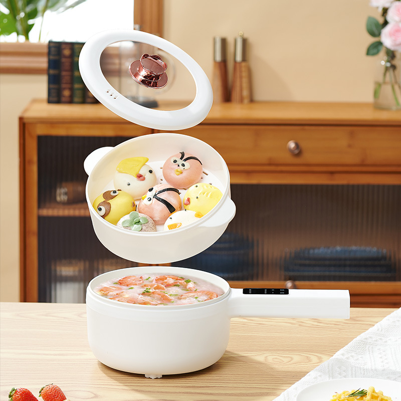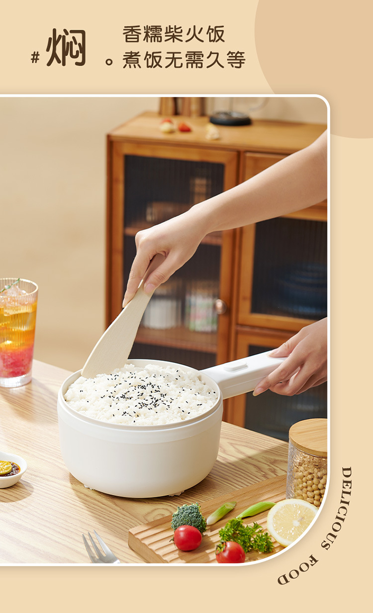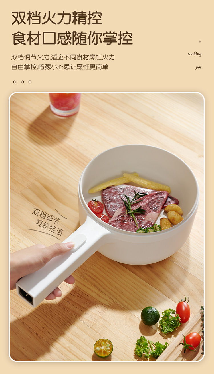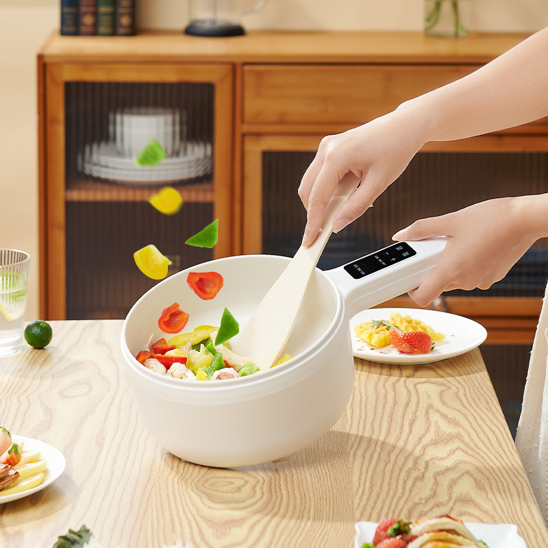 工厂直销白色长柄陶瓷釉电煮锅宿舍小电锅家用一体式煎炒不粘电锅