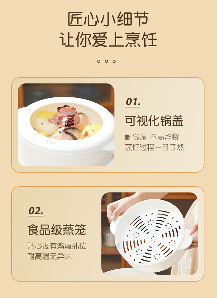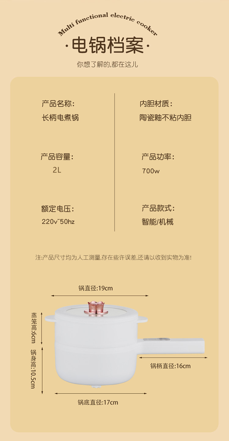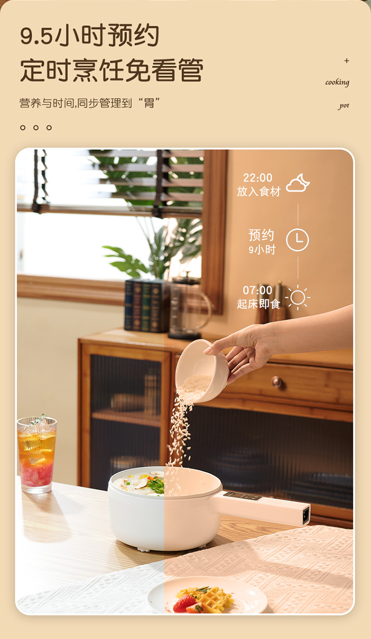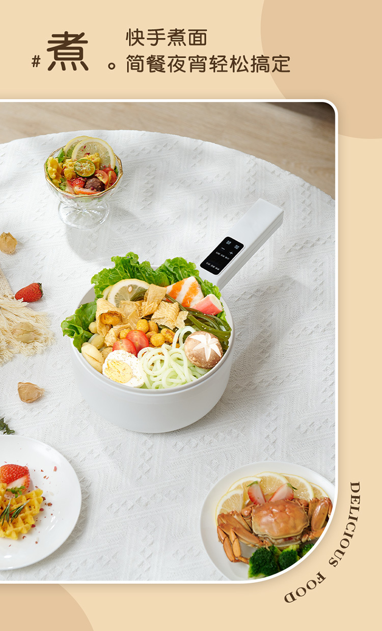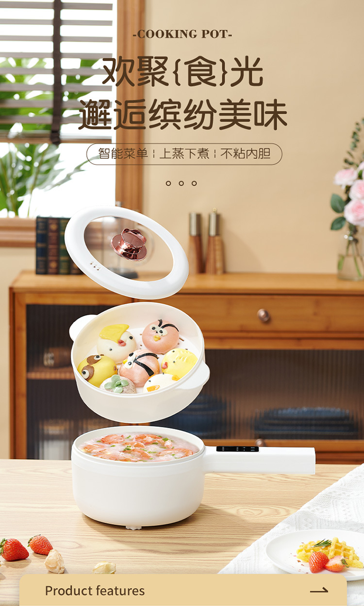 工厂直销白色长柄陶瓷釉电煮锅宿舍小电锅家用一体式煎炒不粘电锅