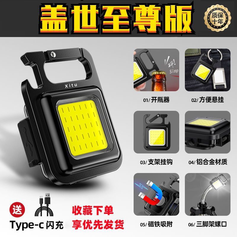 便携工作灯迷你多功能钥匙扣灯COB充电户外露营应急强光照明灯