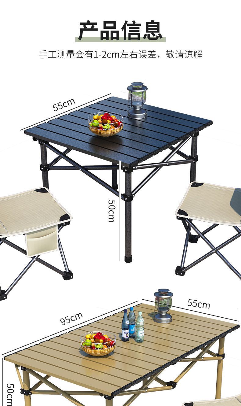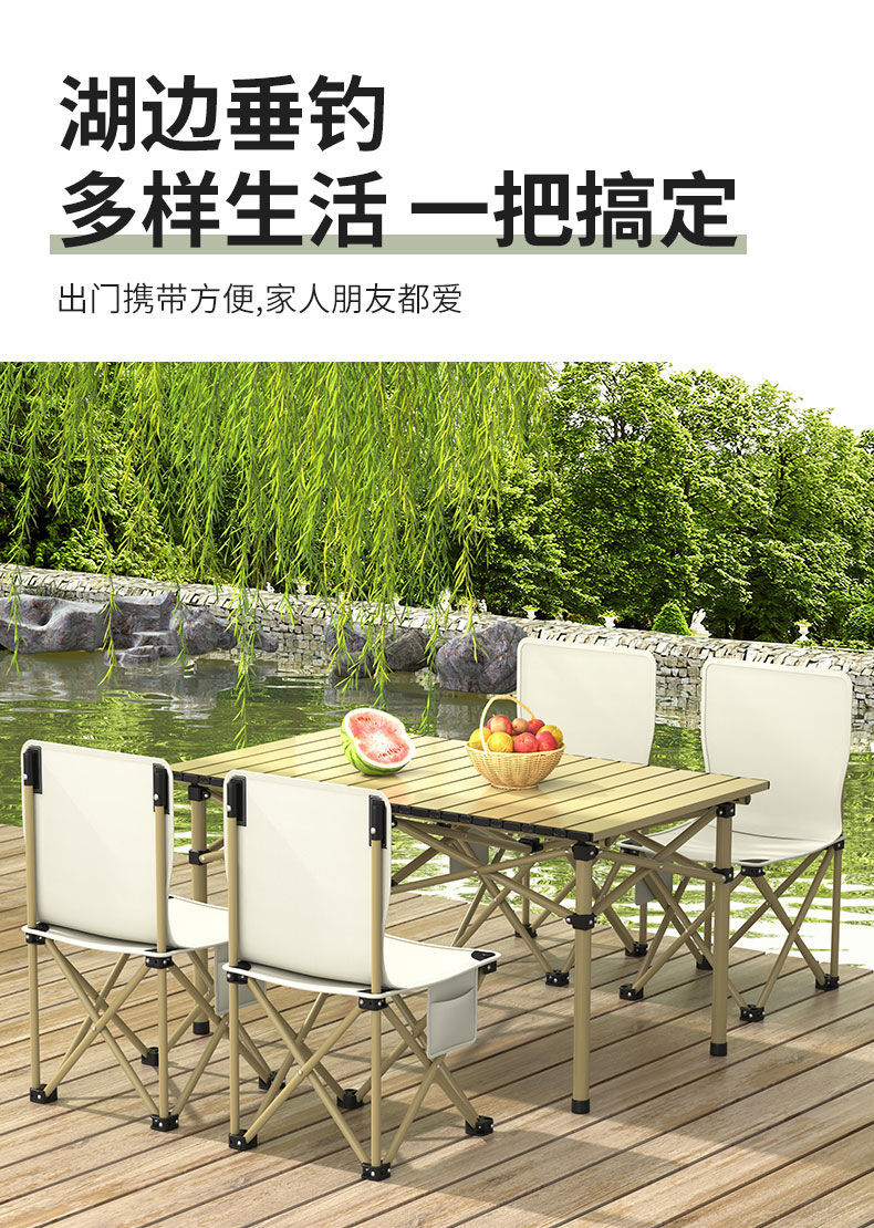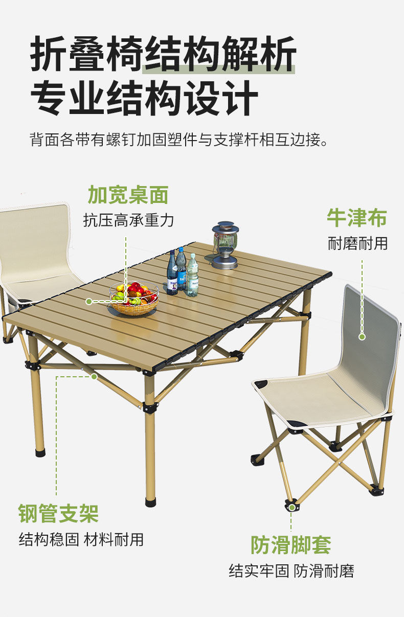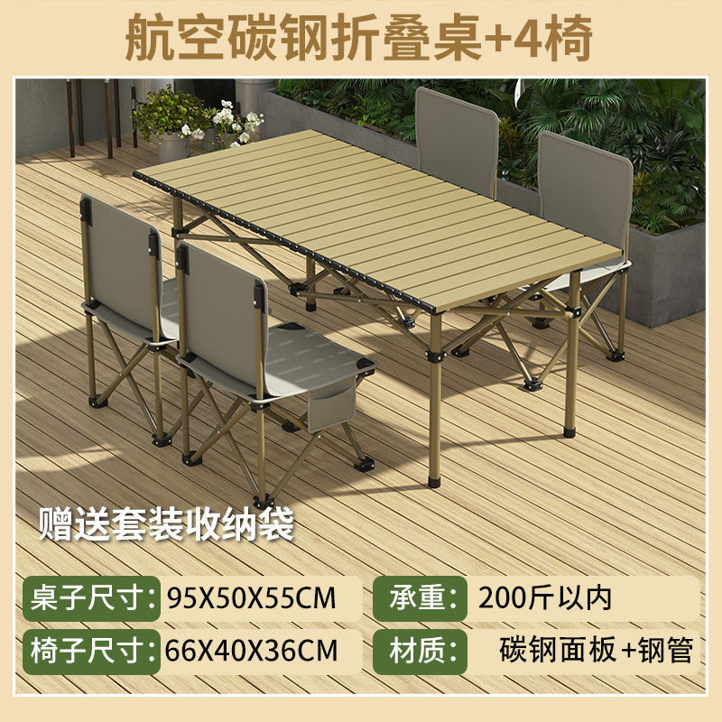 户外可折叠桌蛋卷桌便携式露营桌子野餐装备超轻烧烤碳钢桌椅套装