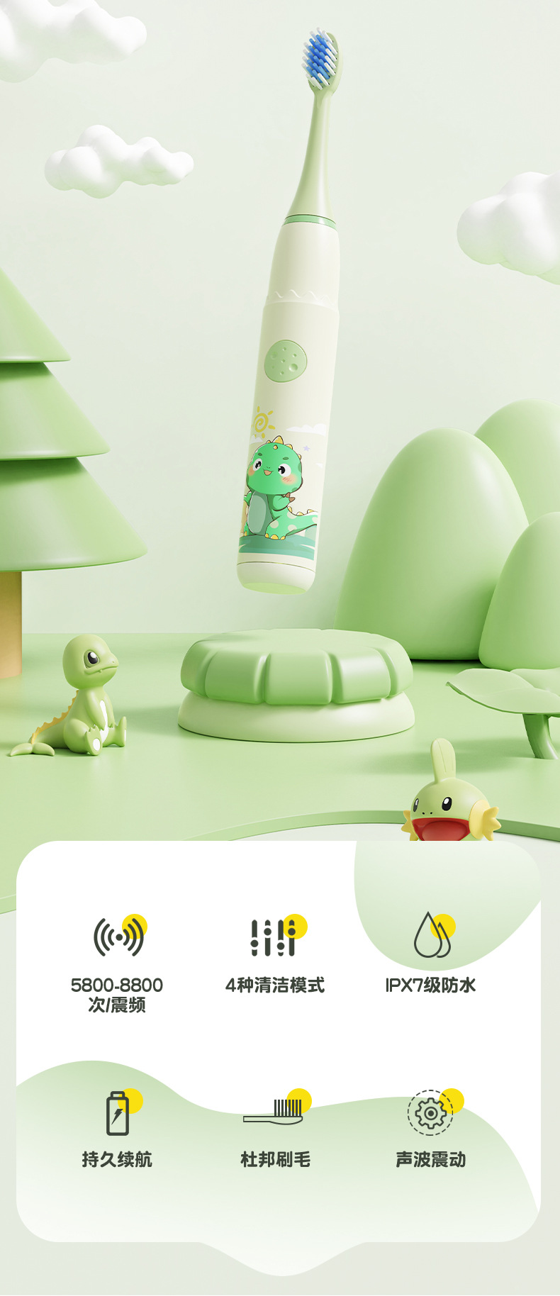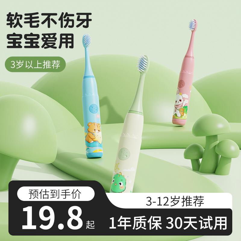 儿童电动牙刷3-6-12岁小孩宝宝非充电式软毛超细防水自动卡通美白
