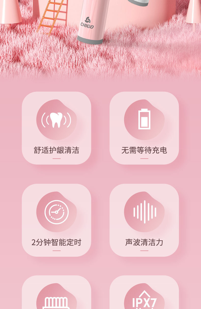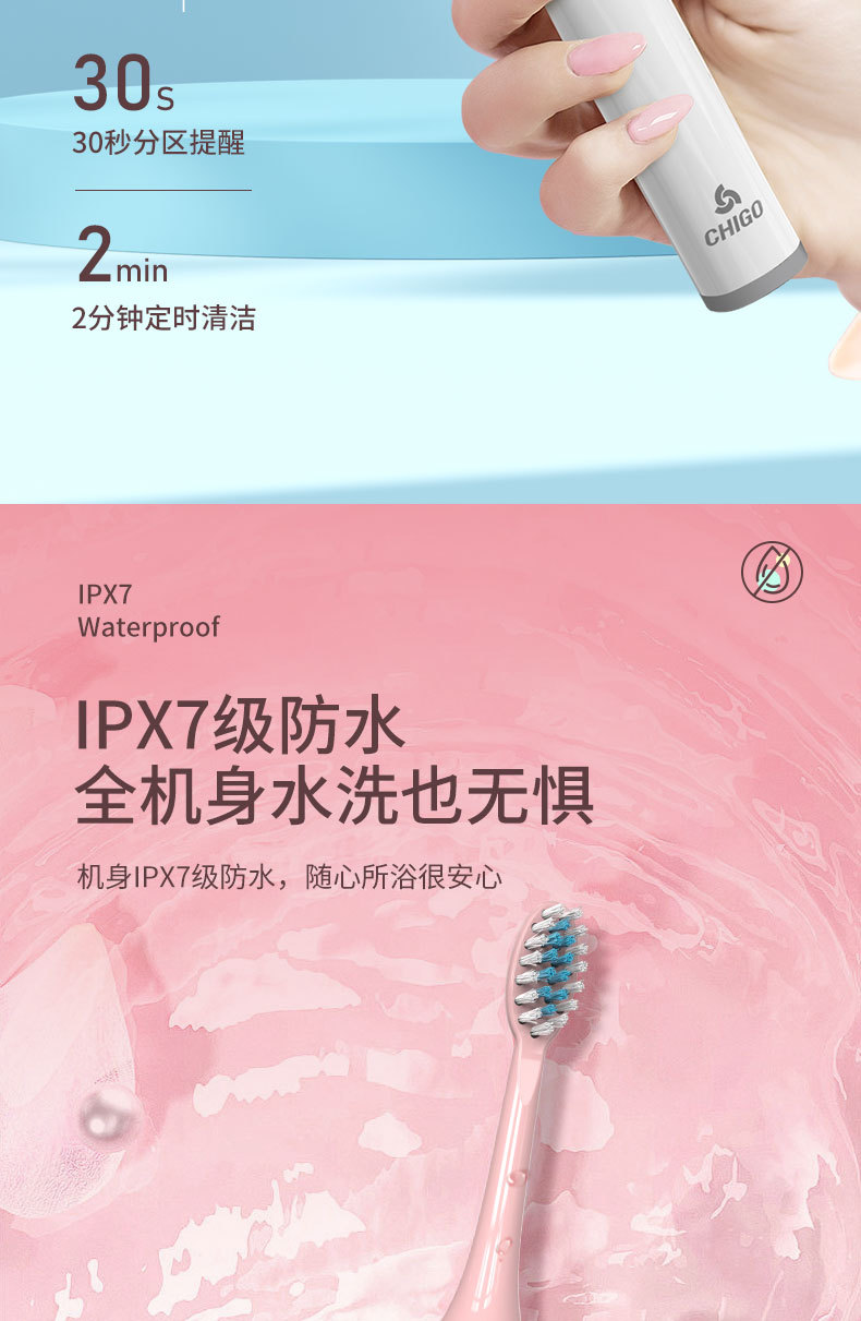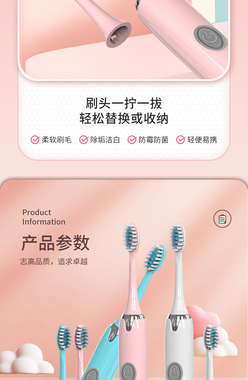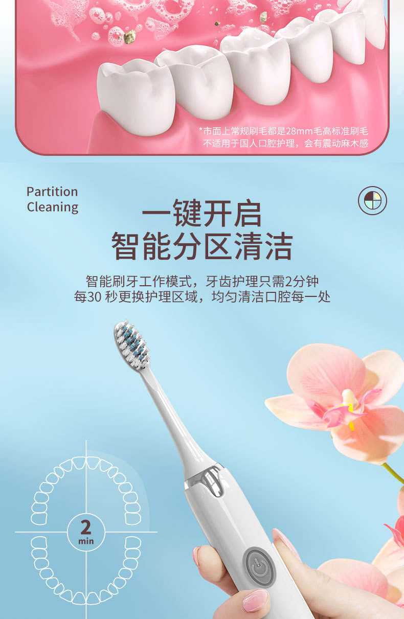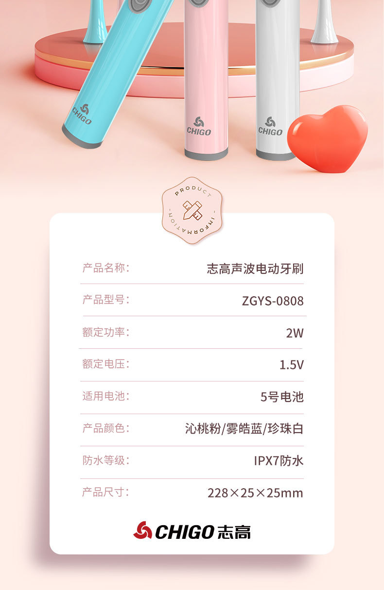 志高电动牙刷成人清洁声波震动软毛全自动电池款牙刷
