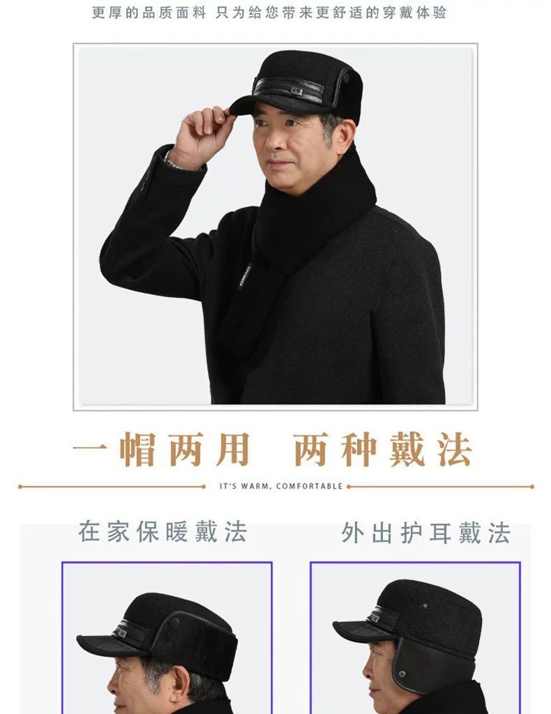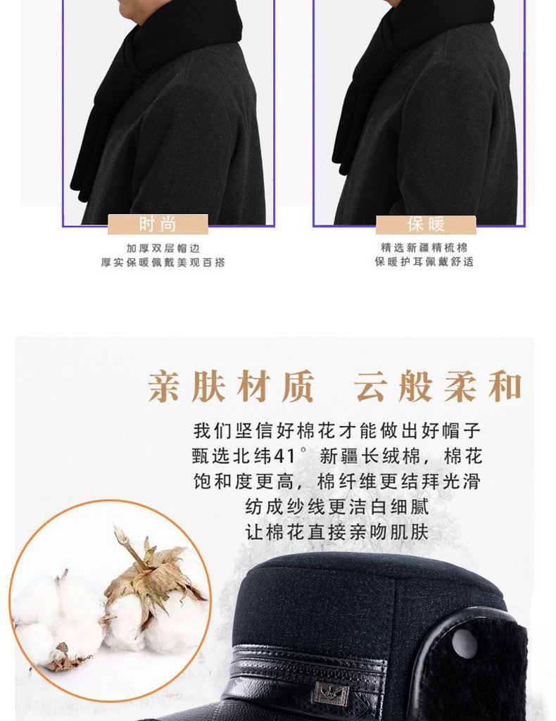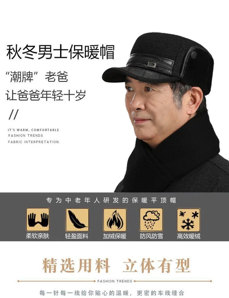 中老年人帽子男秋冬天加厚保暖护耳平顶帽爸爸爷爷大头围防寒棉帽