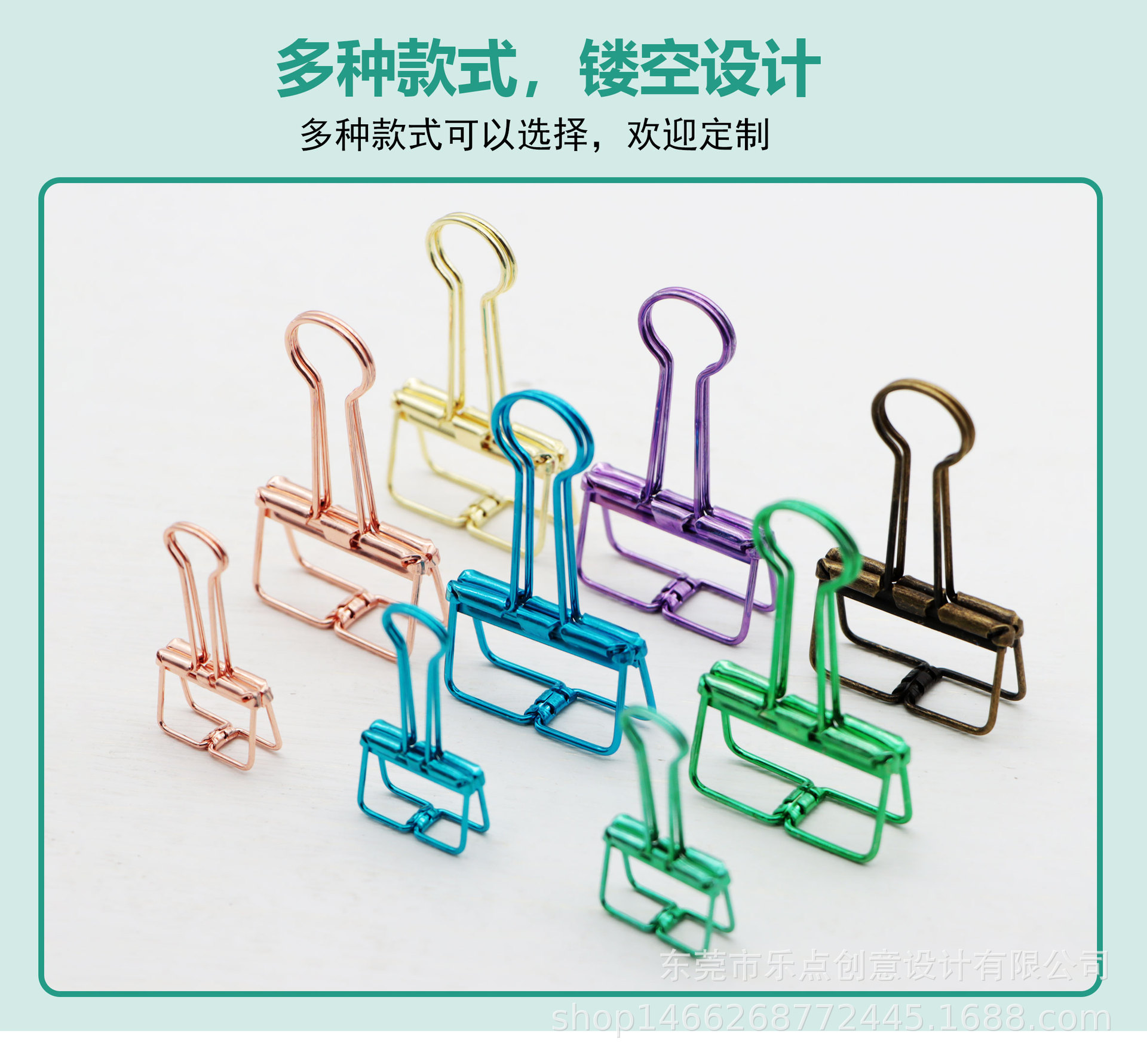 玫瑰金色金属镂空夹广告长尾夹票夹凤尾夹票据夹子装订夹文件夹