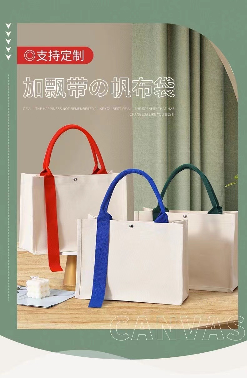 覆膜飘带帆布袋定 制LOGO企业辅导班宣传学生环保袋幼儿园广告袋