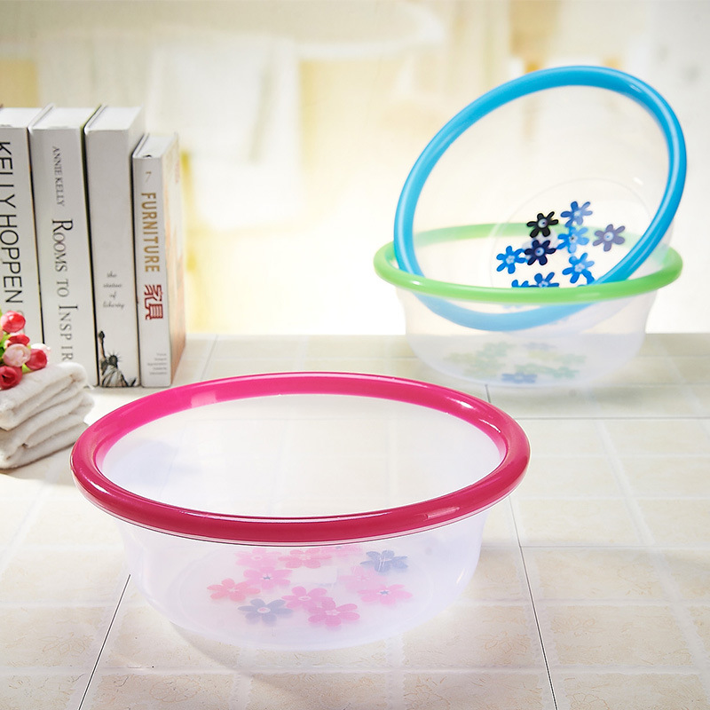 1024 双色透明盆 洗脸盆 学生脸盆家用塑料洗脸盆 透明套圈盆