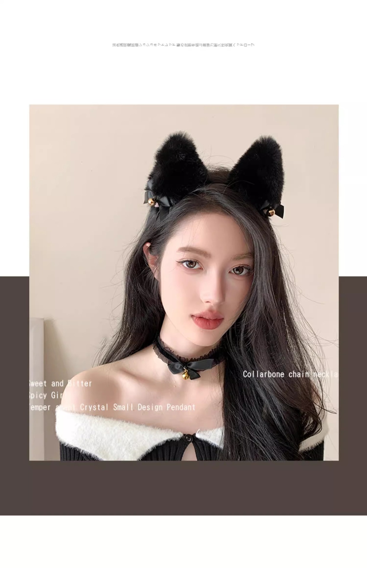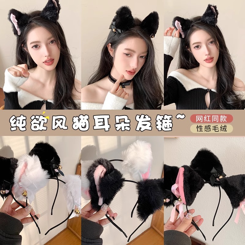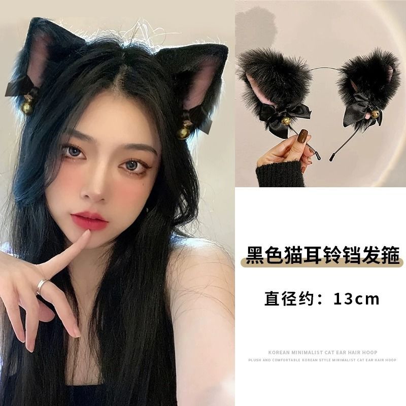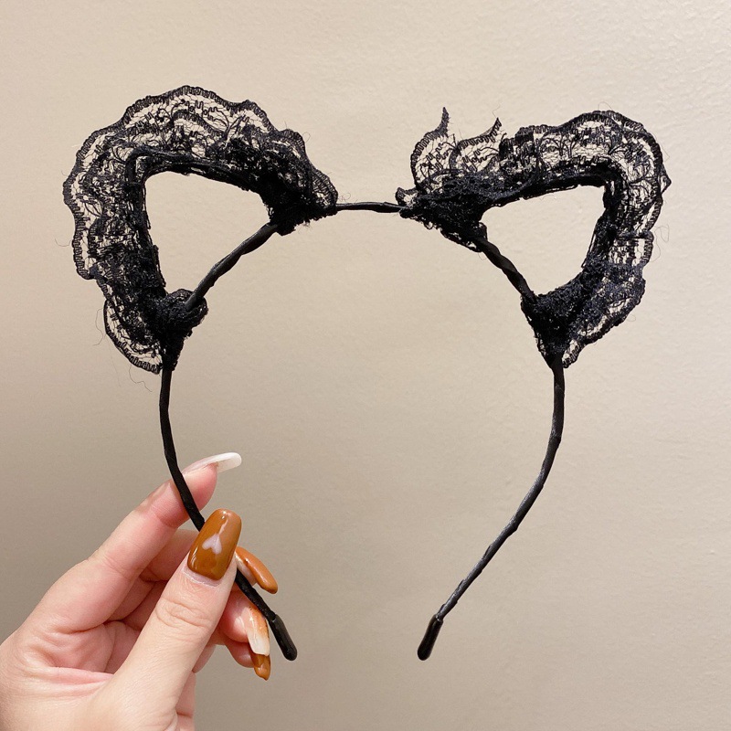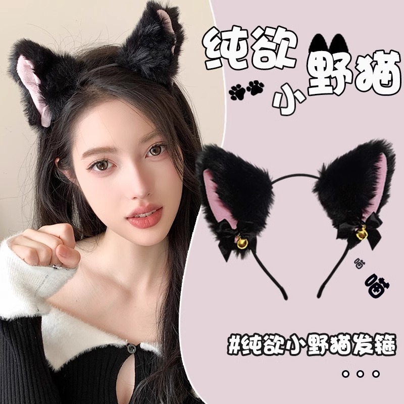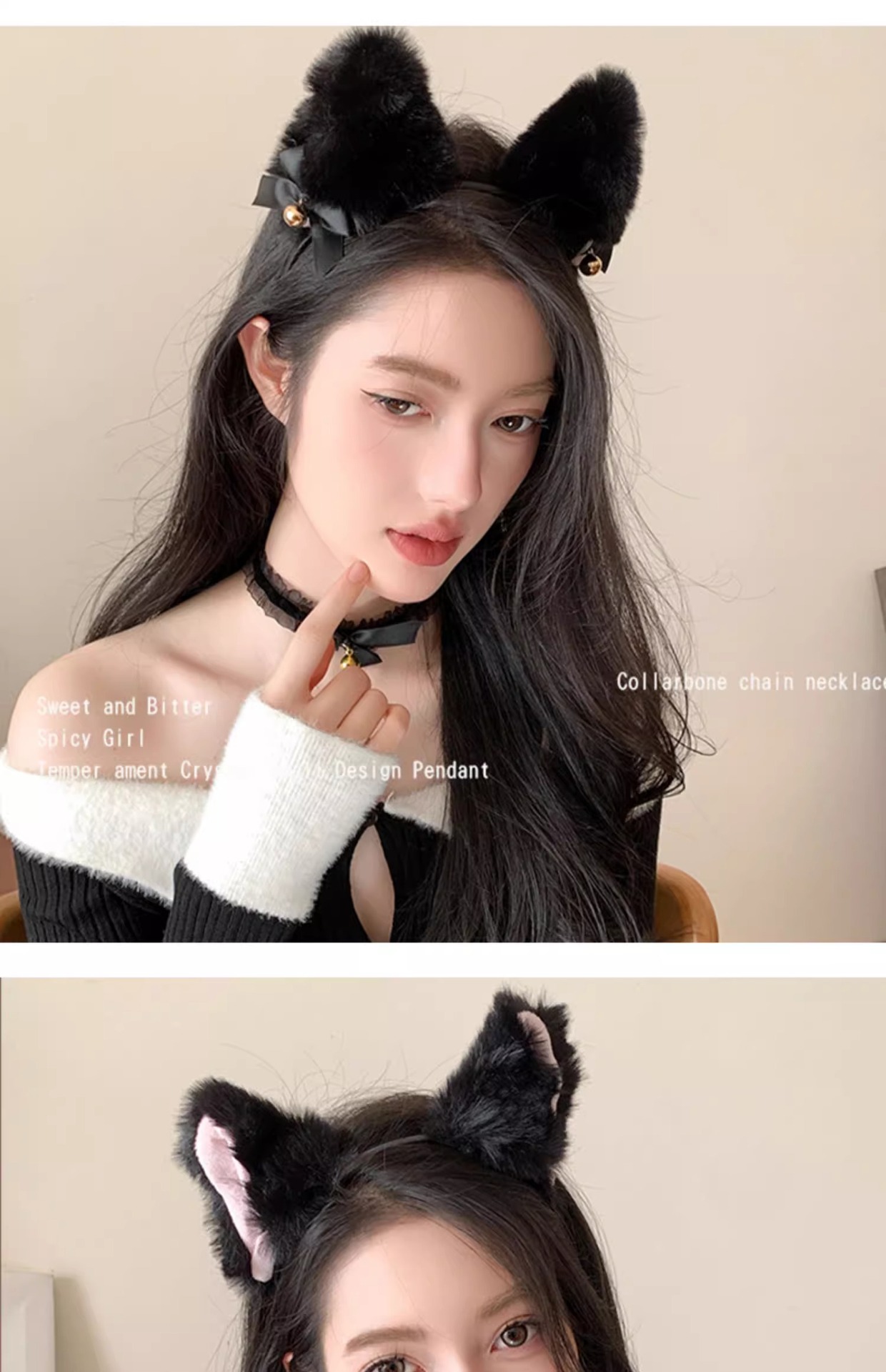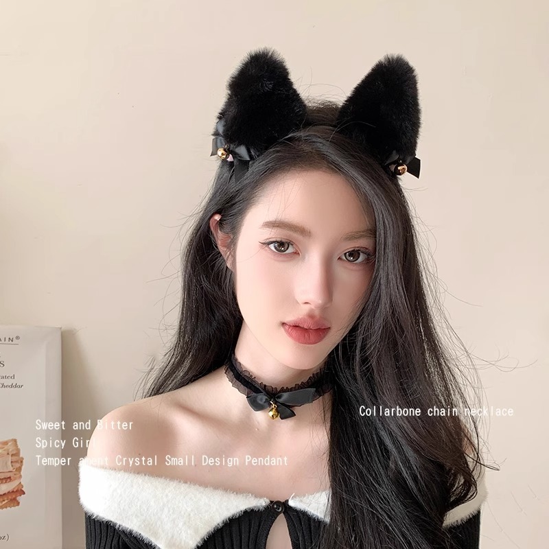 网红性感蕾丝铃铛猫耳朵发箍女高级感防滑压发高颅顶发卡头饰批发