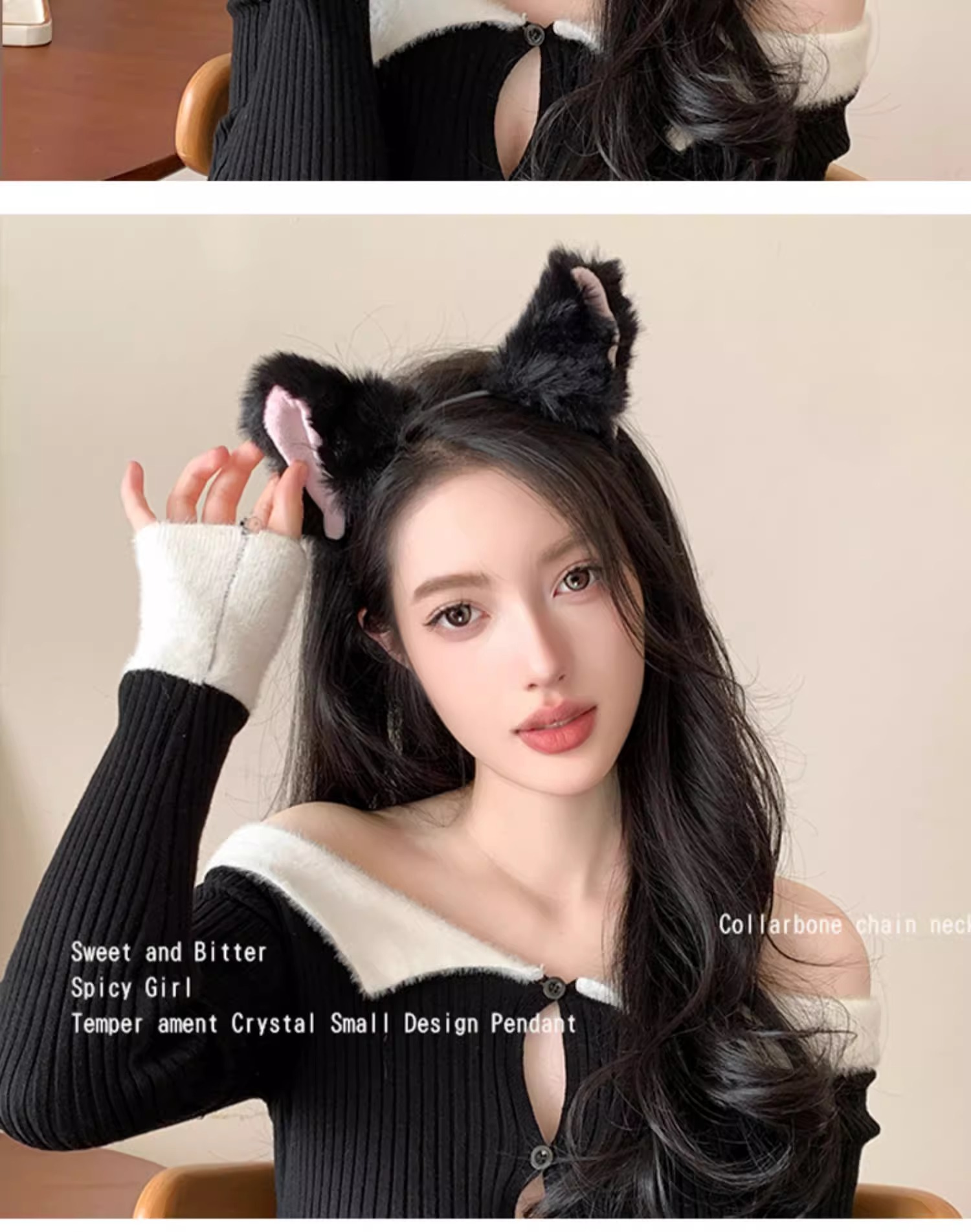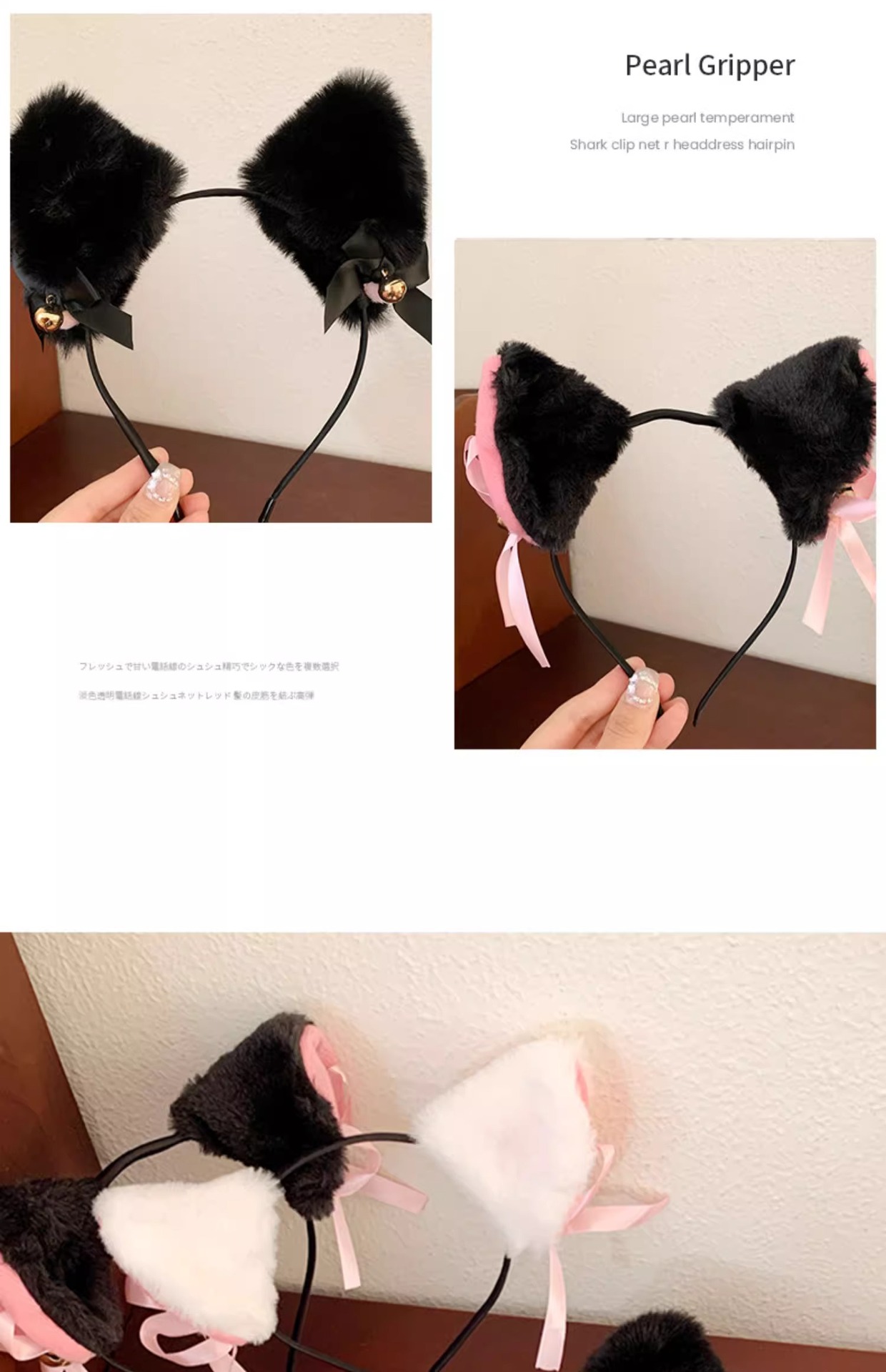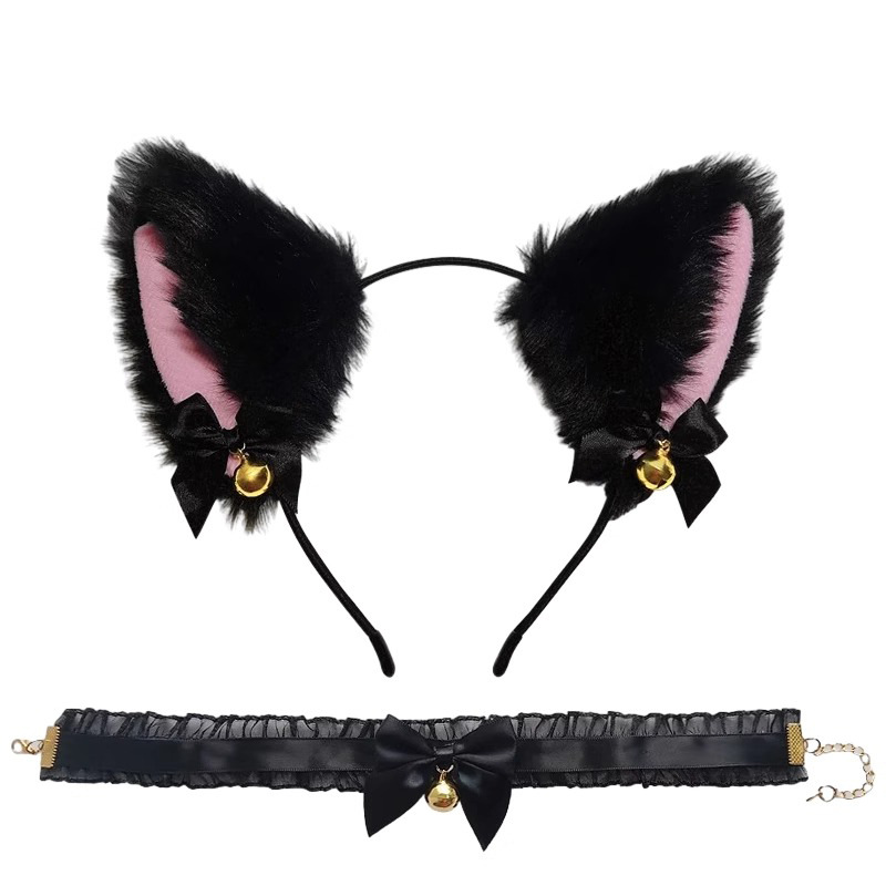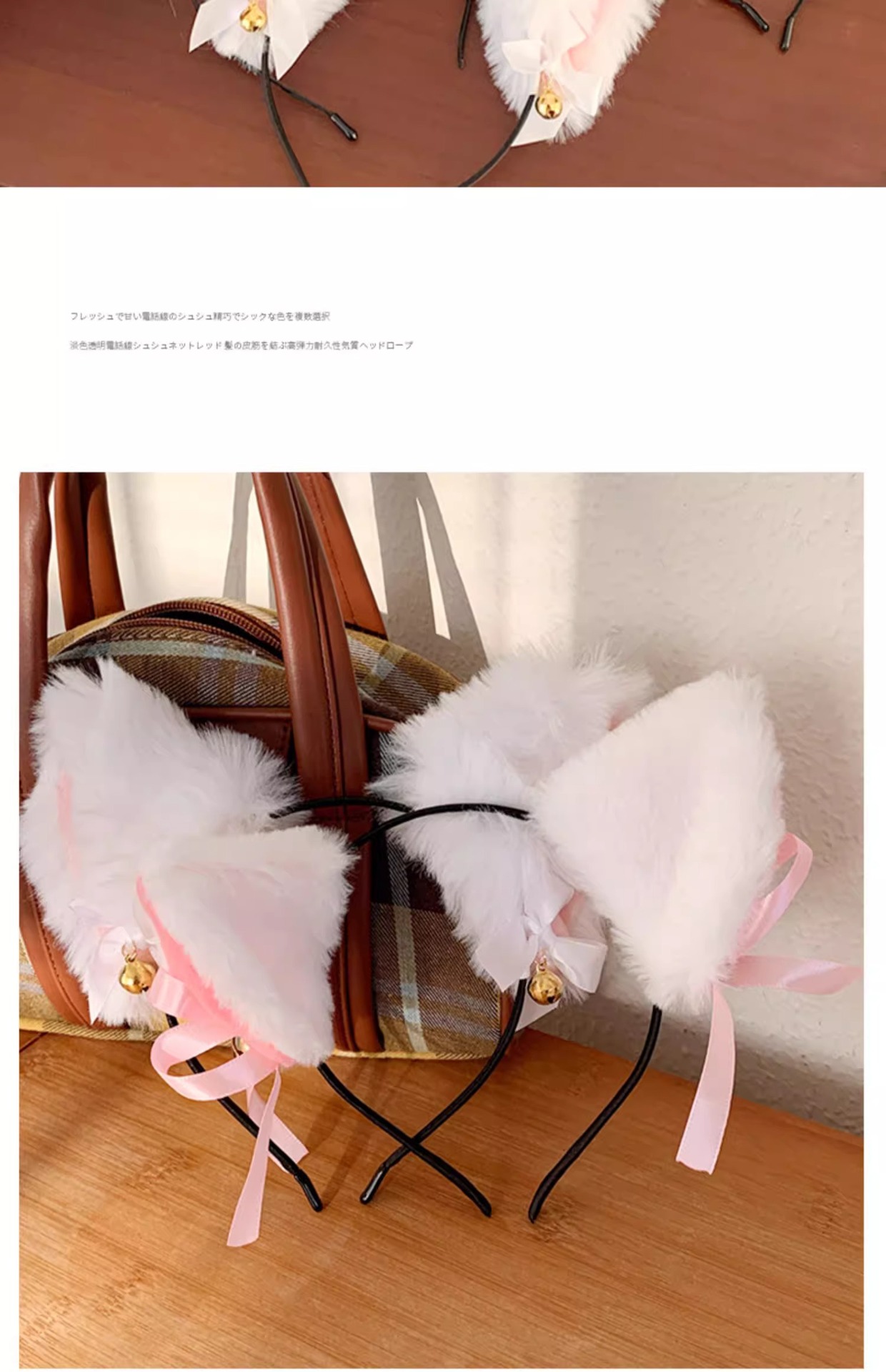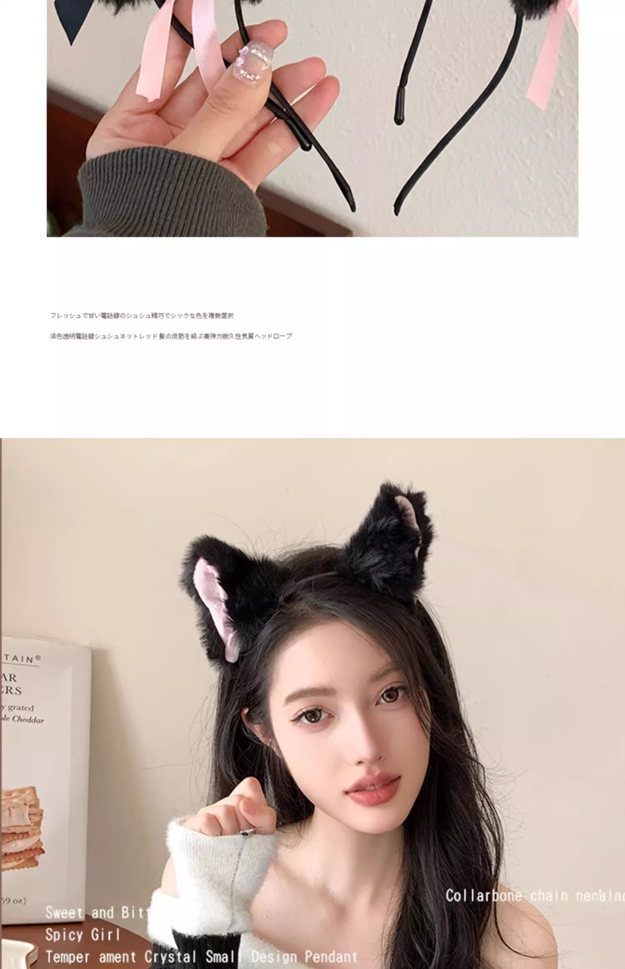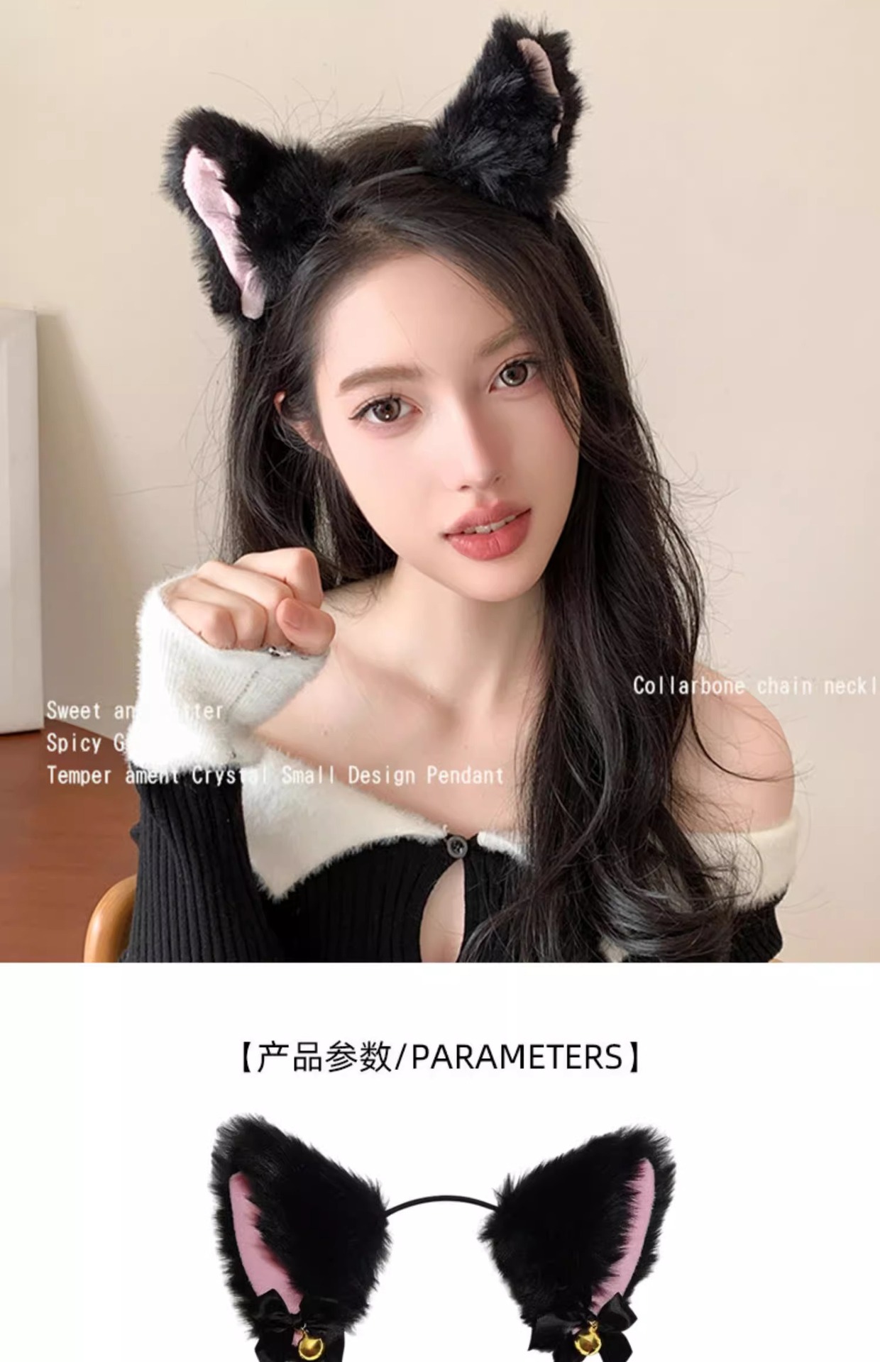 网红性感蕾丝铃铛猫耳朵发箍女高级感防滑压发高颅顶发卡头饰批发