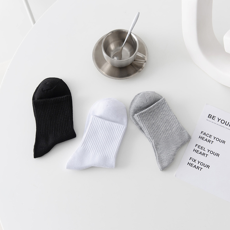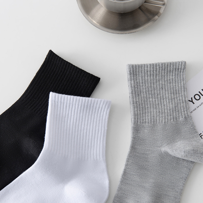 TEMU SHEIN amazon黑白色袜子中筒袜学院风棉潮四季福利款运动袜