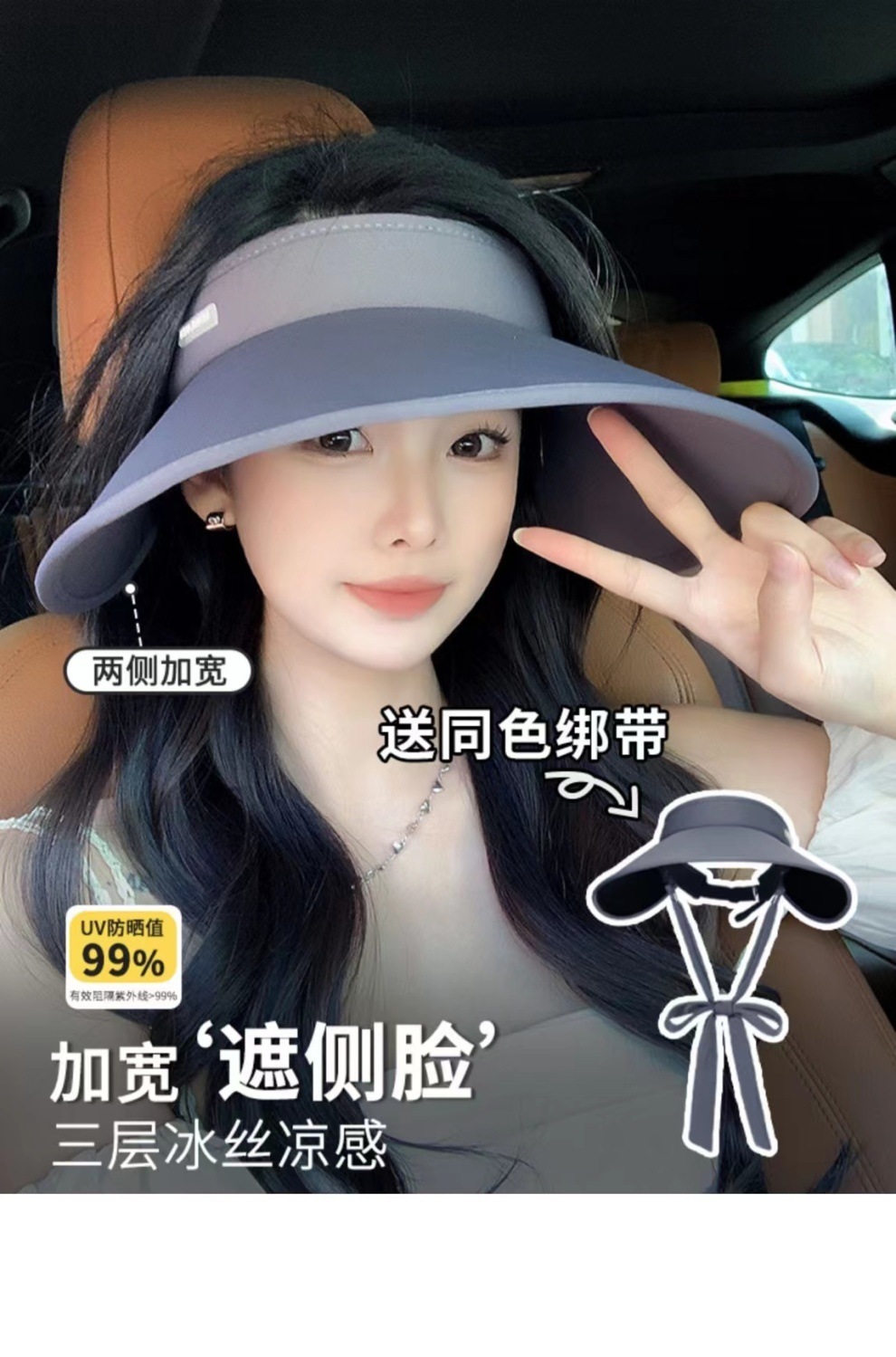 双面冰丝防晒帽女新款夏季防紫外线大檐遮阳帽加大帽檐空顶太阳帽