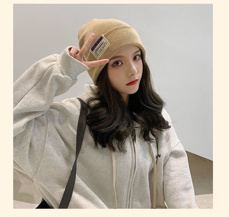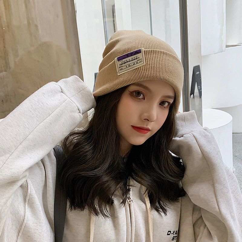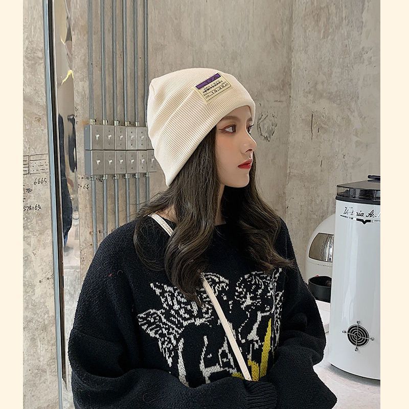 毛线帽女秋冬新款保暖冷帽女护耳套头针织帽日系堆堆帽百搭月子帽
