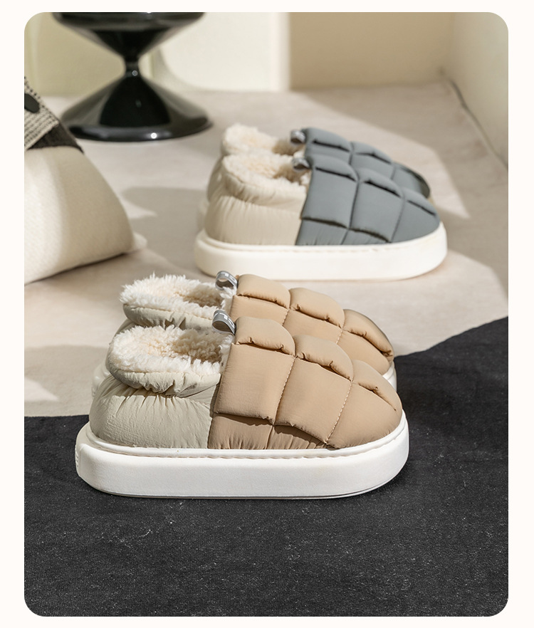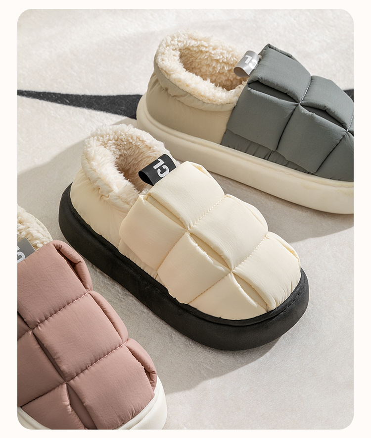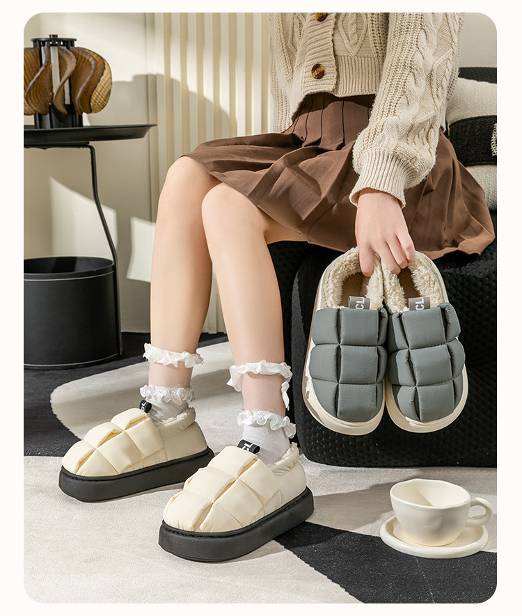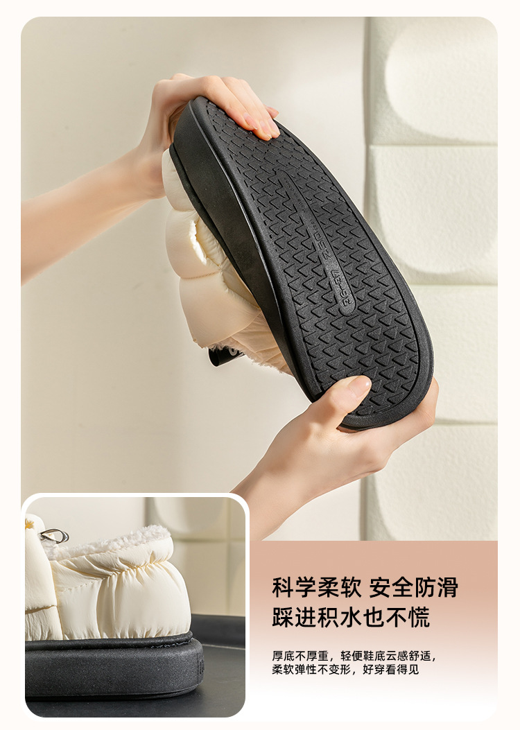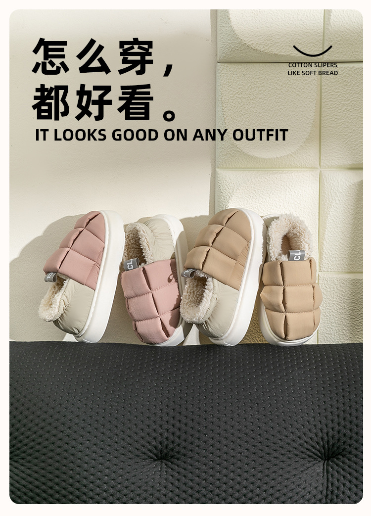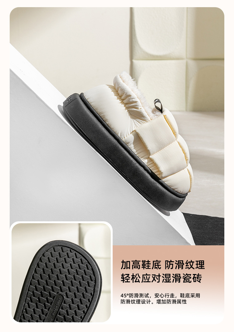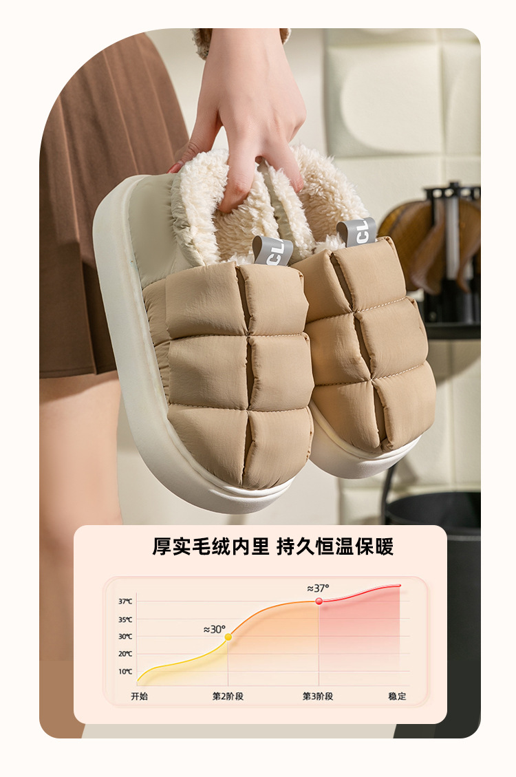 羽绒棉拖鞋女冬季保暖厚底加绒防水室内居家用简约棉鞋秋冬月子鞋